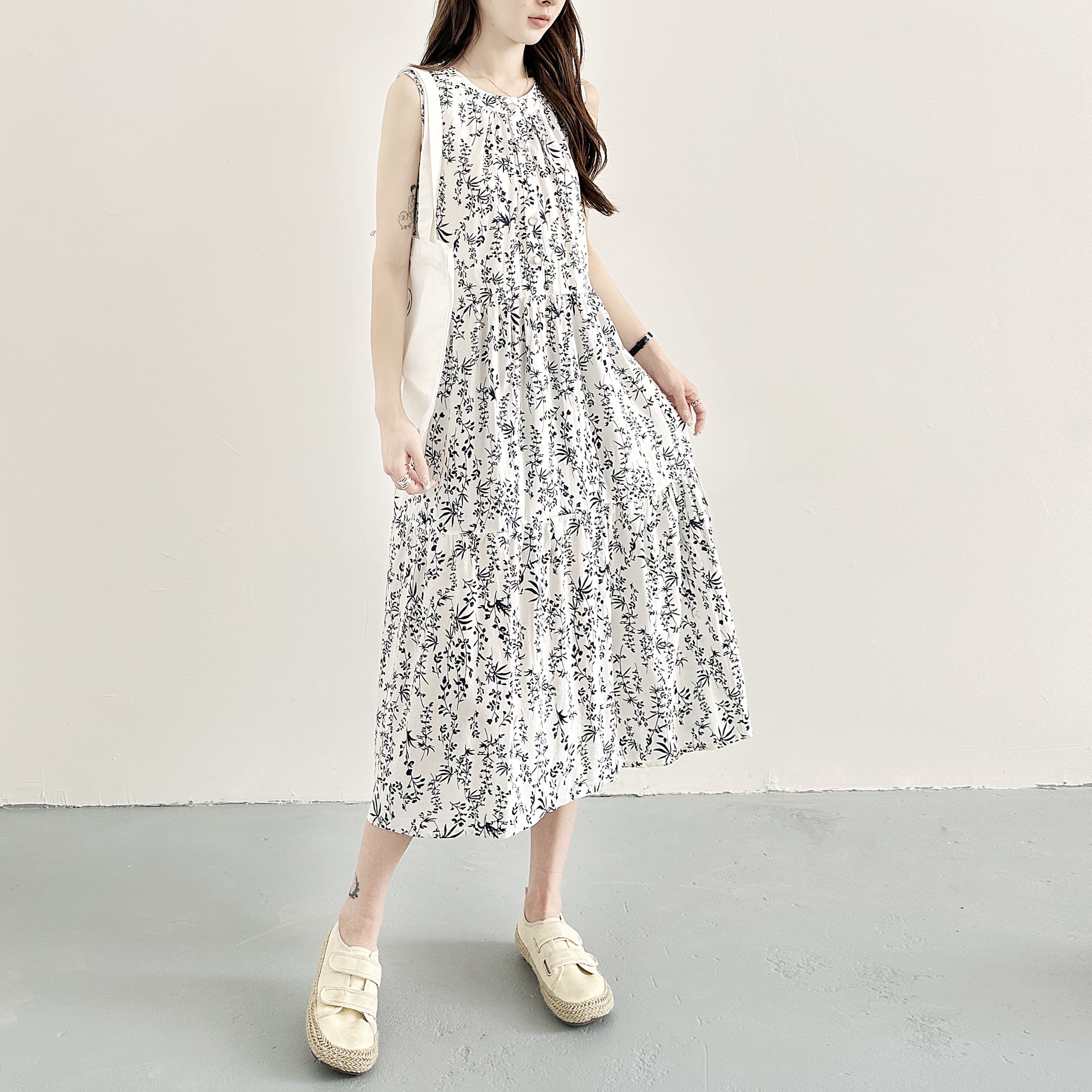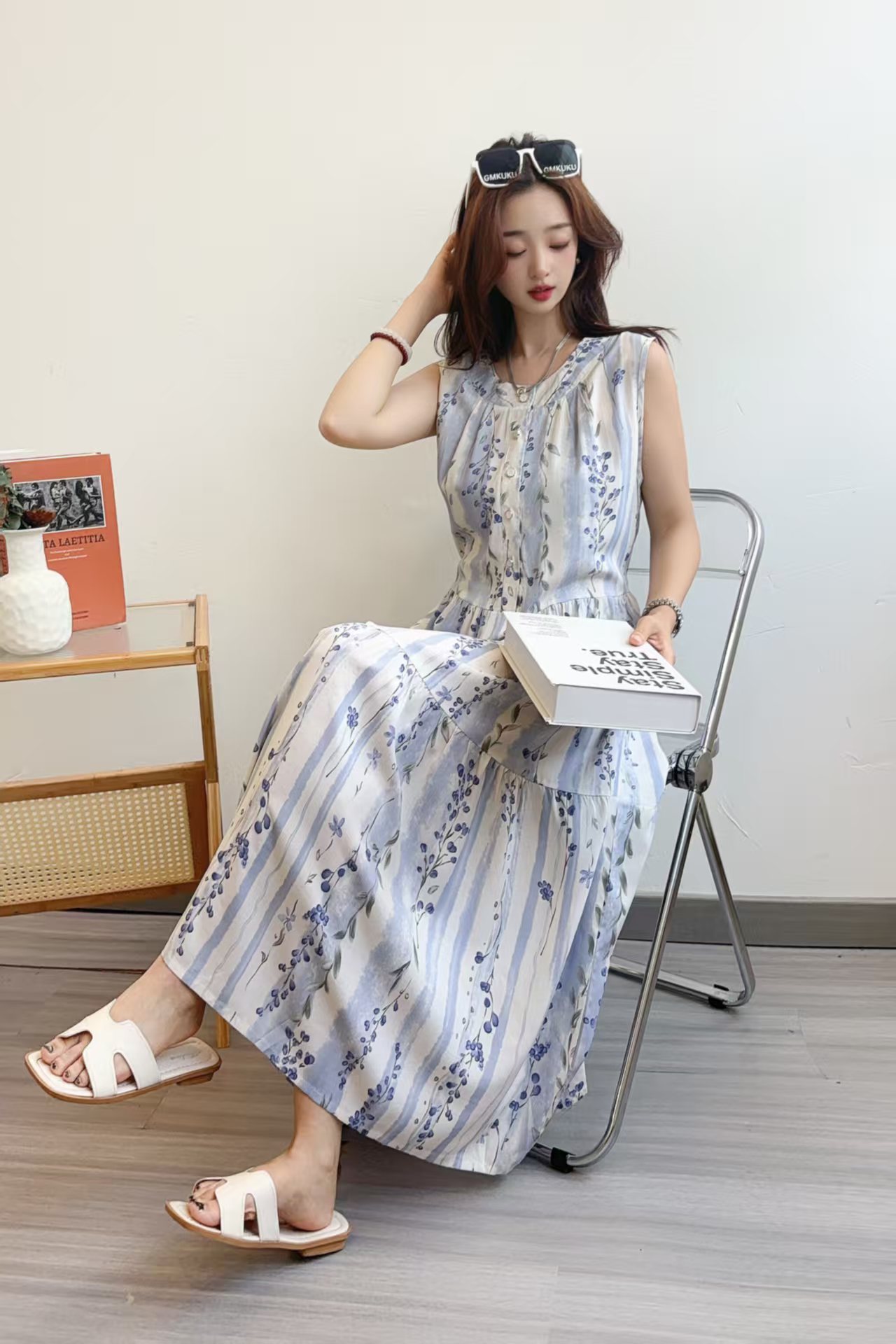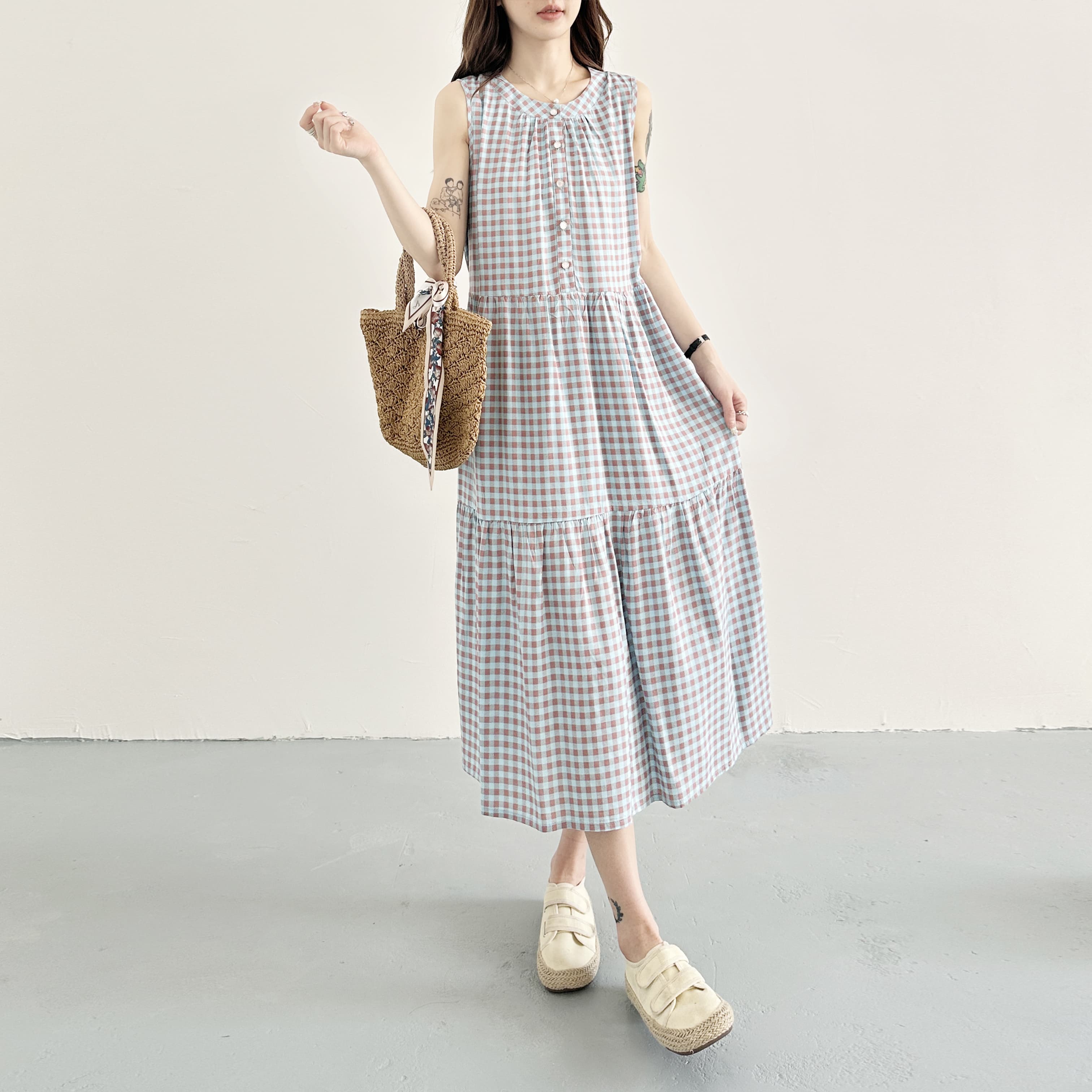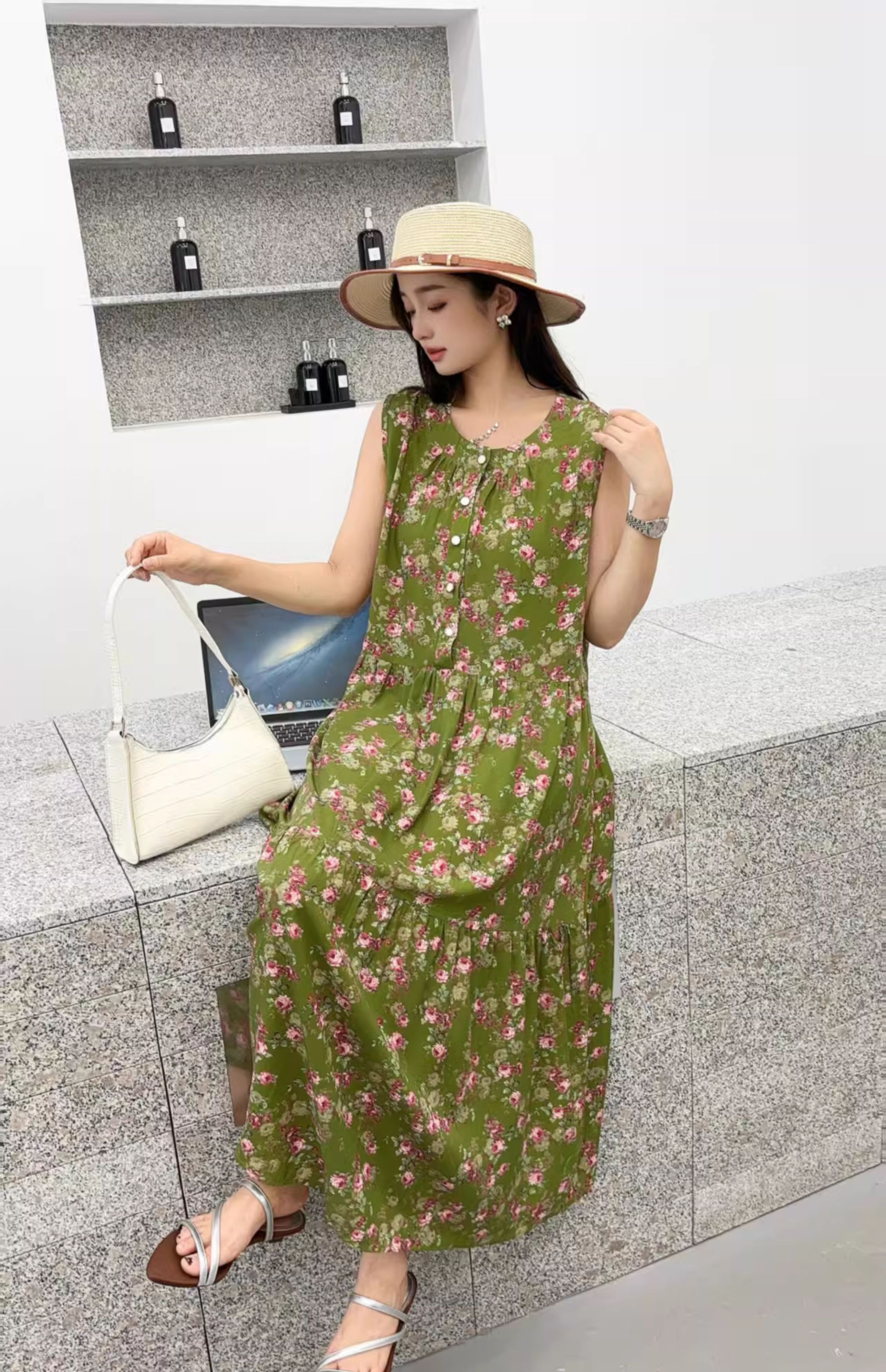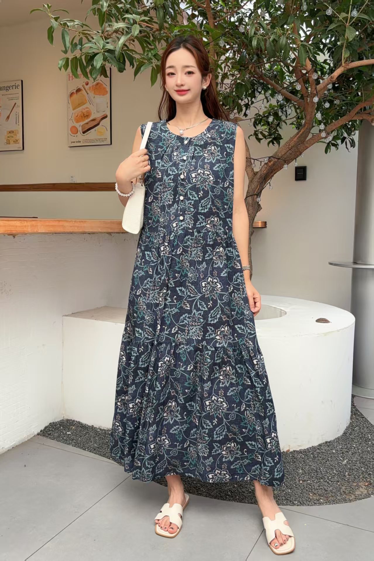 2025年夏季新款棉綢無袖連衣裙女人造棉寬松顯瘦百搭休閒背心長裙