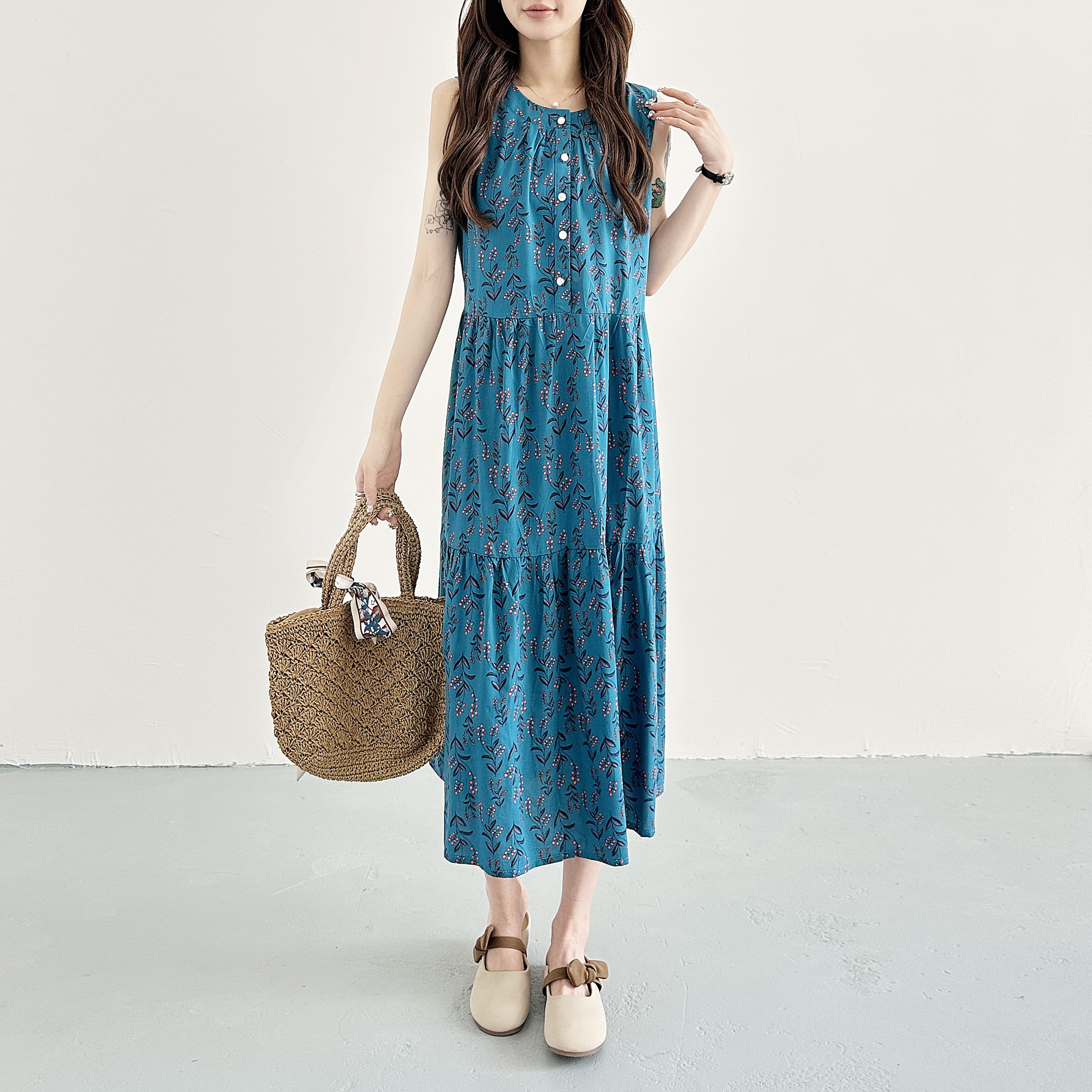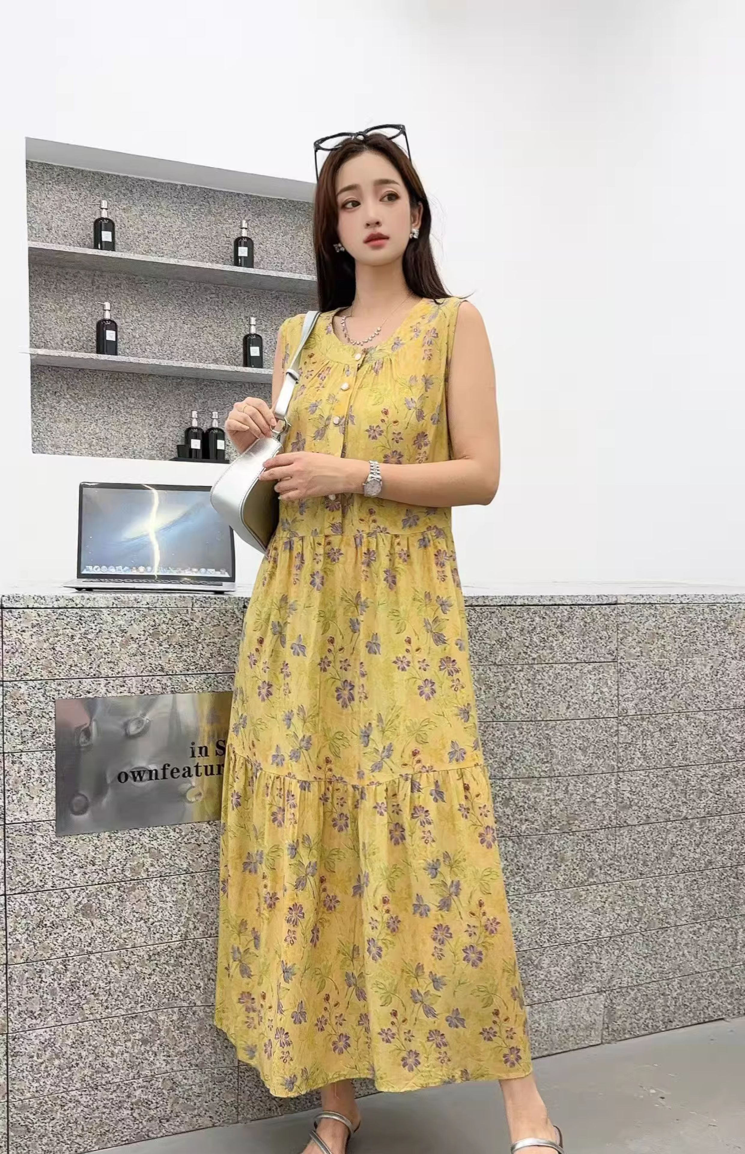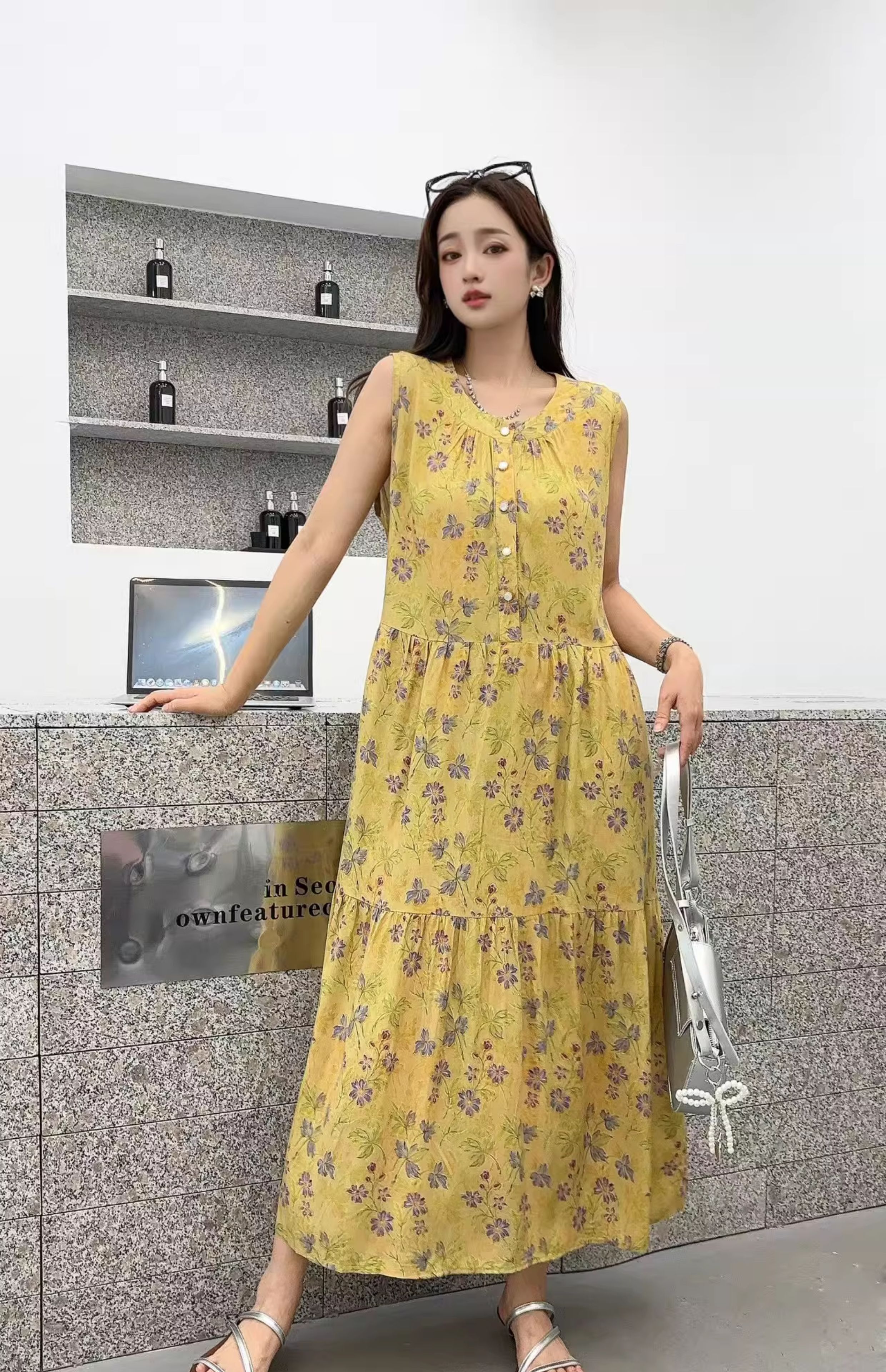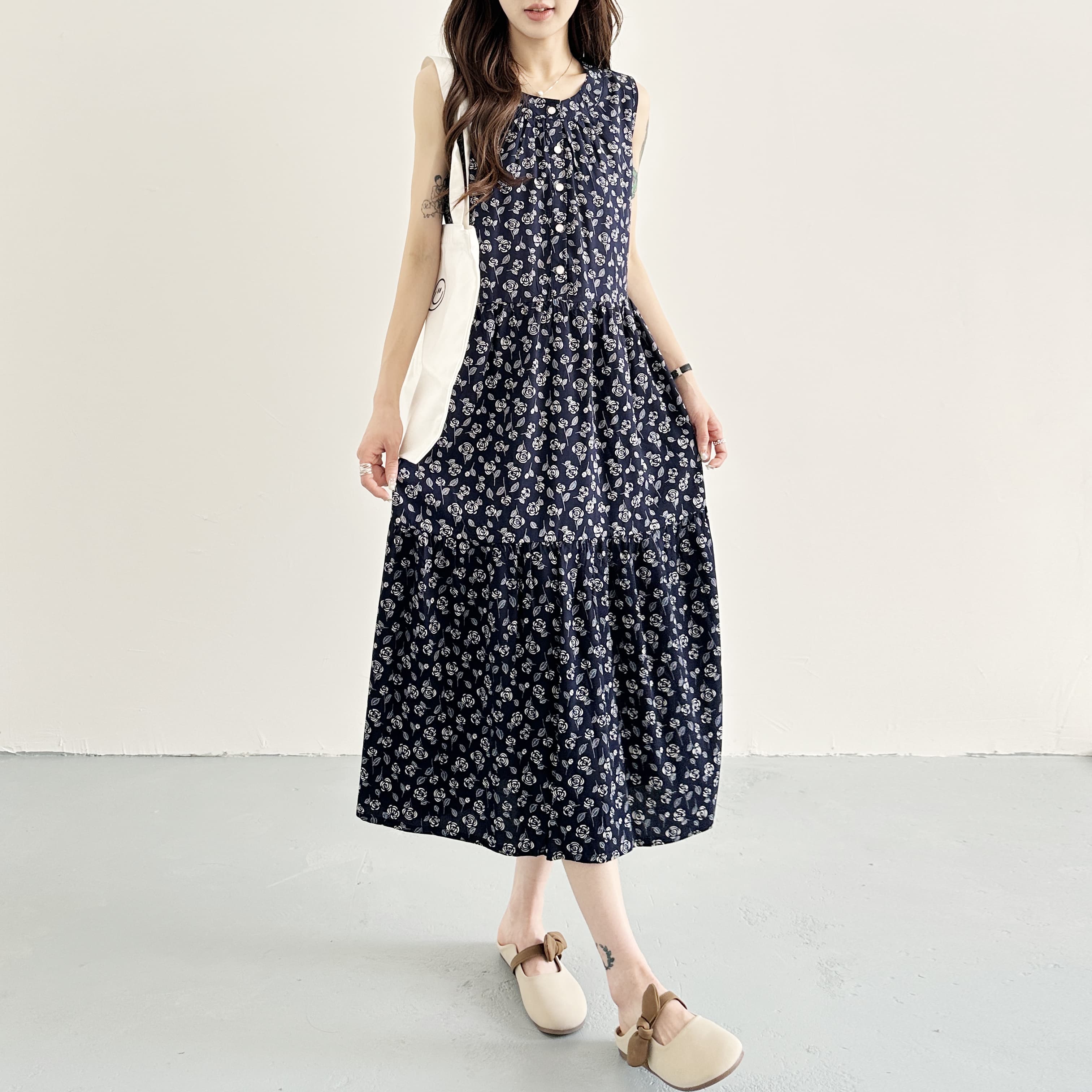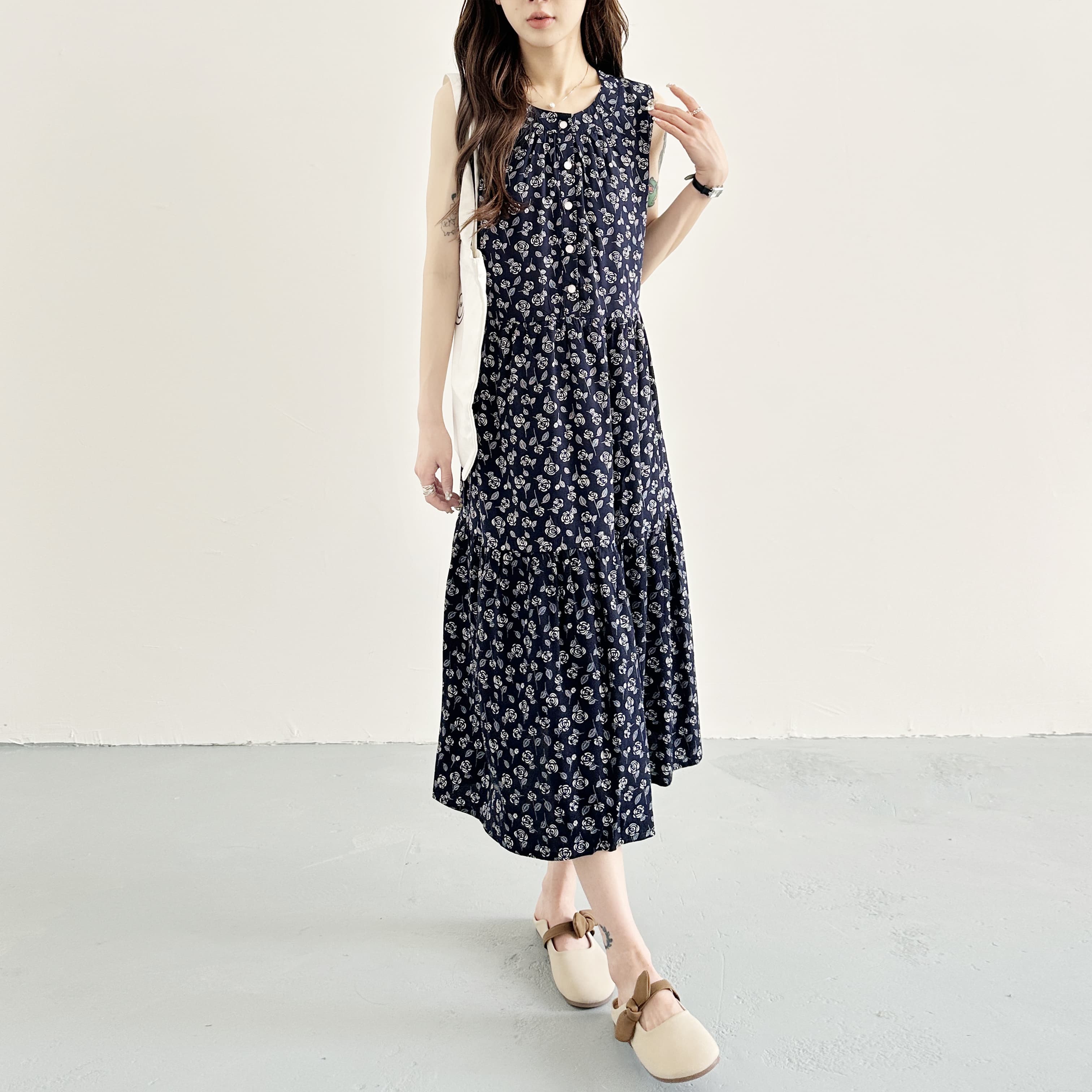 2025年夏季新款棉綢無袖連衣裙女人造棉寬松顯瘦百搭休閒背心長裙