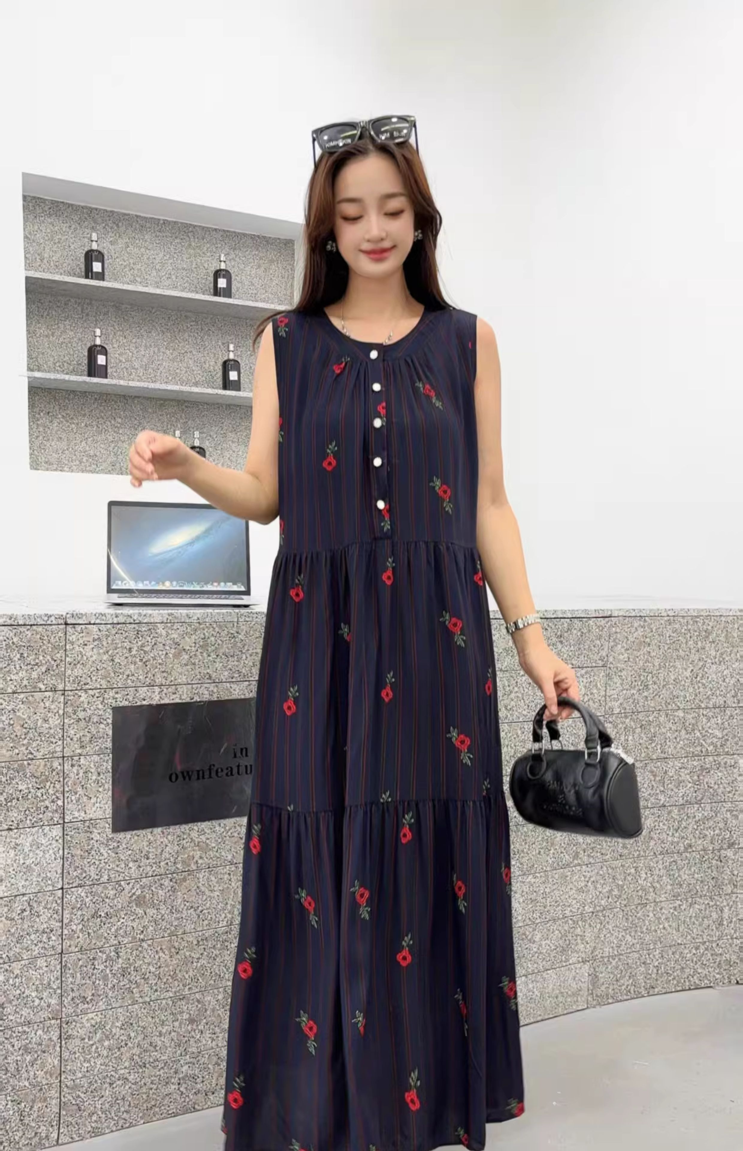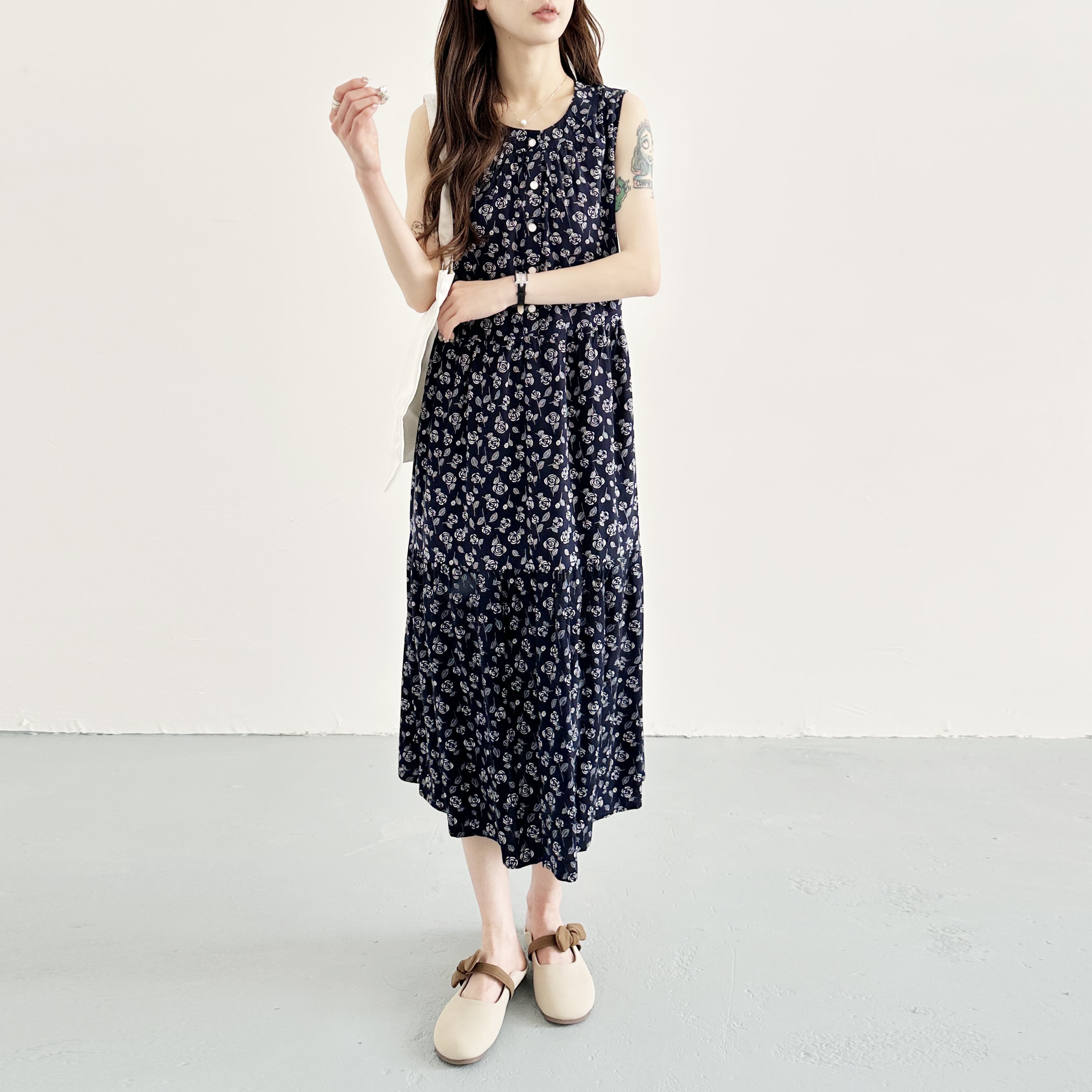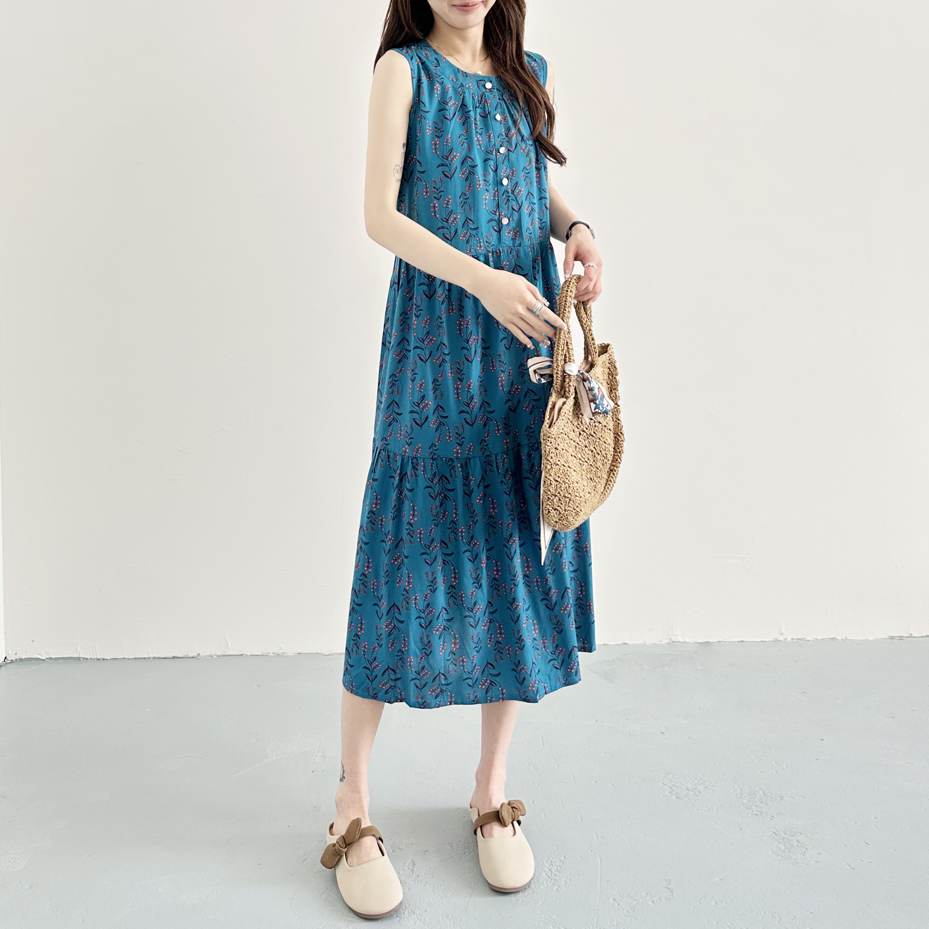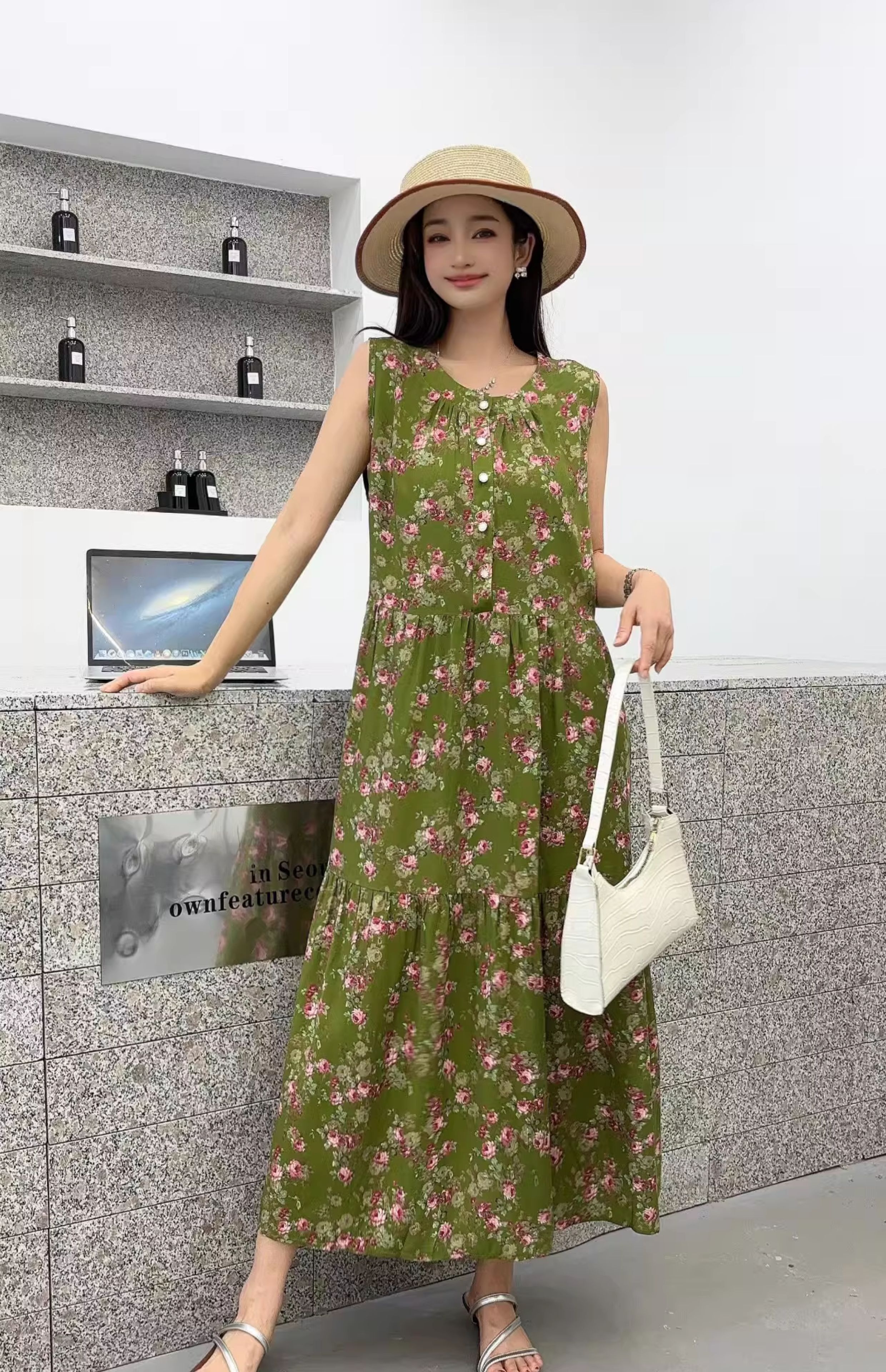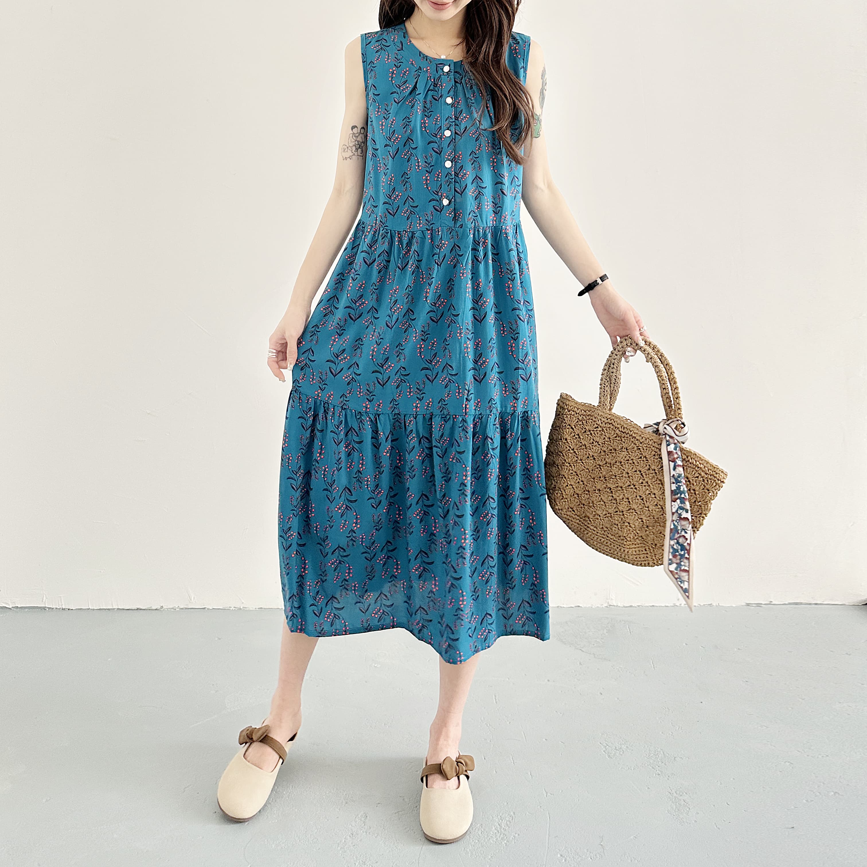 2025年夏季新款棉綢無袖連衣裙女人造棉寬松顯瘦百搭休閒背心長裙