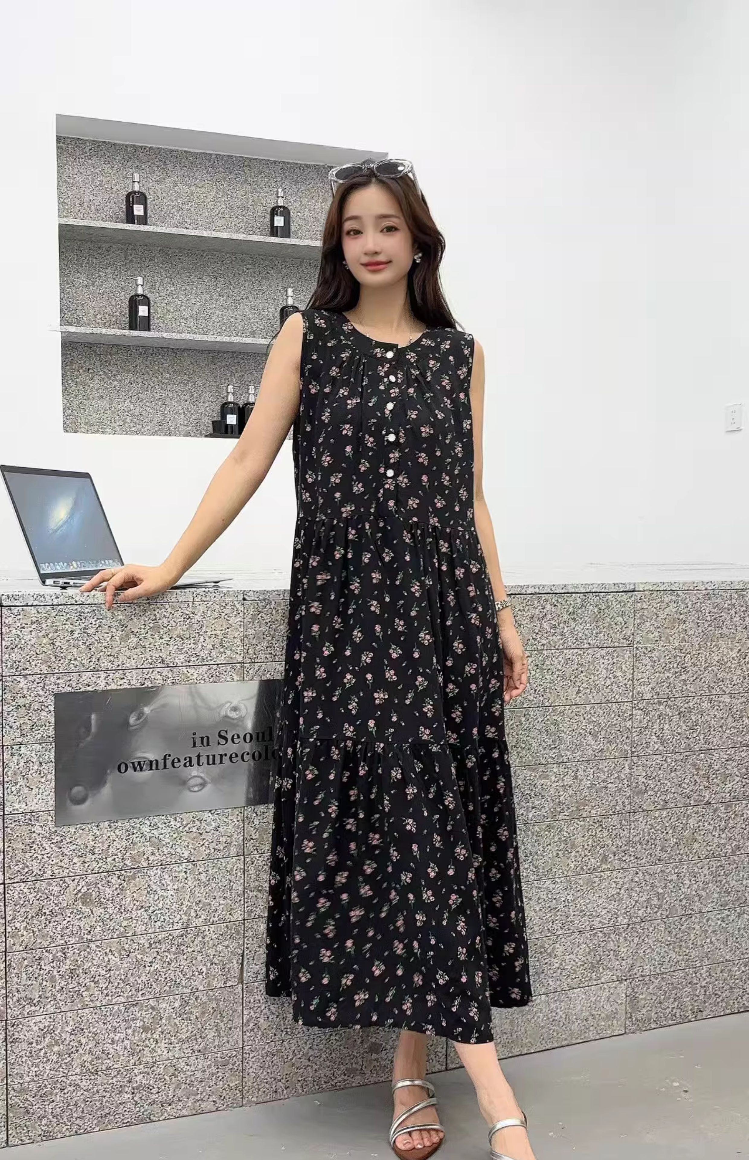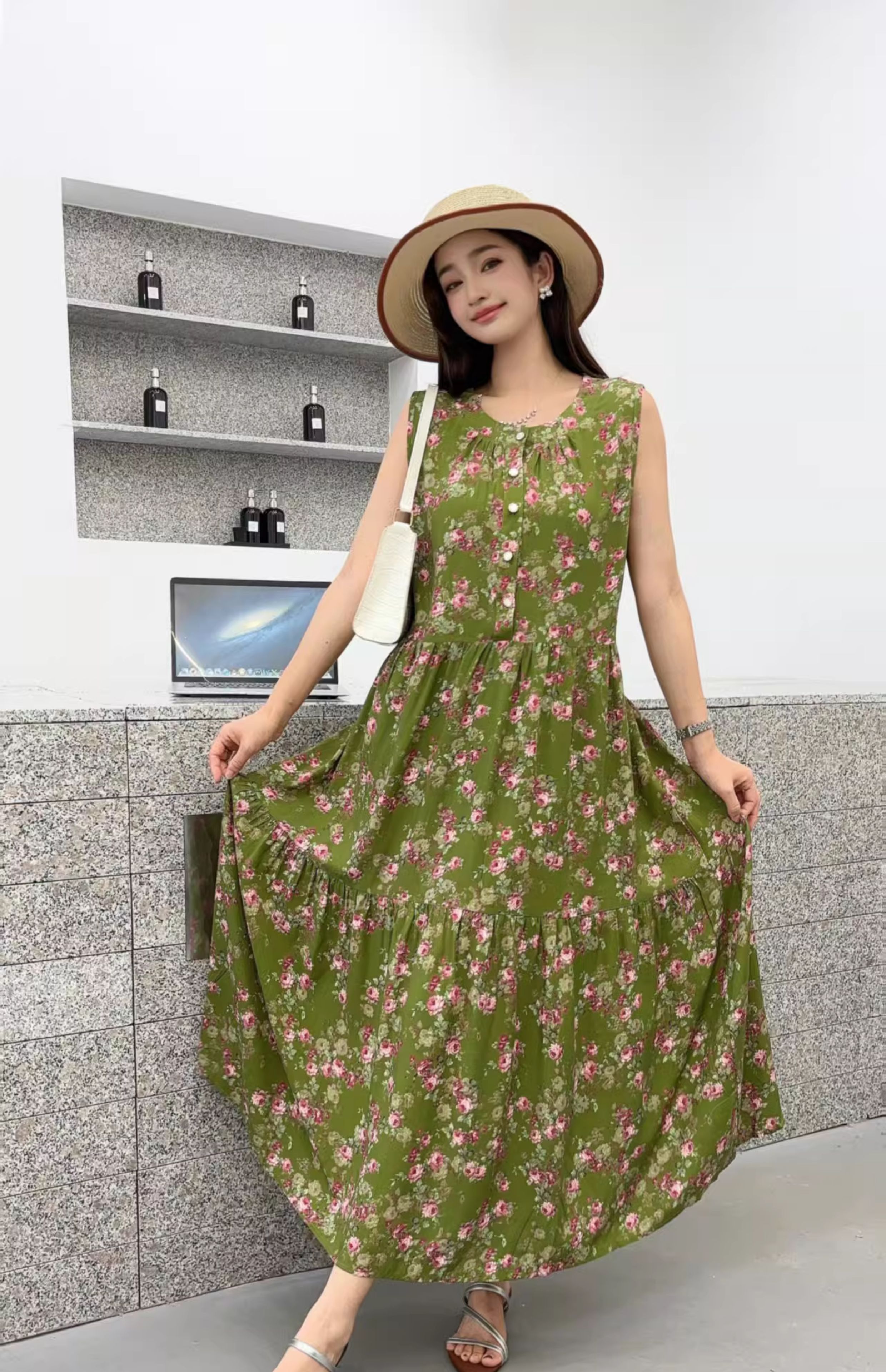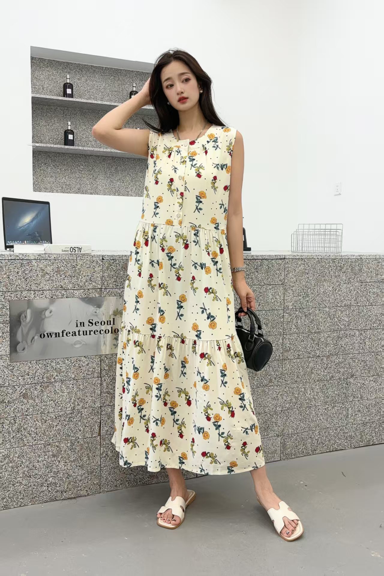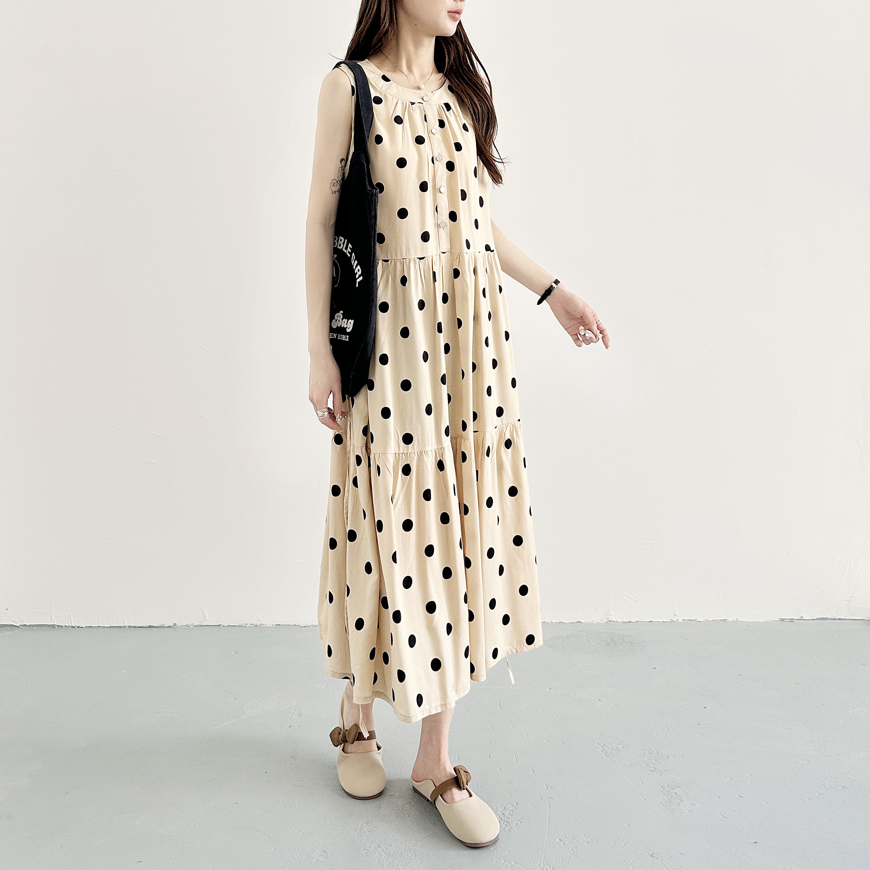 2025年夏季新款棉綢無袖連衣裙女人造棉寬松顯瘦百搭休閒背心長裙