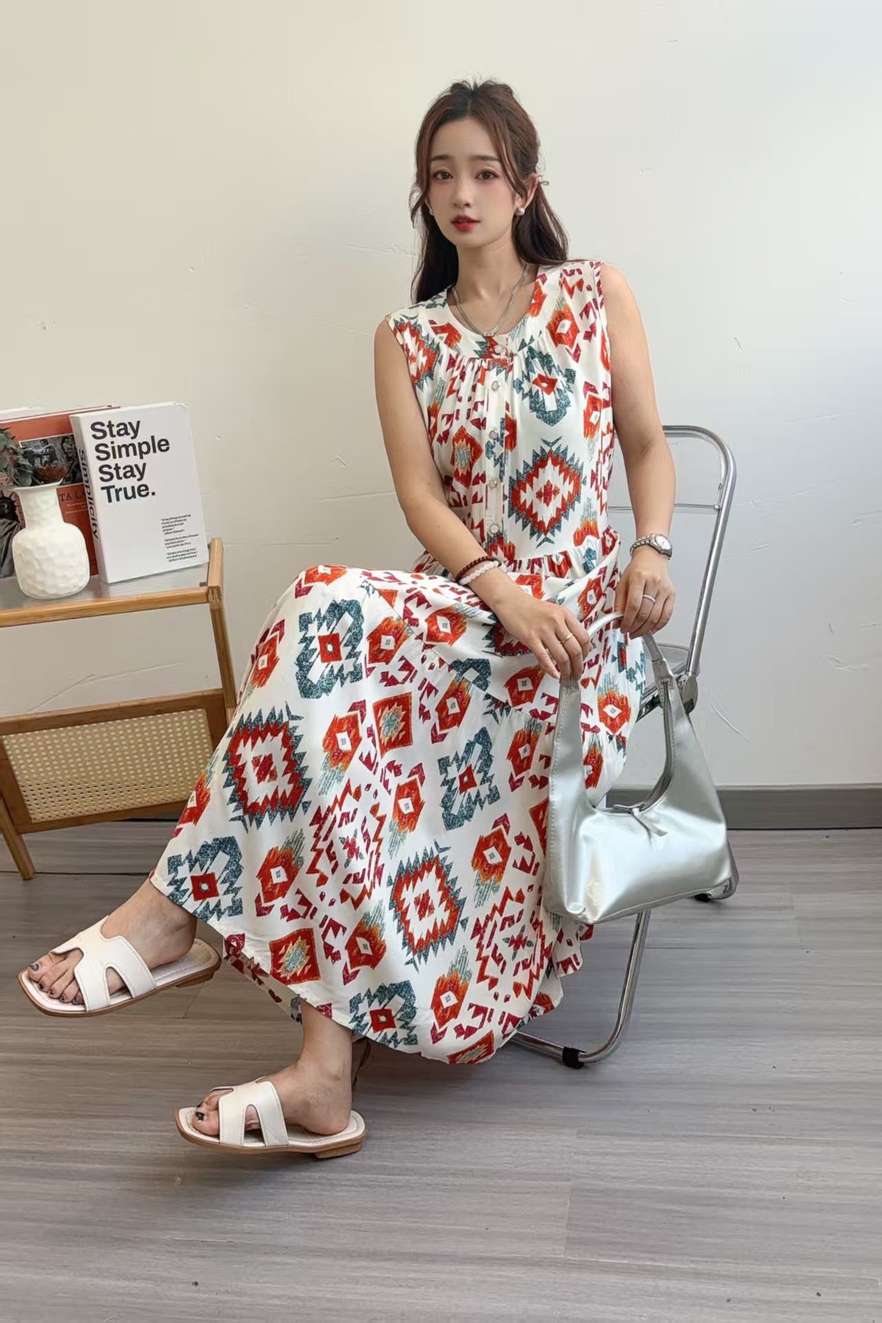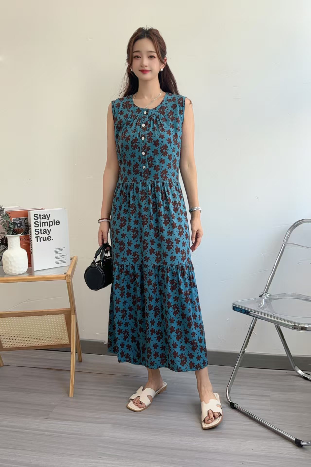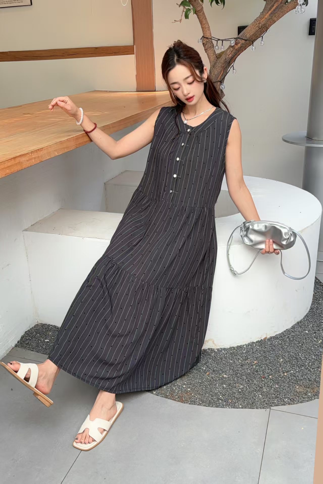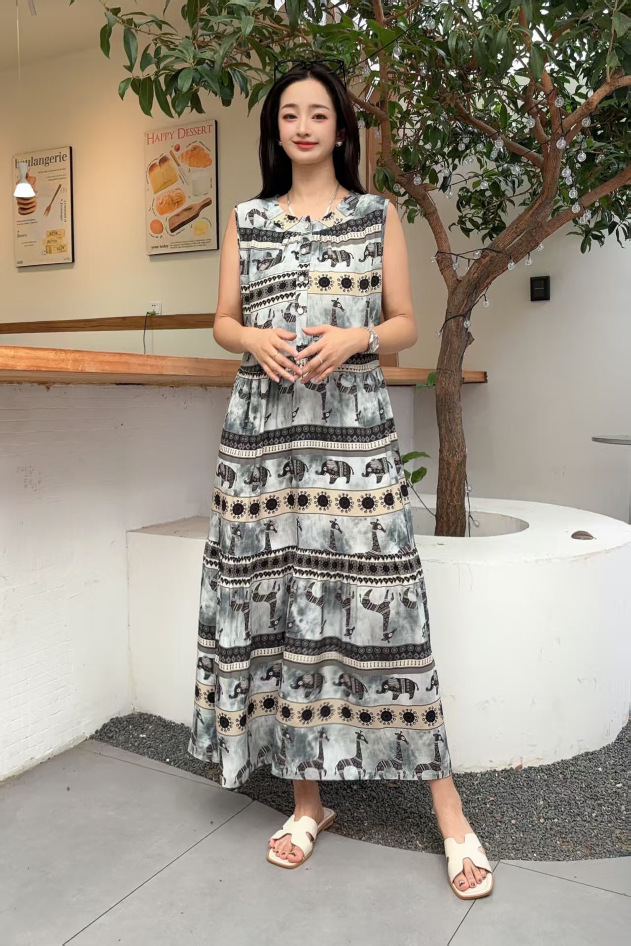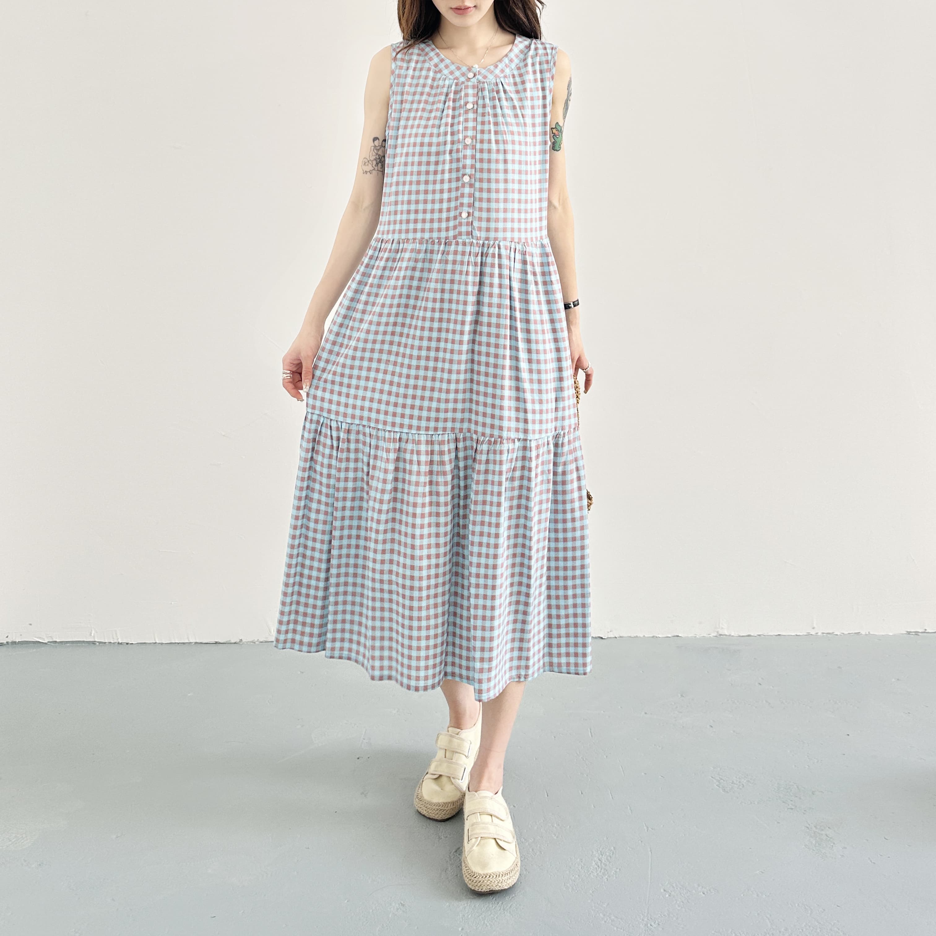 2025年夏季新款棉綢無袖連衣裙女人造棉寬松顯瘦百搭休閒背心長裙