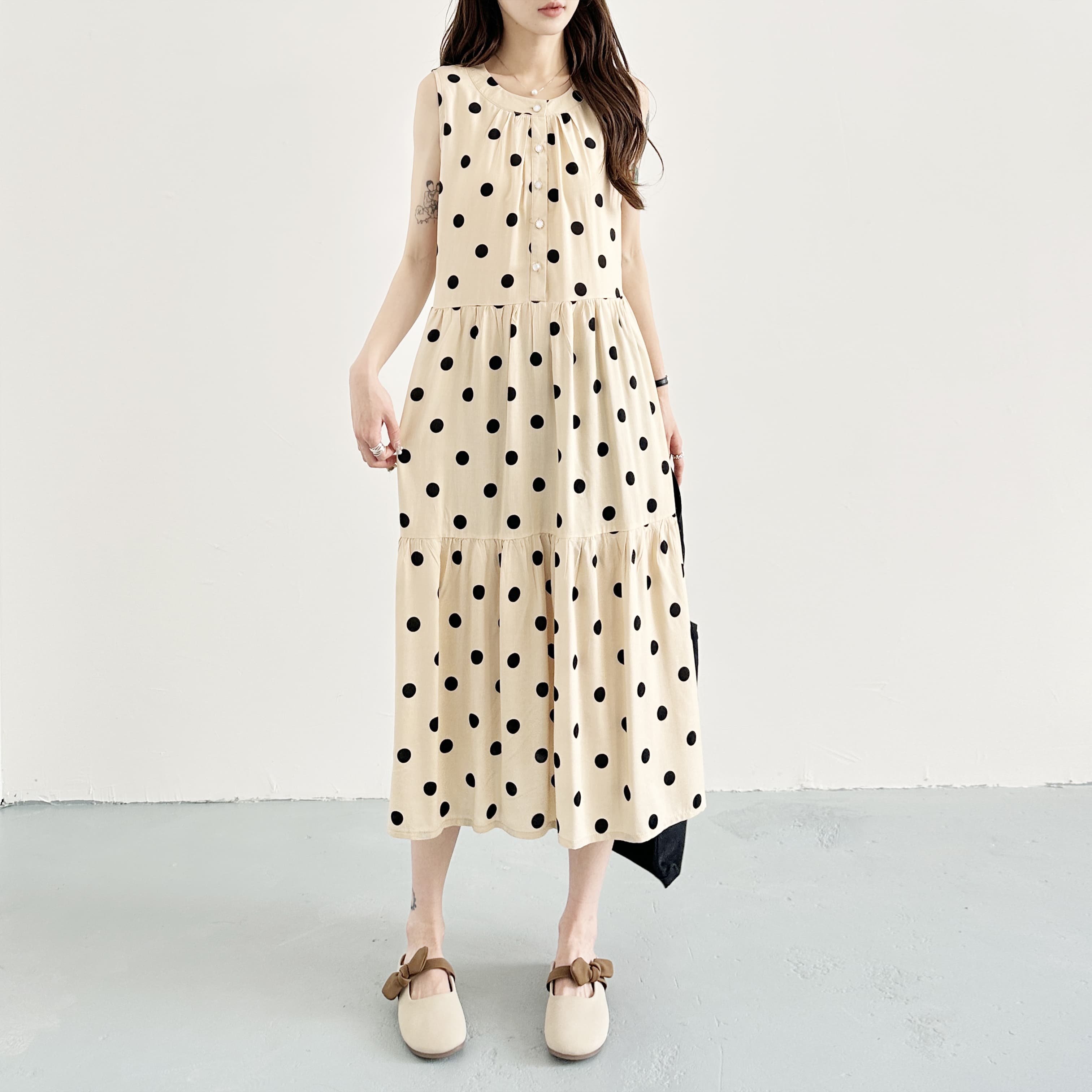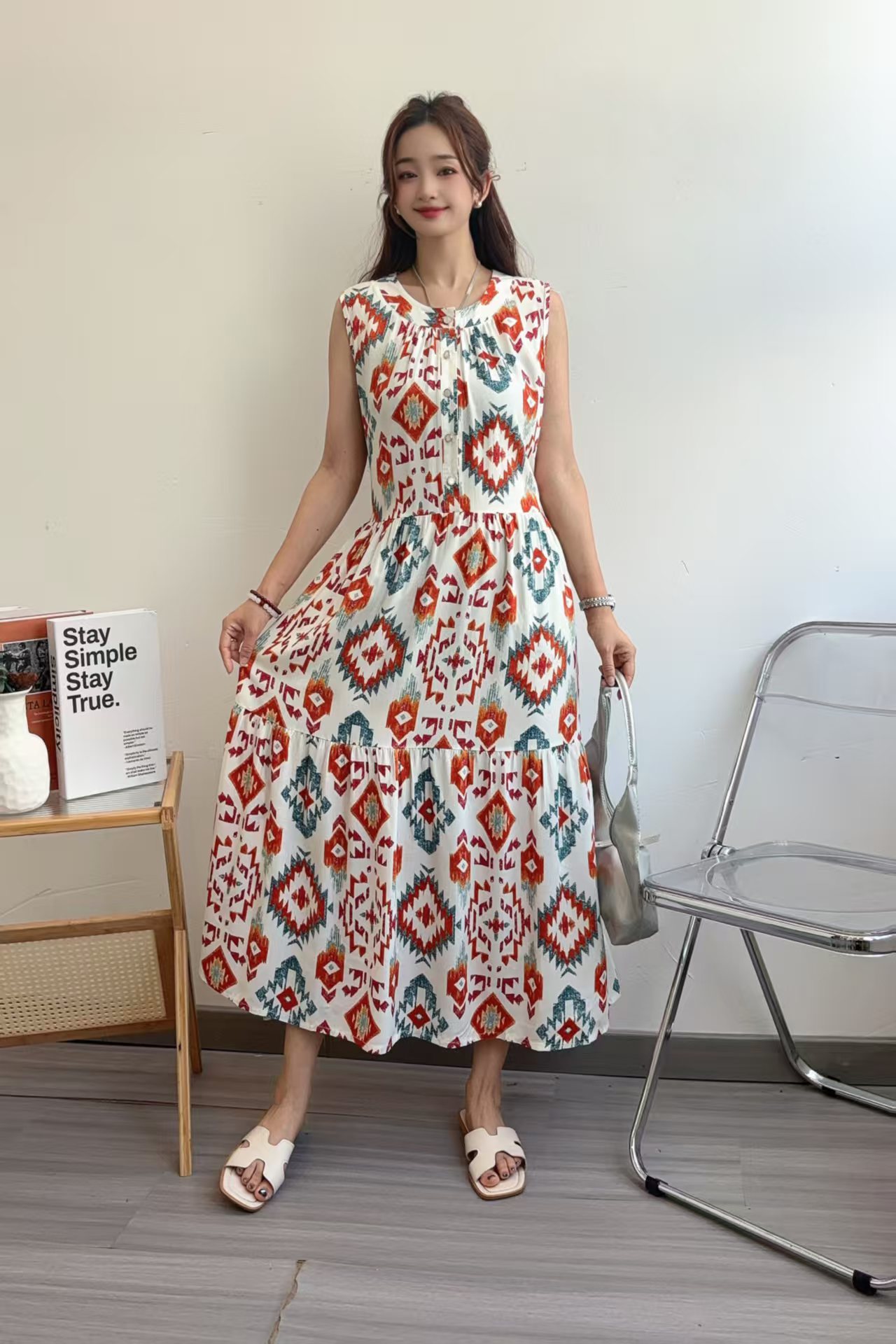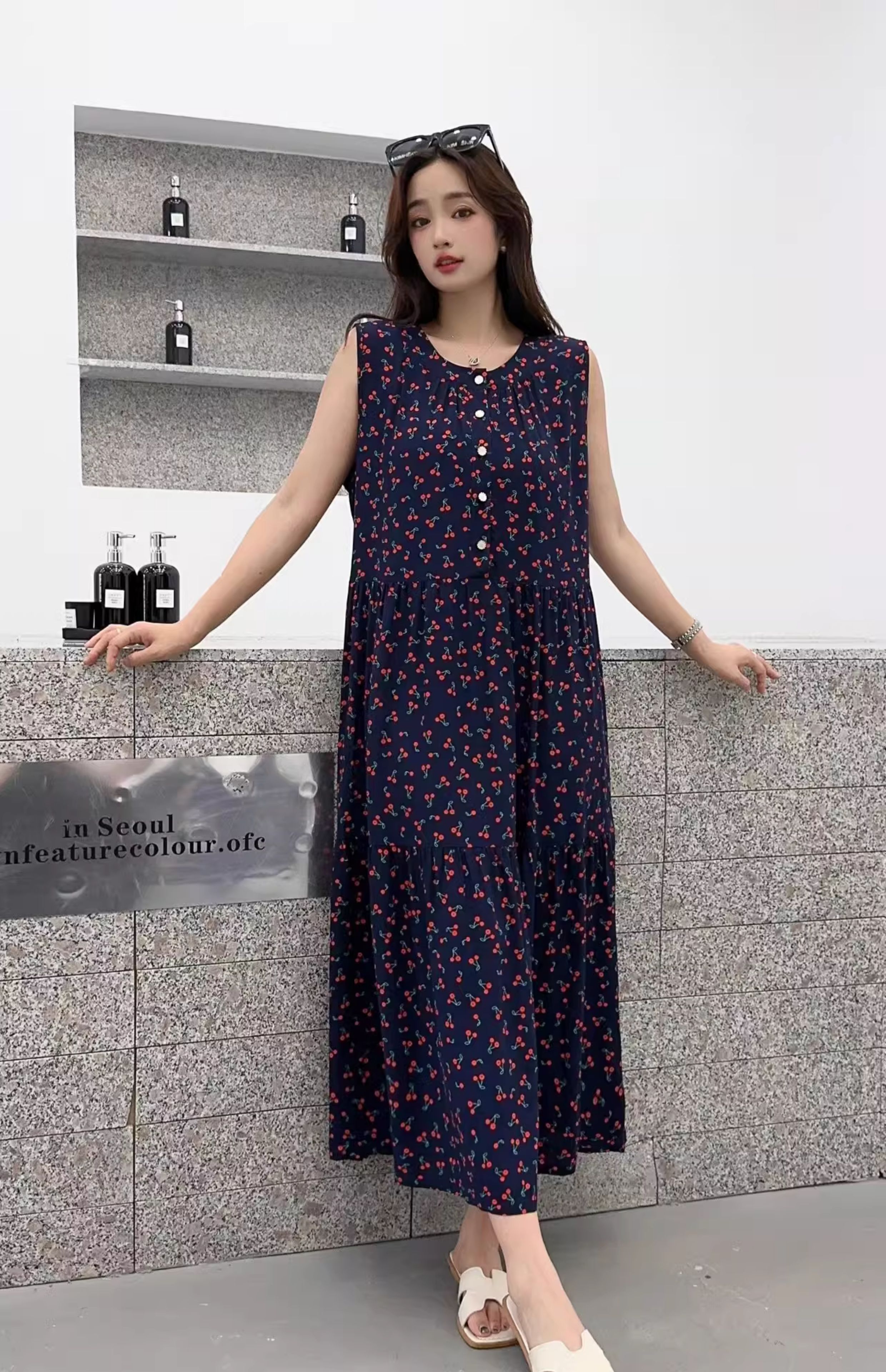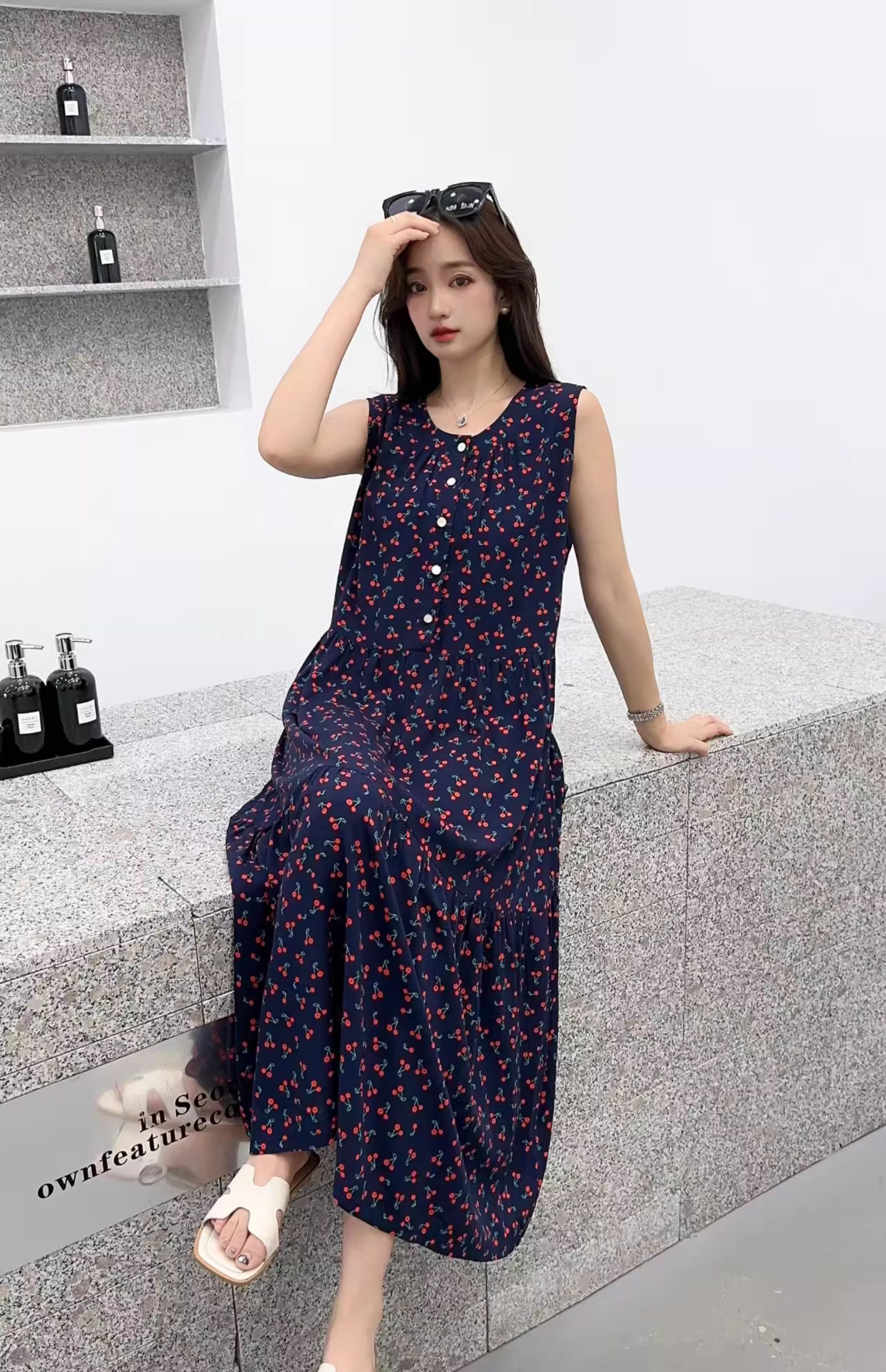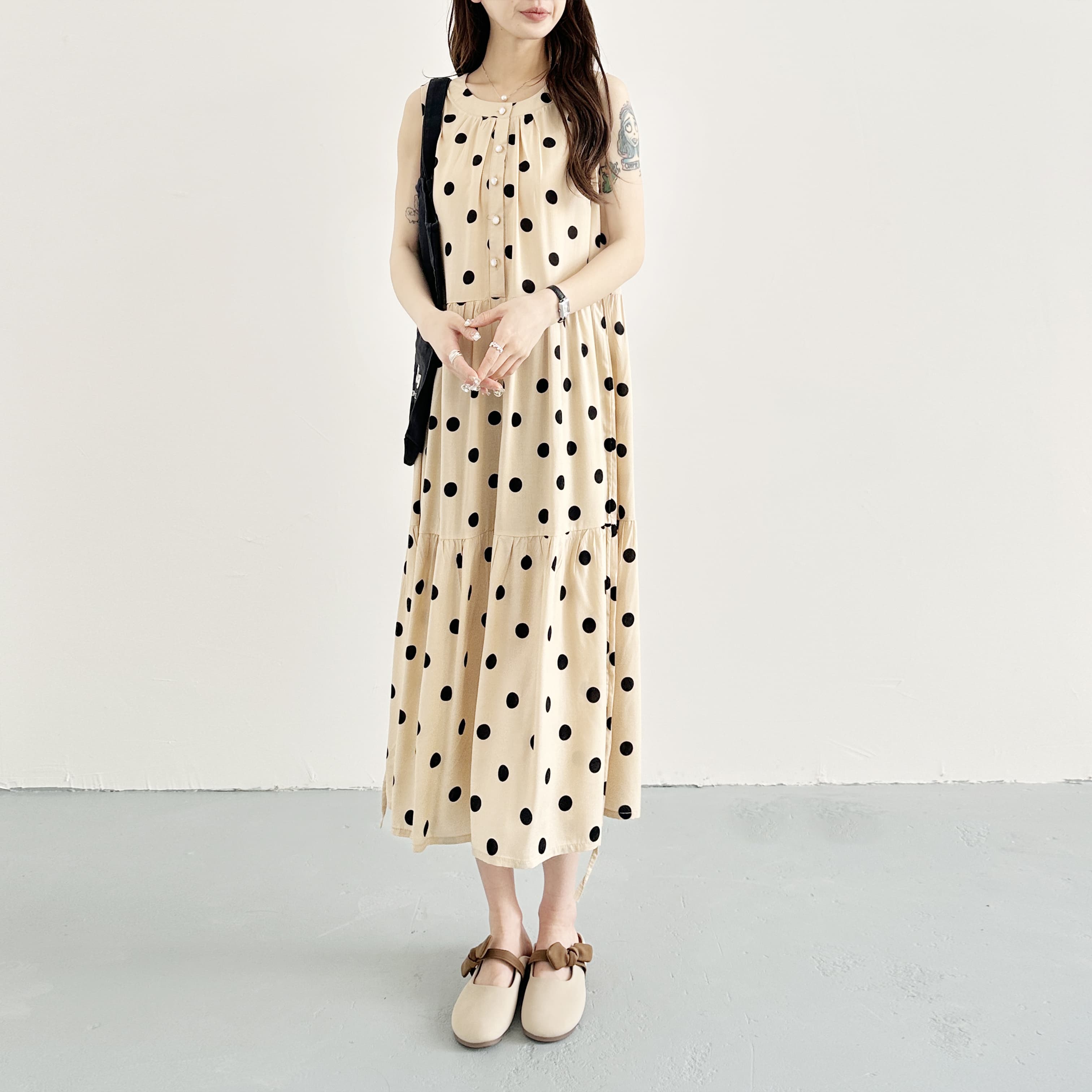 2025年夏季新款棉綢無袖連衣裙女人造棉寬松顯瘦百搭休閒背心長裙