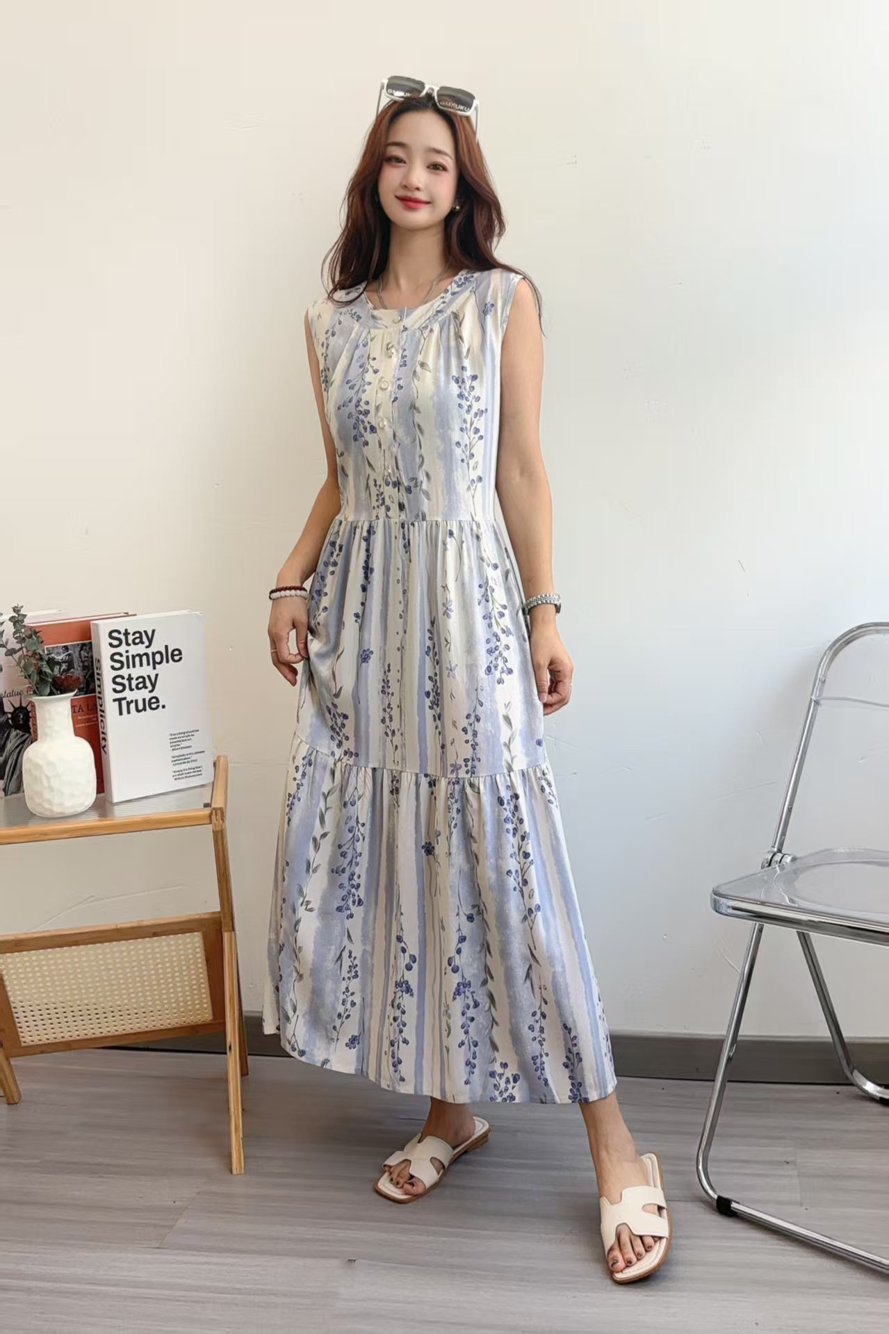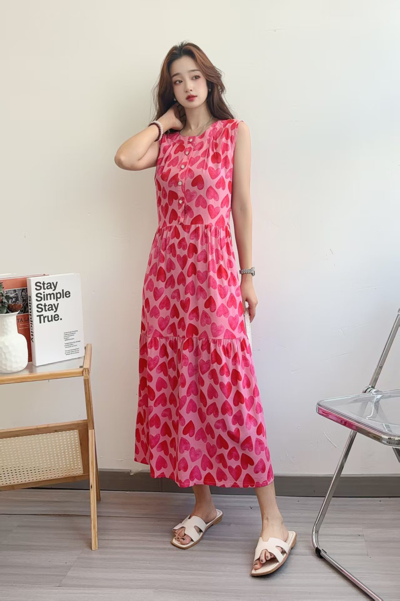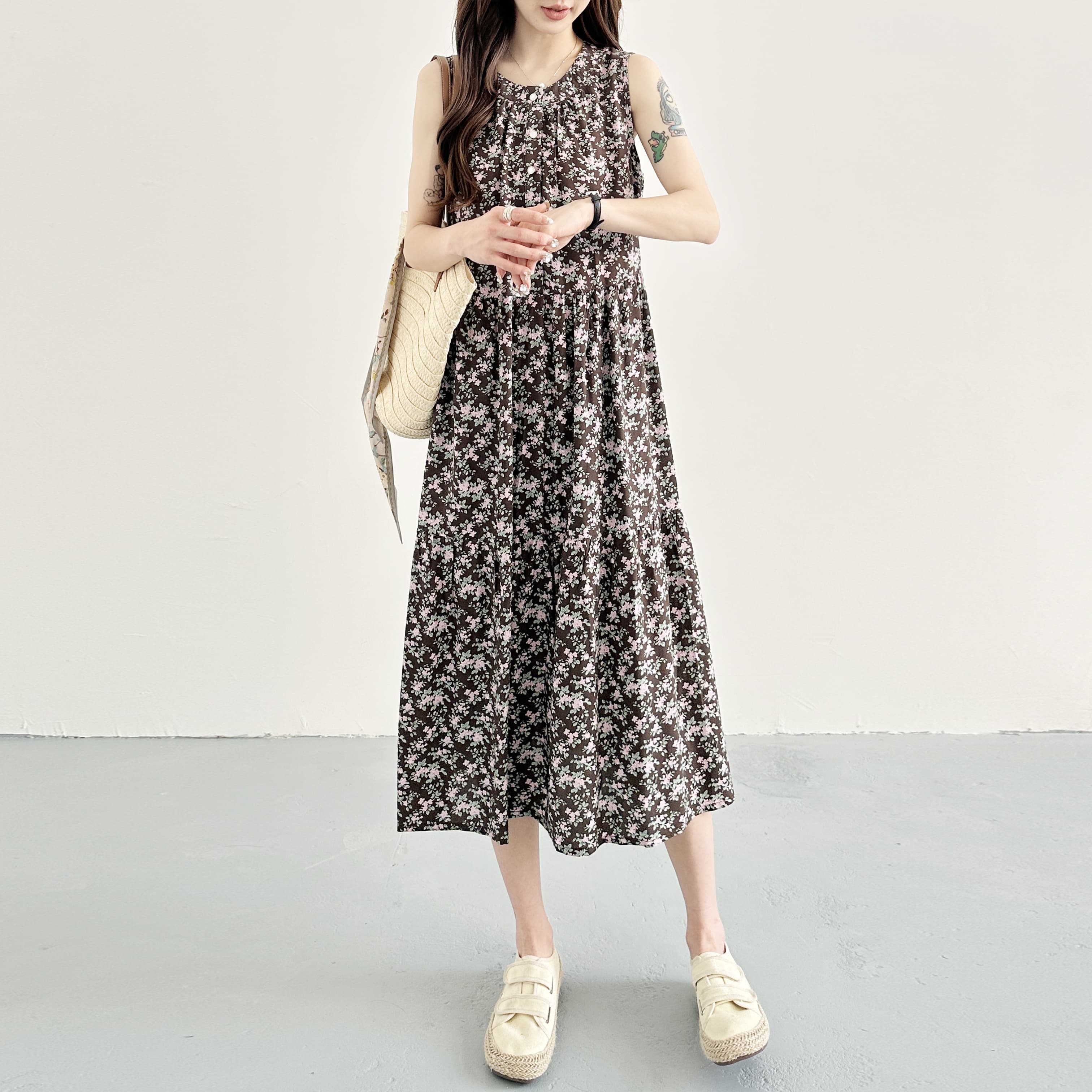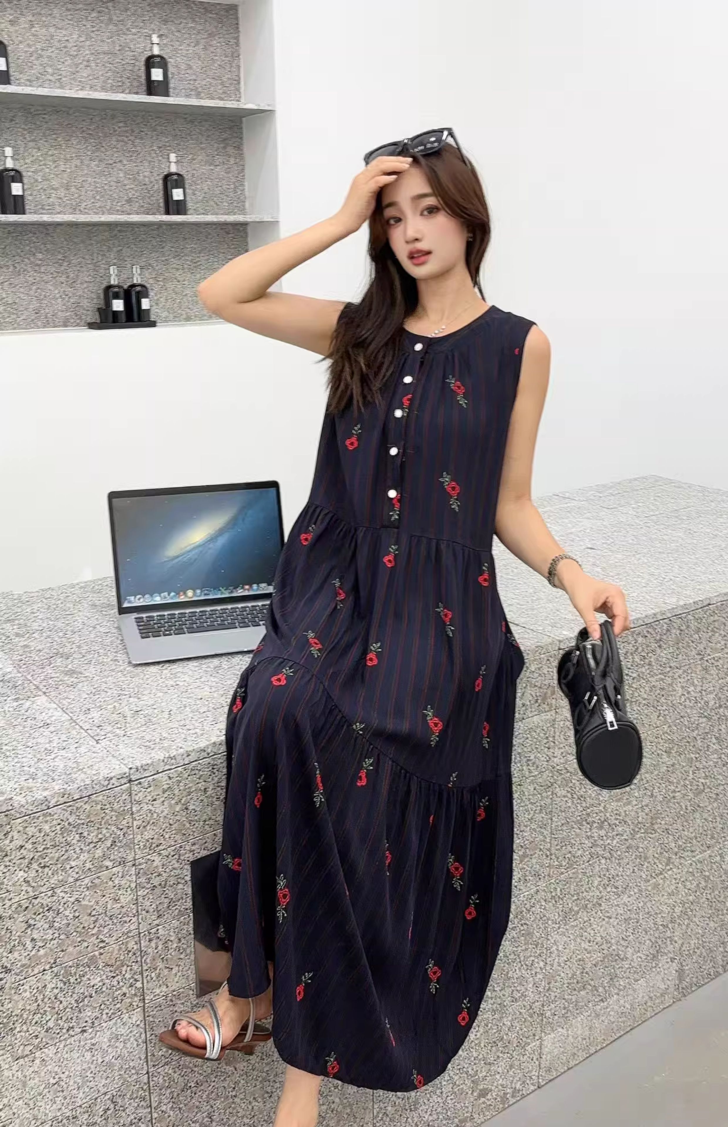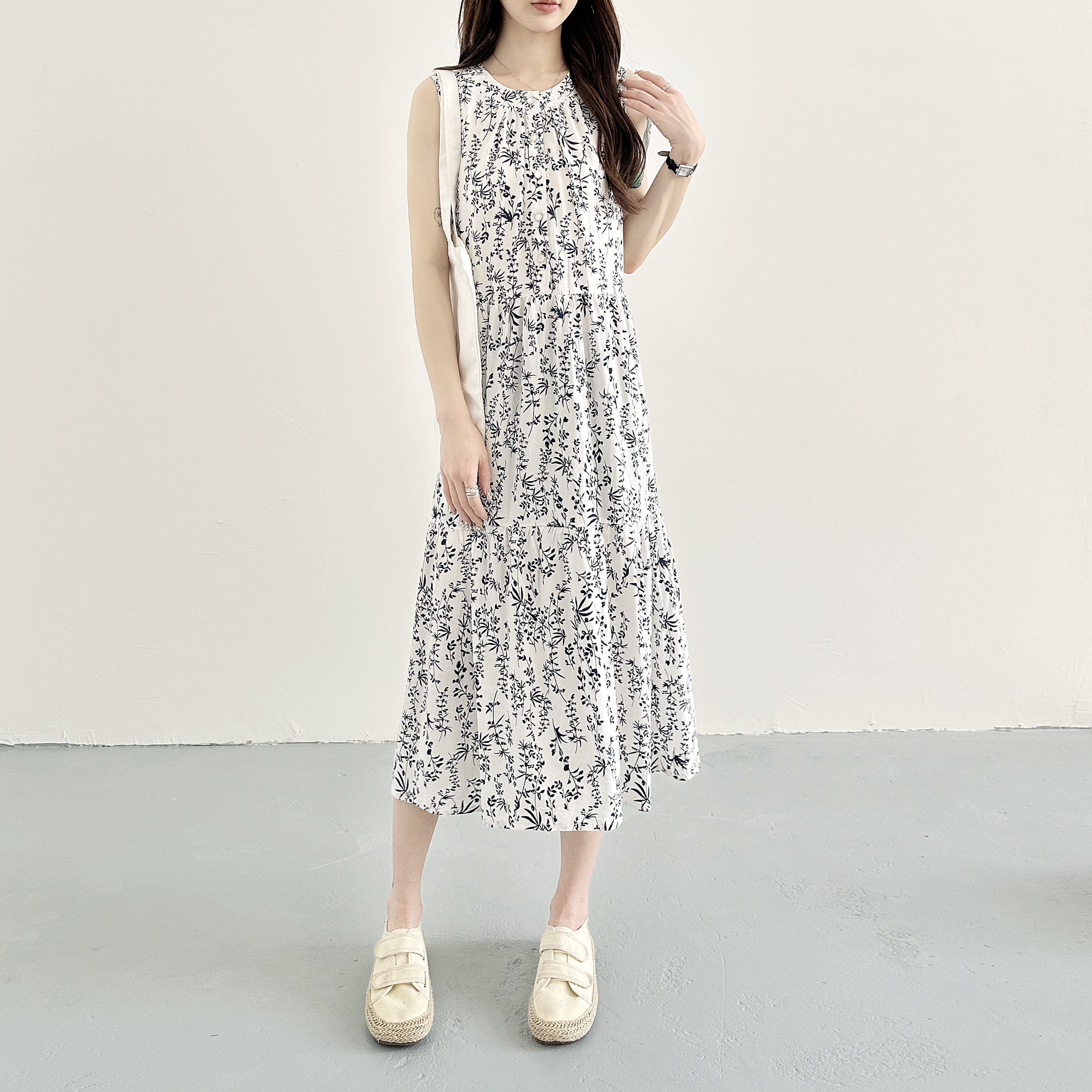 2025年夏季新款棉綢無袖連衣裙女人造棉寬松顯瘦百搭休閒背心長裙