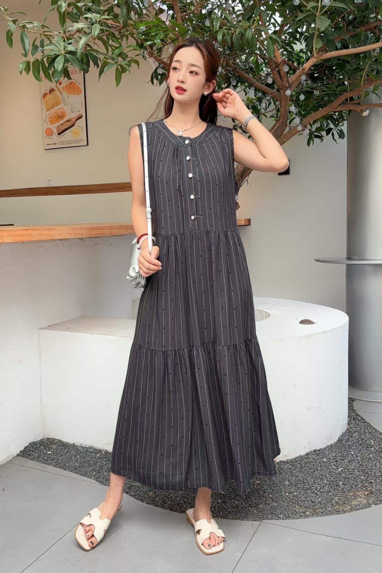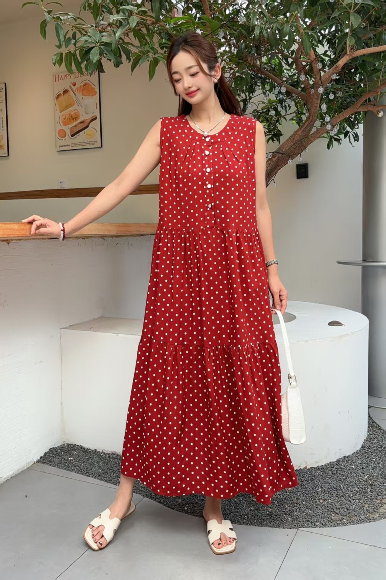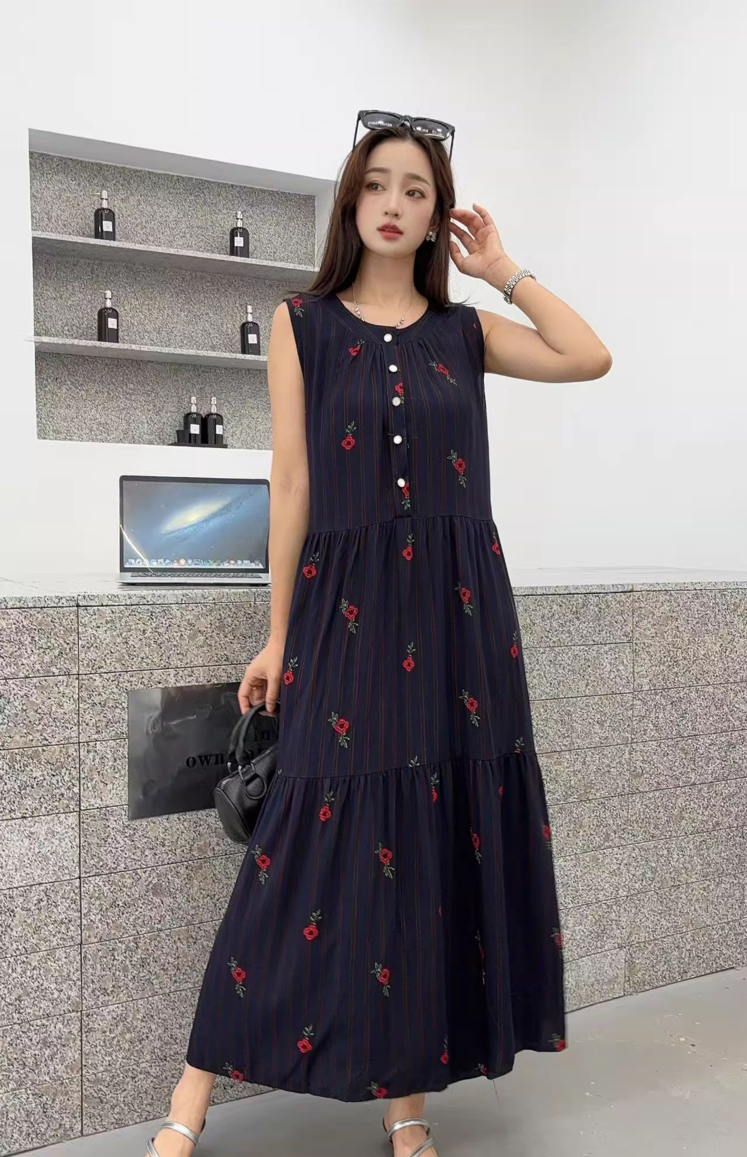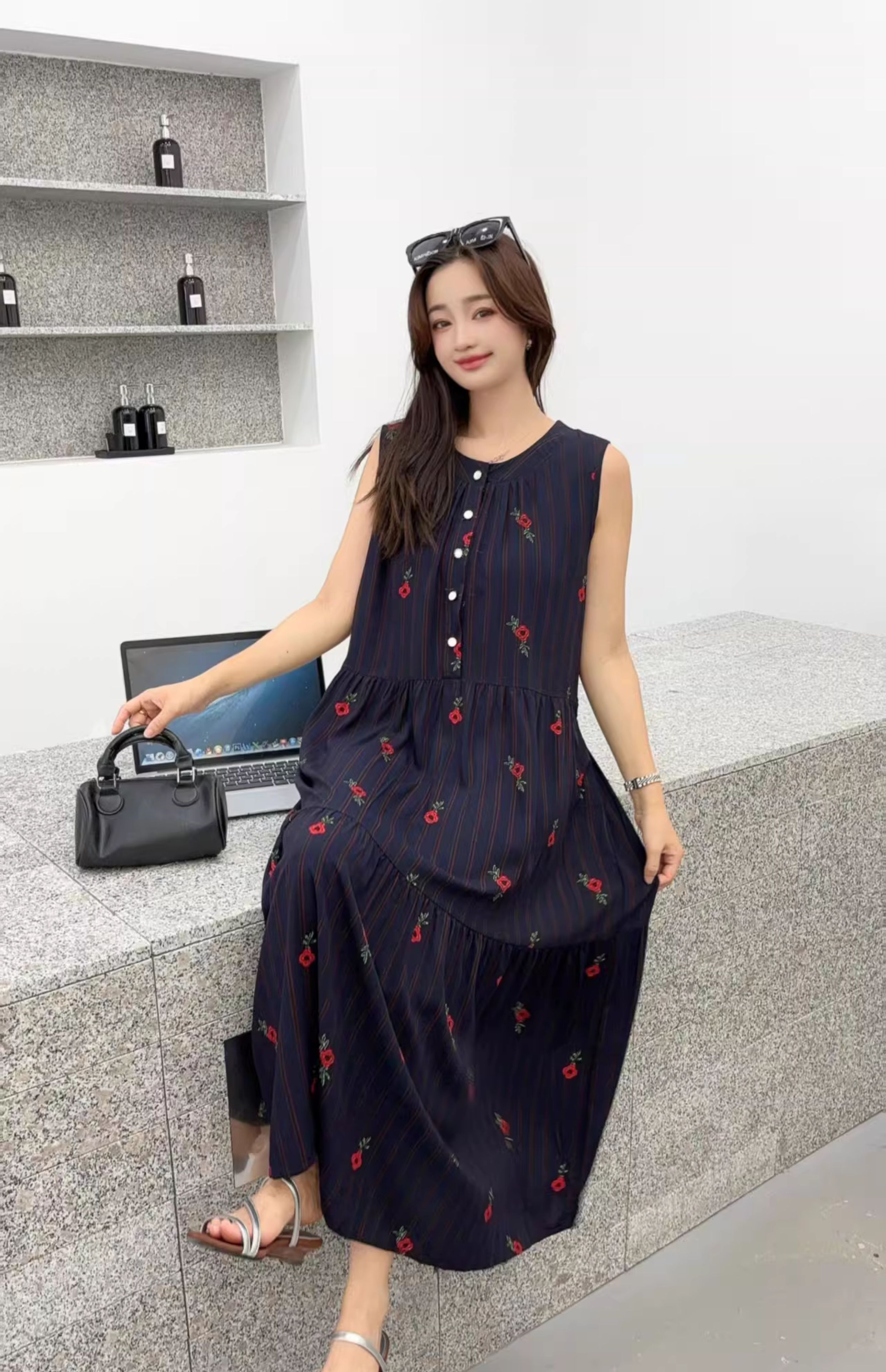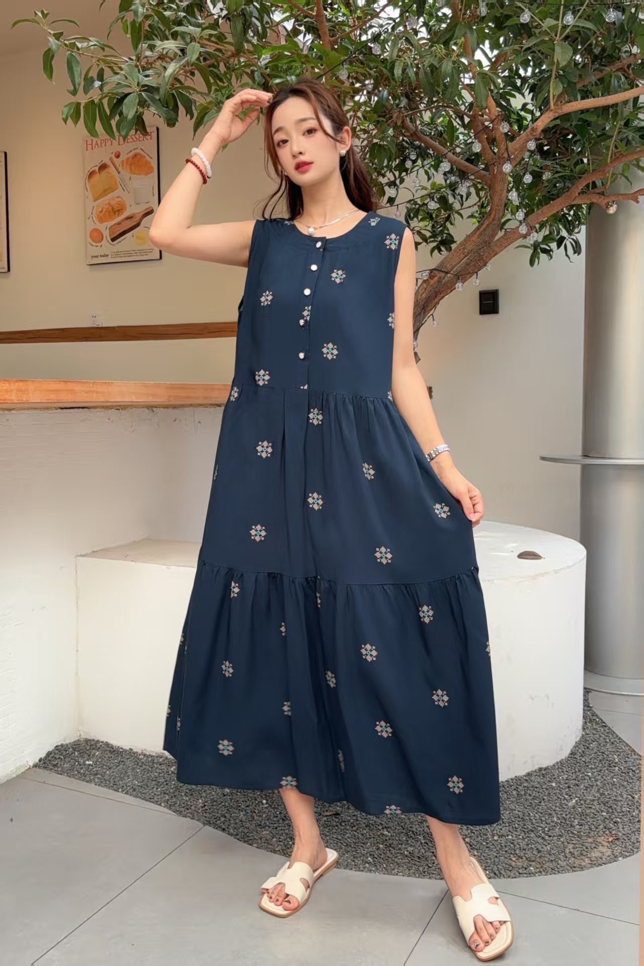 2025年夏季新款棉綢無袖連衣裙女人造棉寬松顯瘦百搭休閒背心長裙