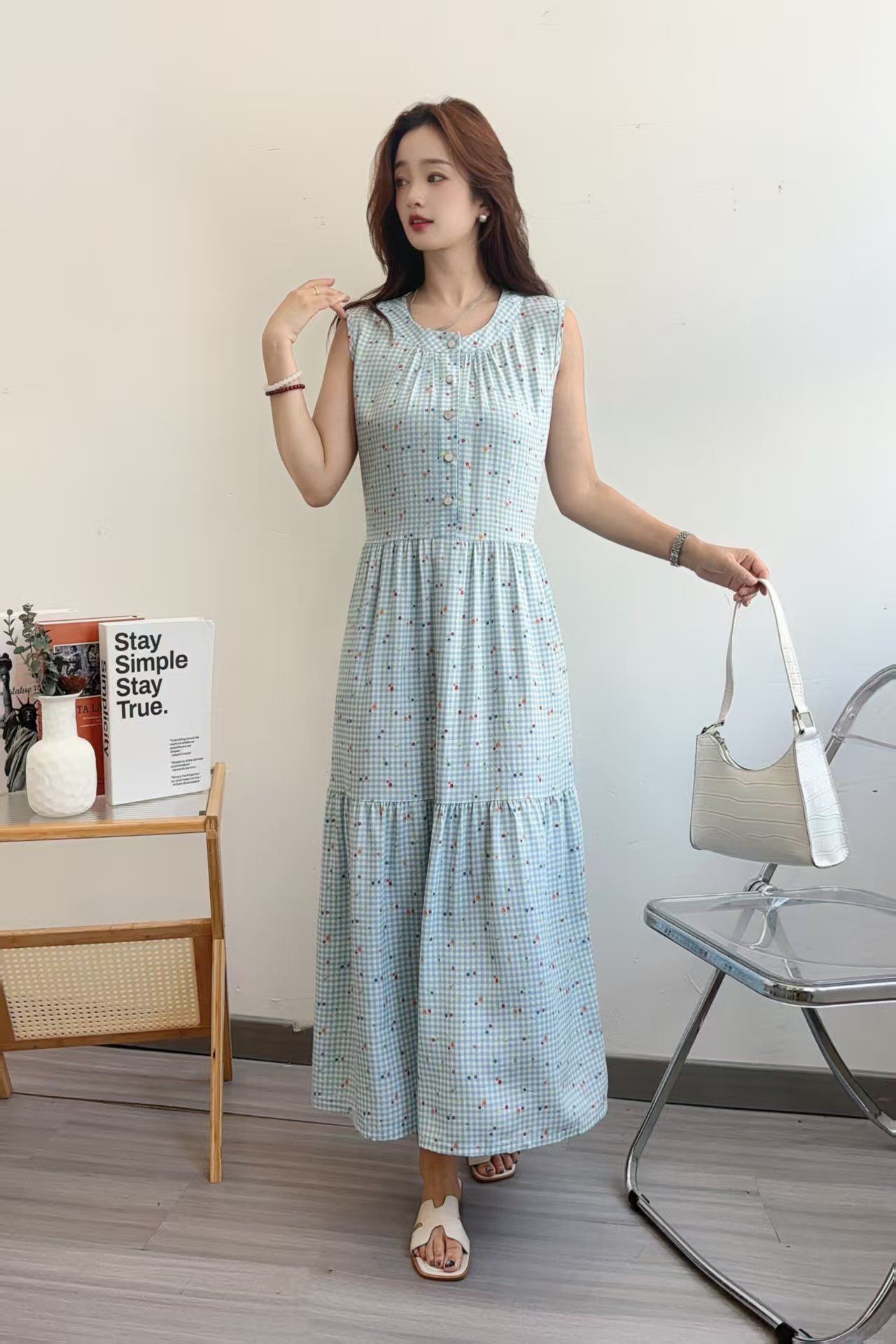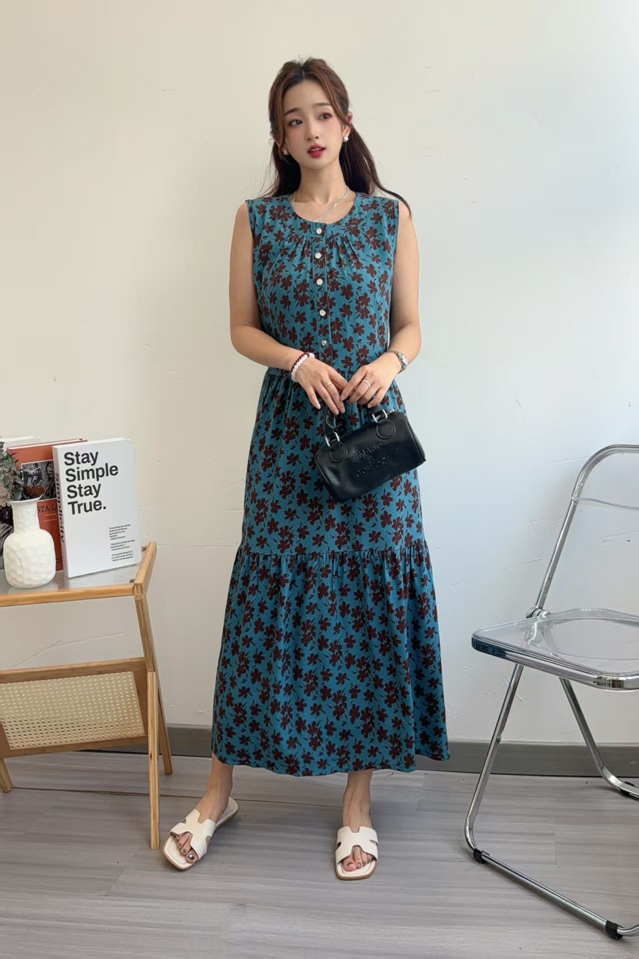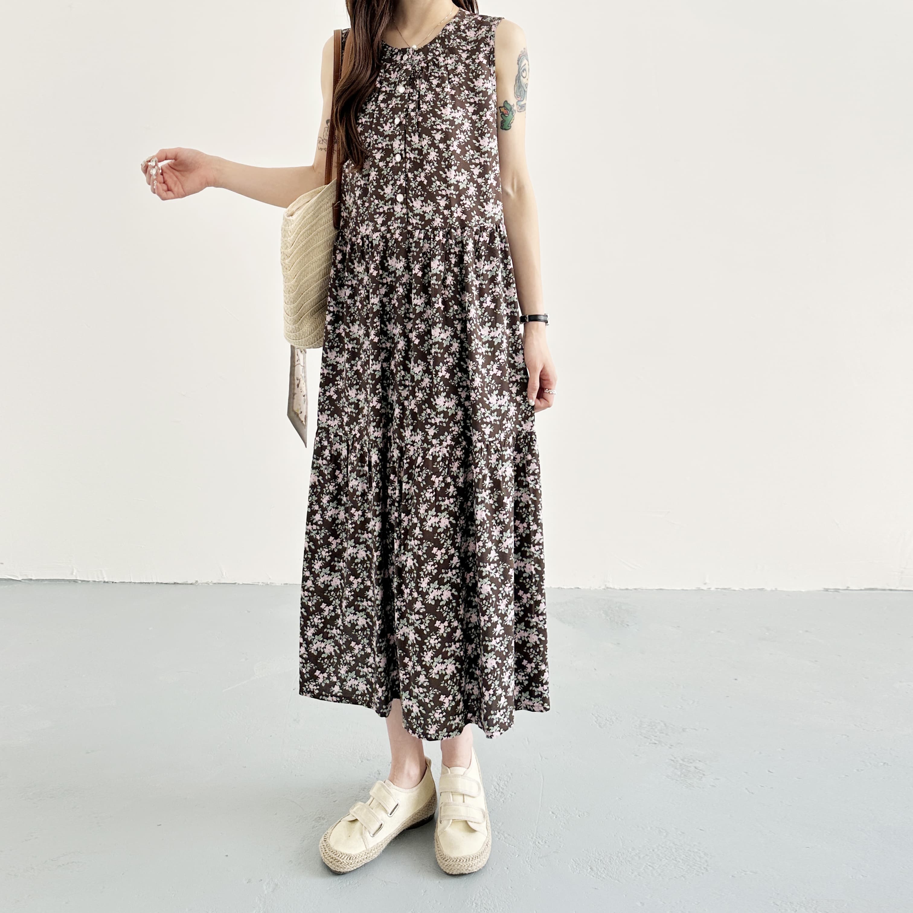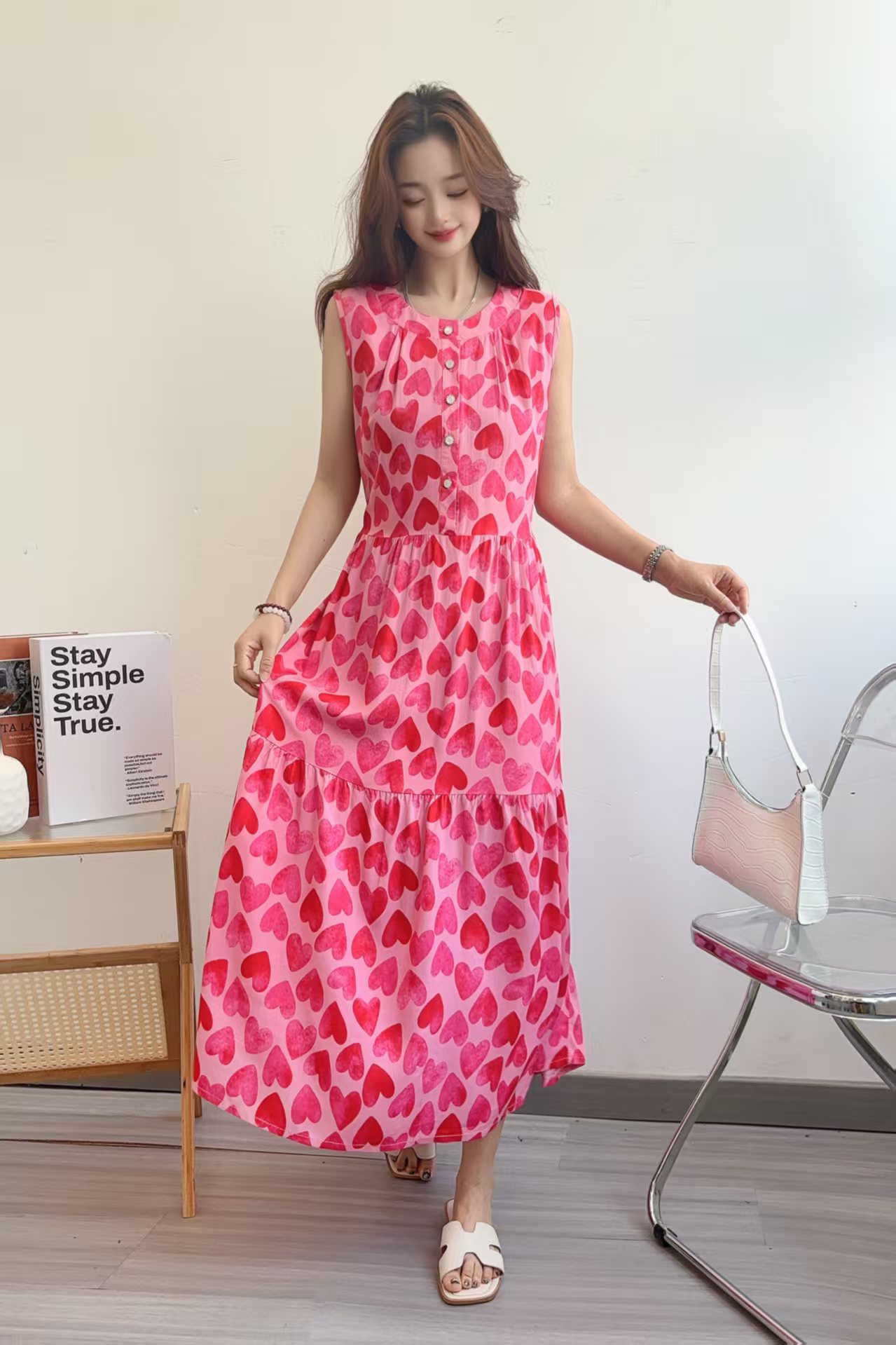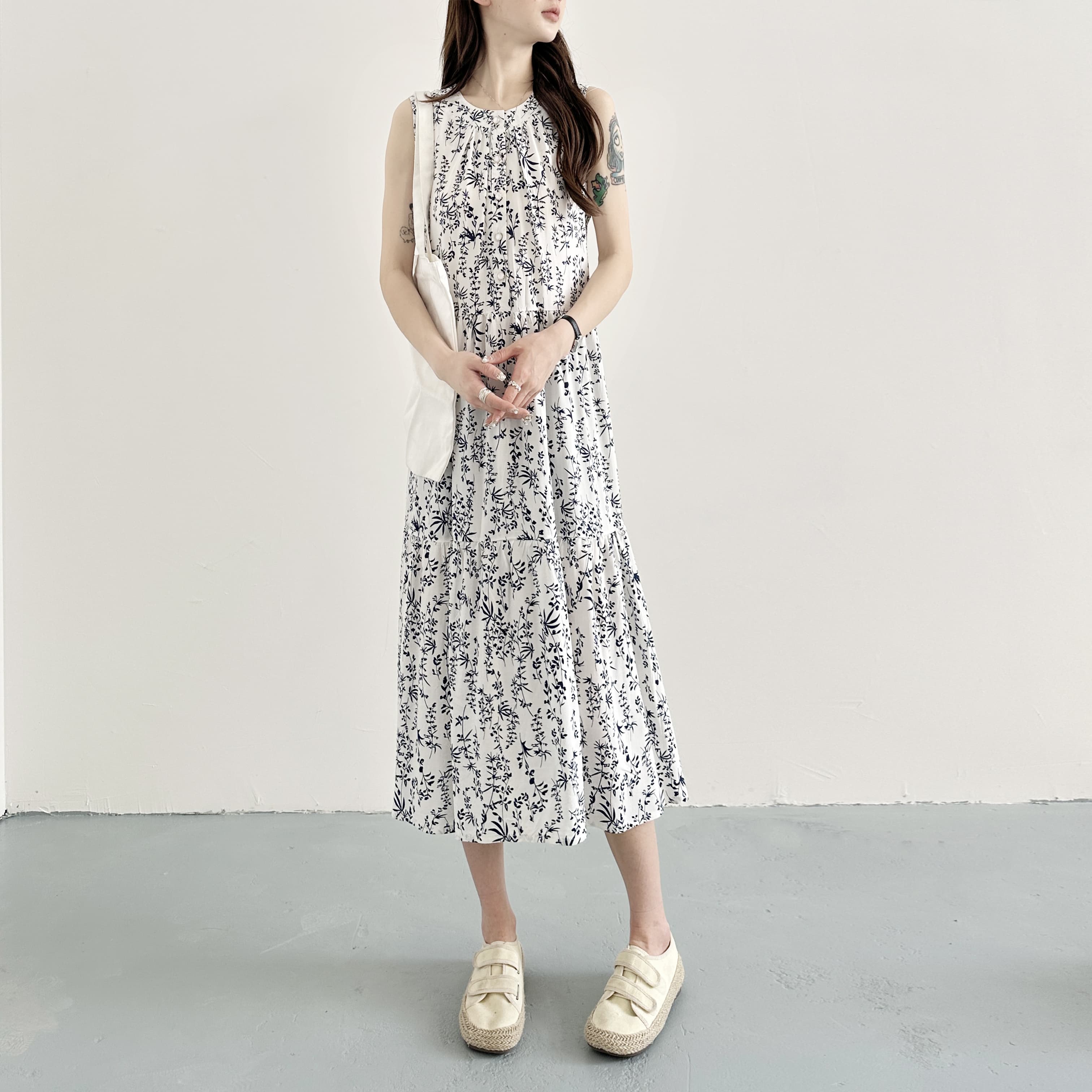 2025年夏季新款棉綢無袖連衣裙女人造棉寬松顯瘦百搭休閒背心長裙