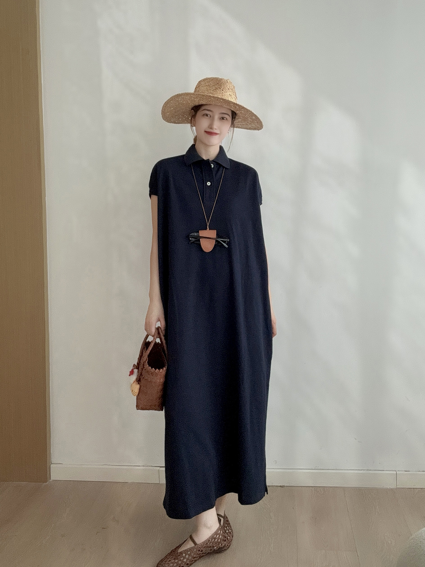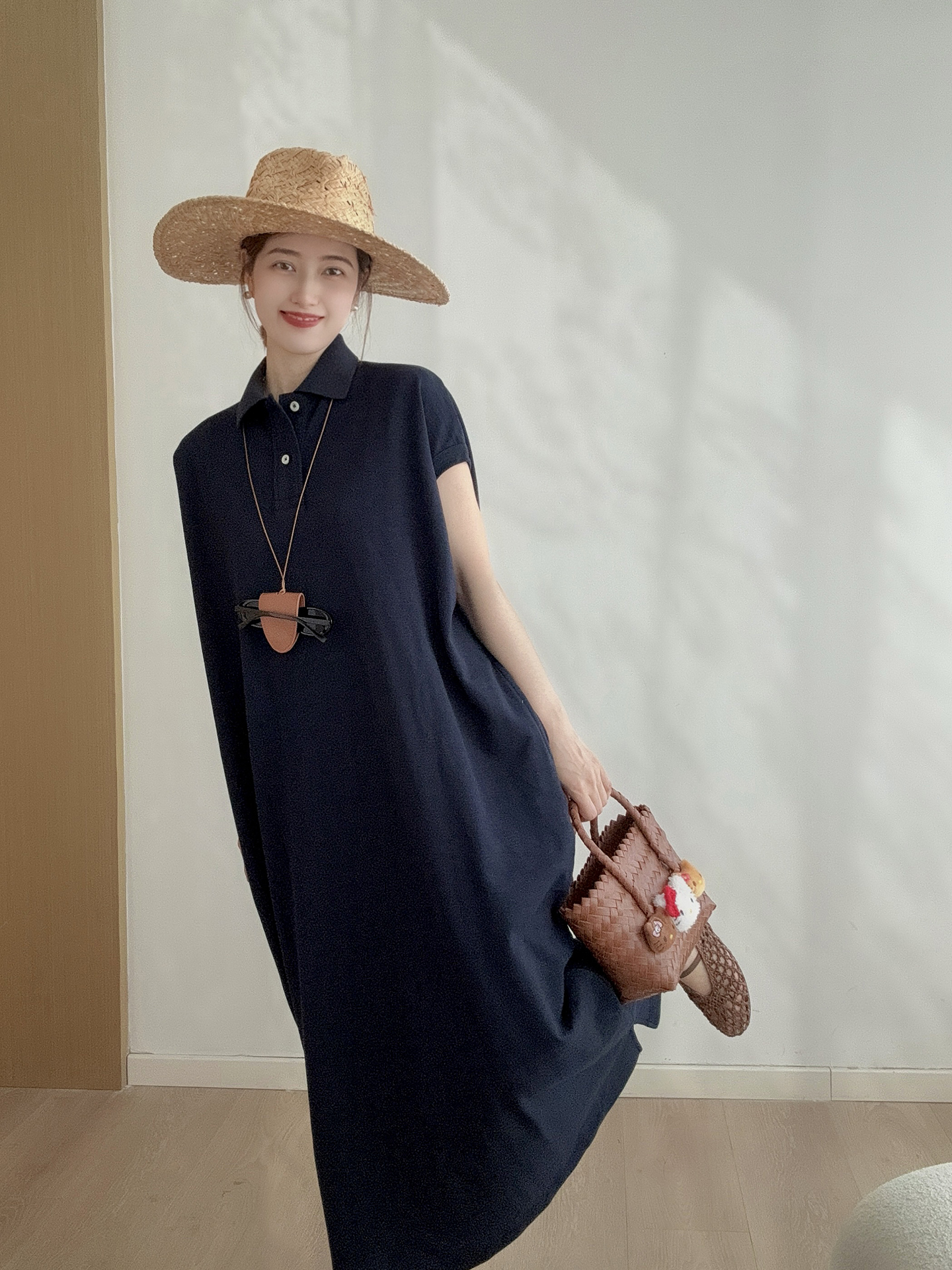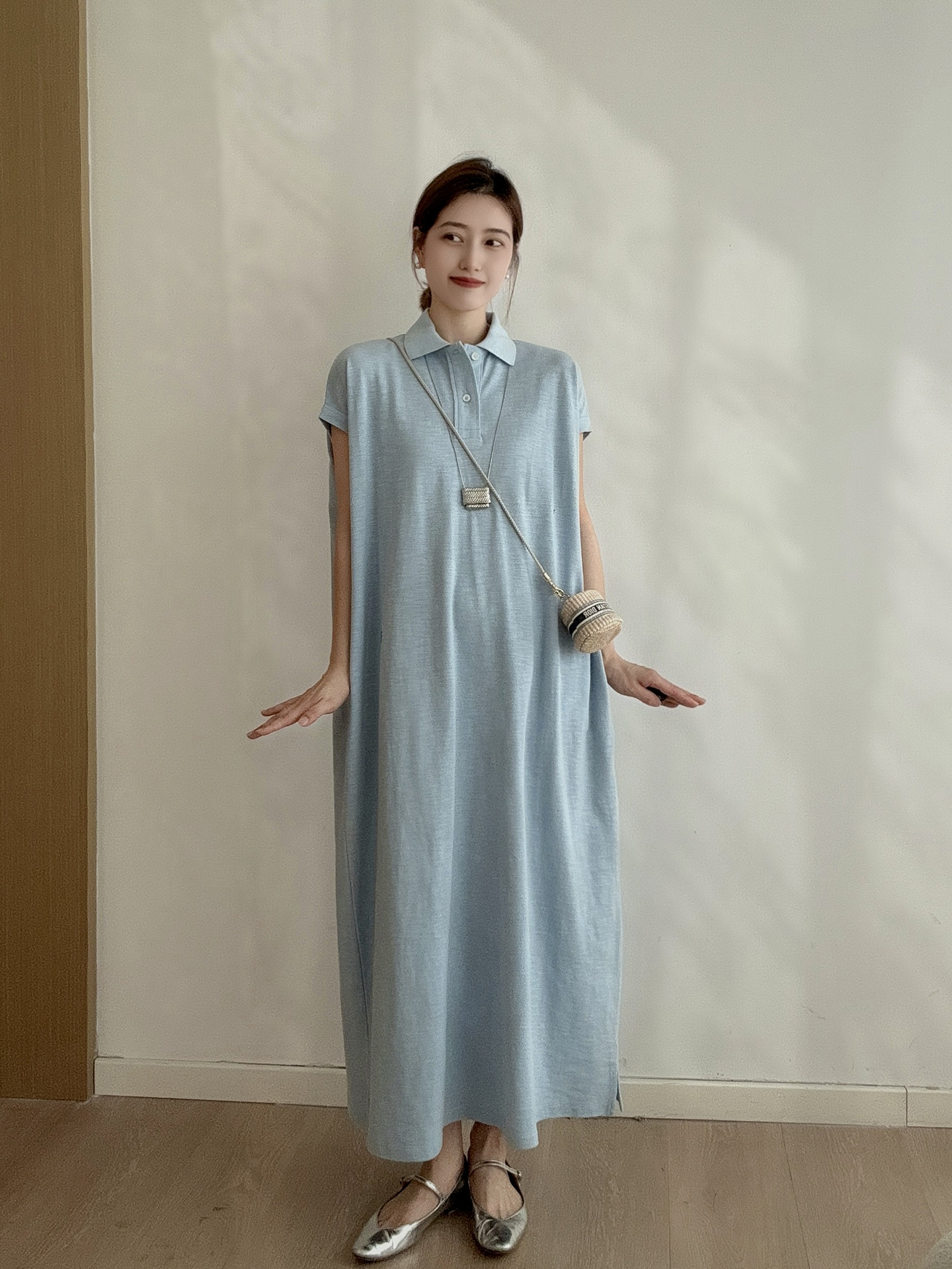 日系 經典刺綉T恤裙 高級感休閒長款寬松polo連衣裙夏女2025新款