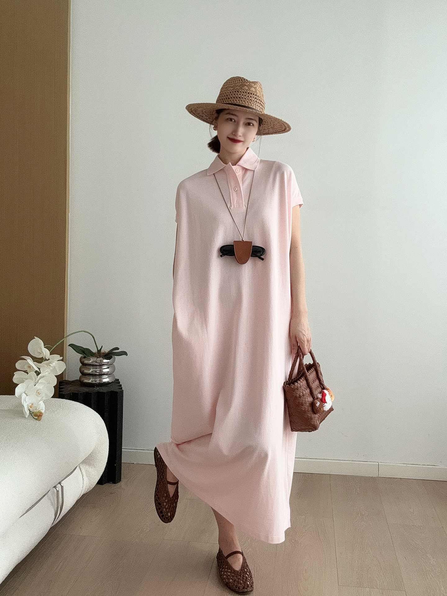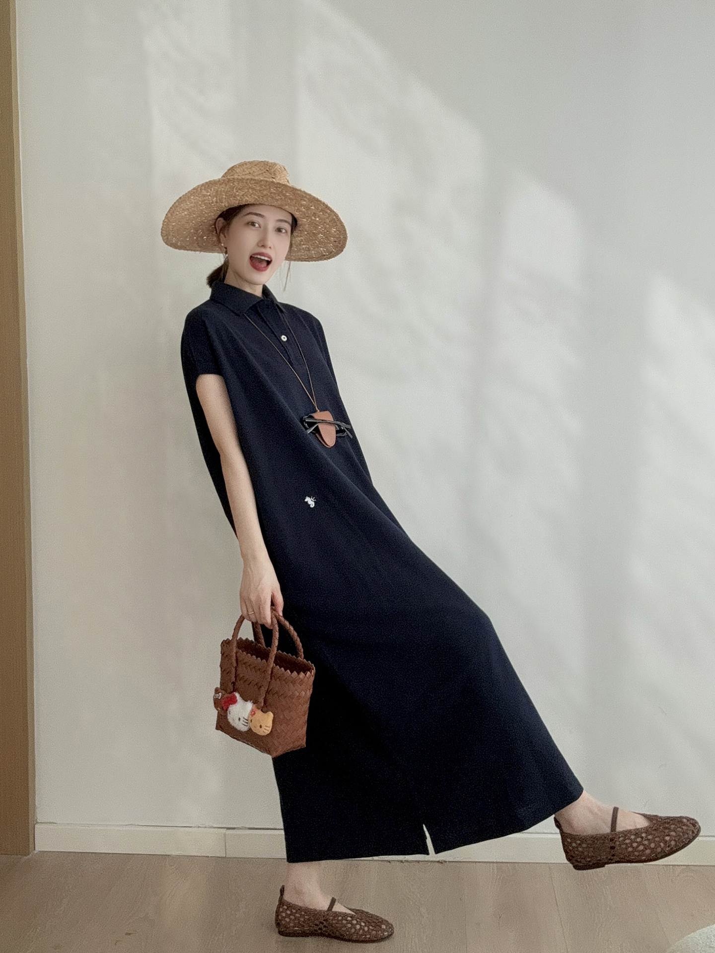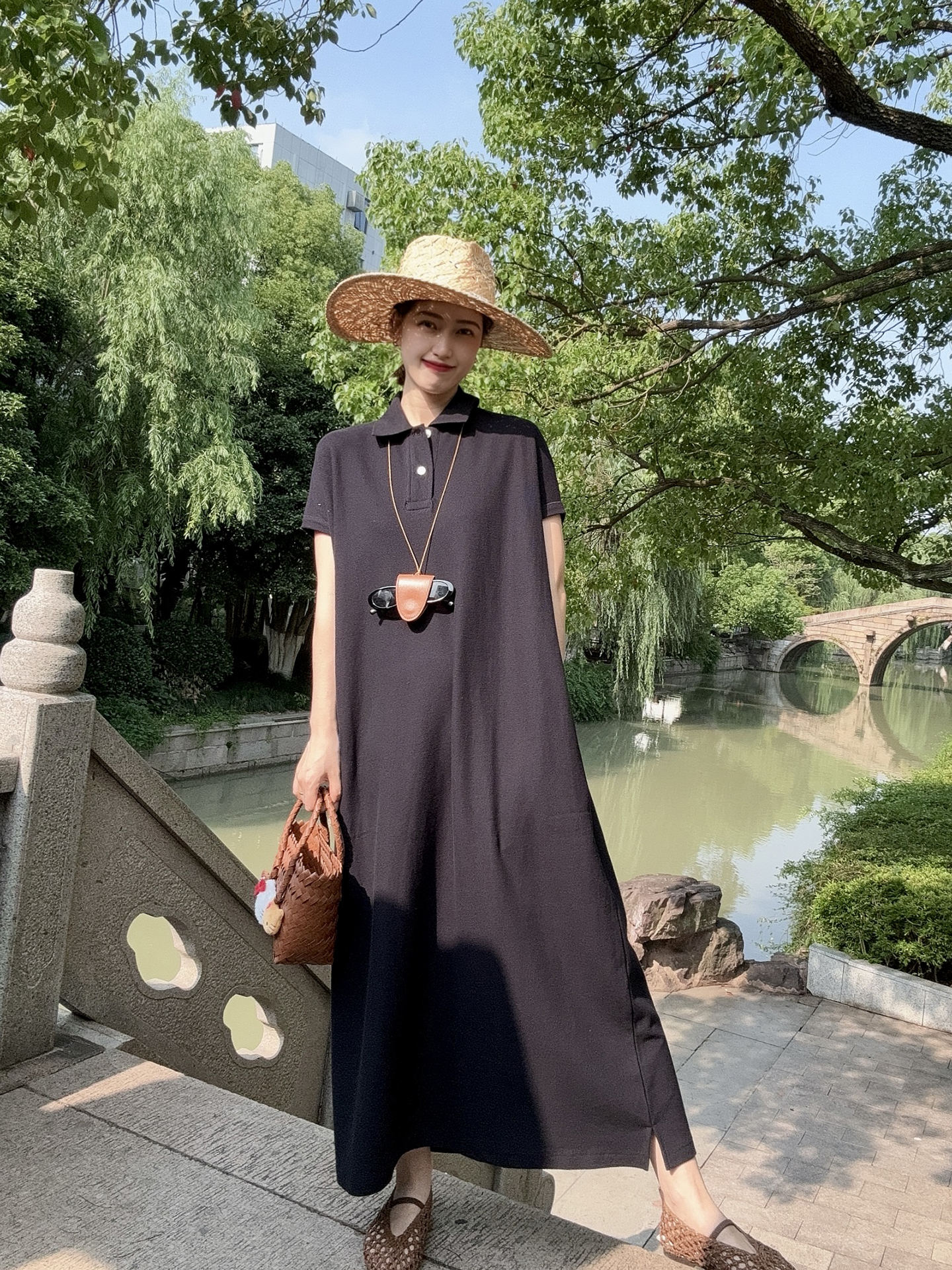 日系 經典刺綉T恤裙 高級感休閒長款寬松polo連衣裙夏女2025新款