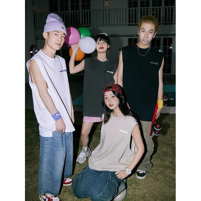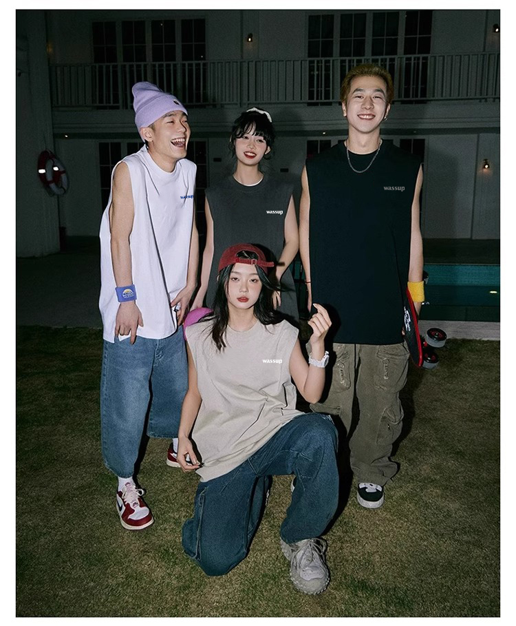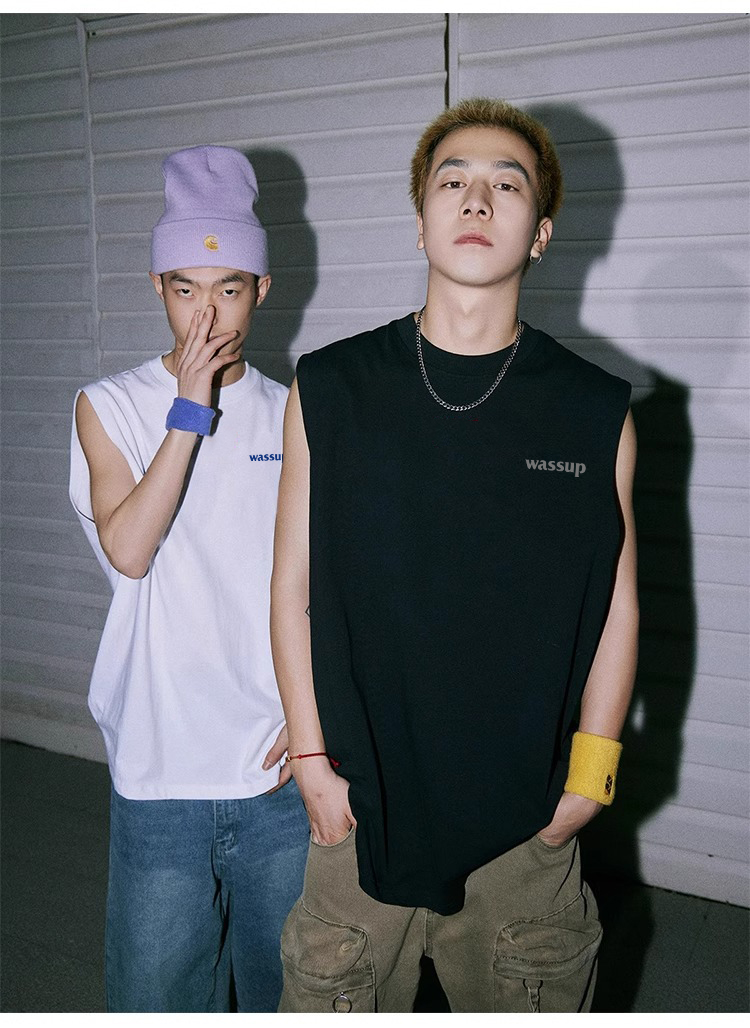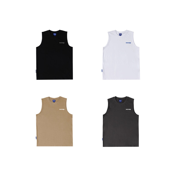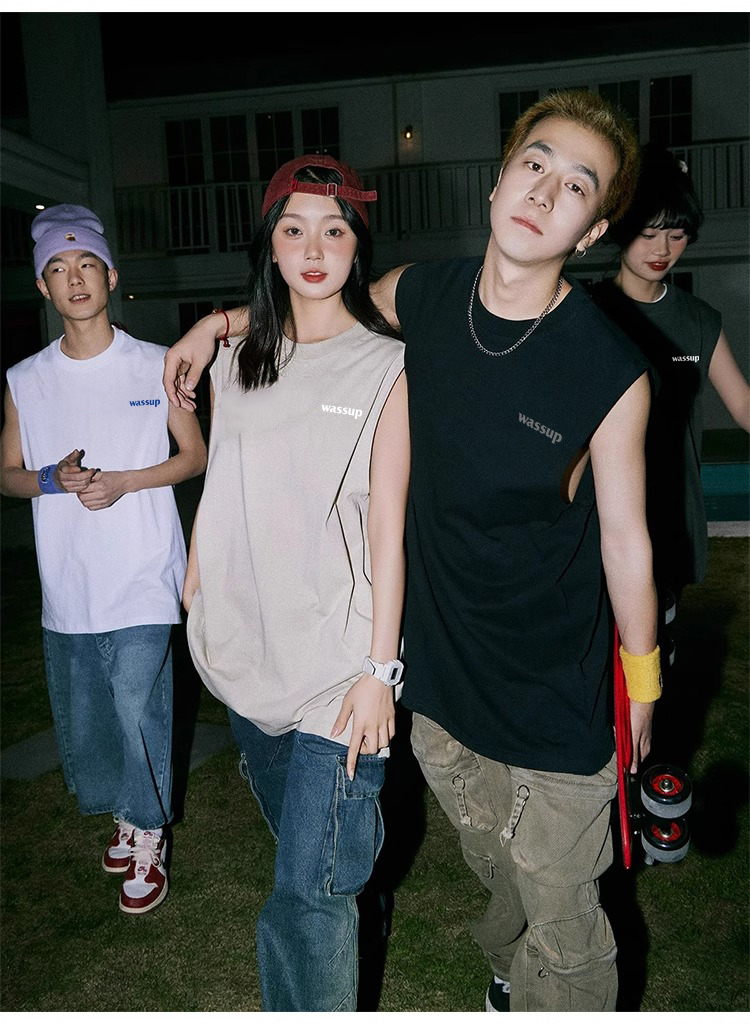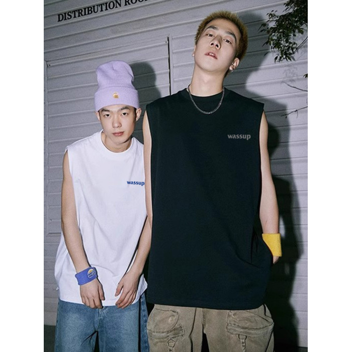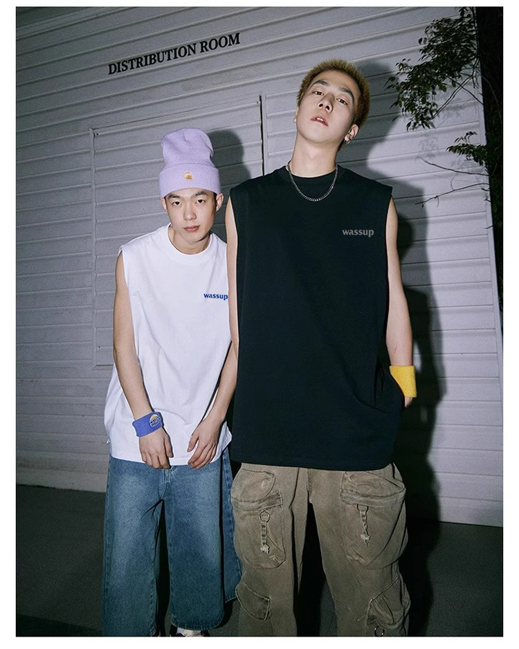 WASSUP小字母純棉坎肩背心男女夏季潮牌運動健身情侶無袖T恤