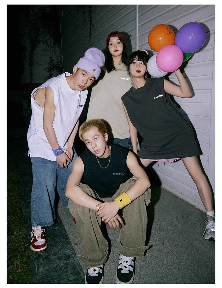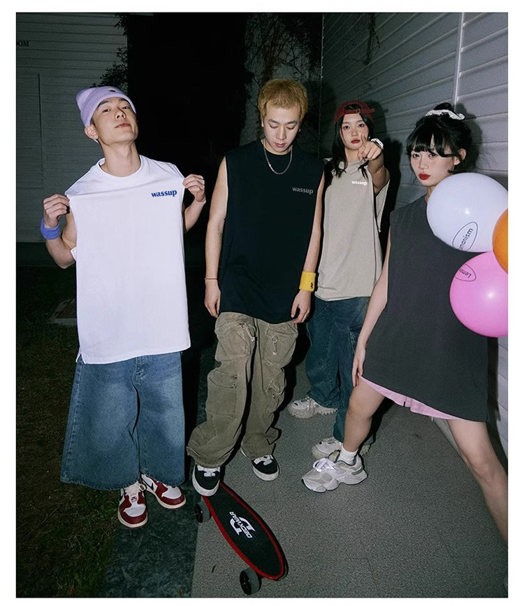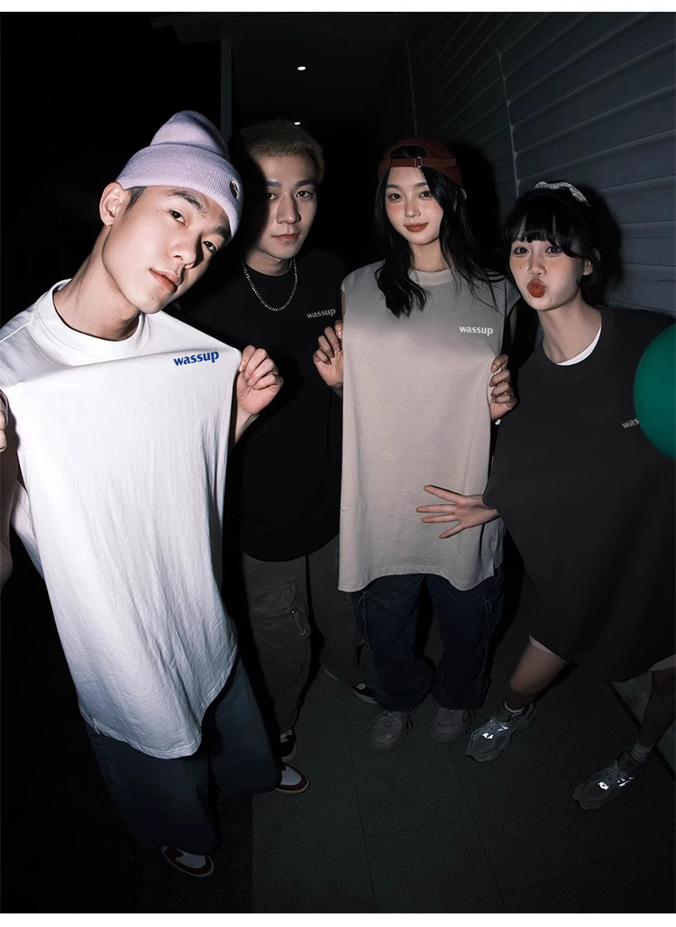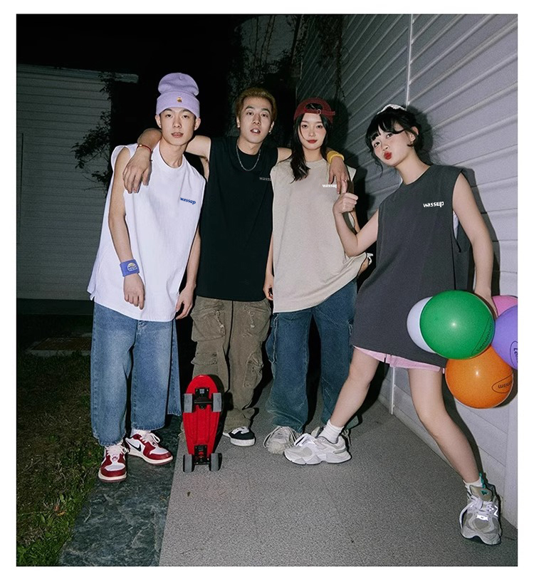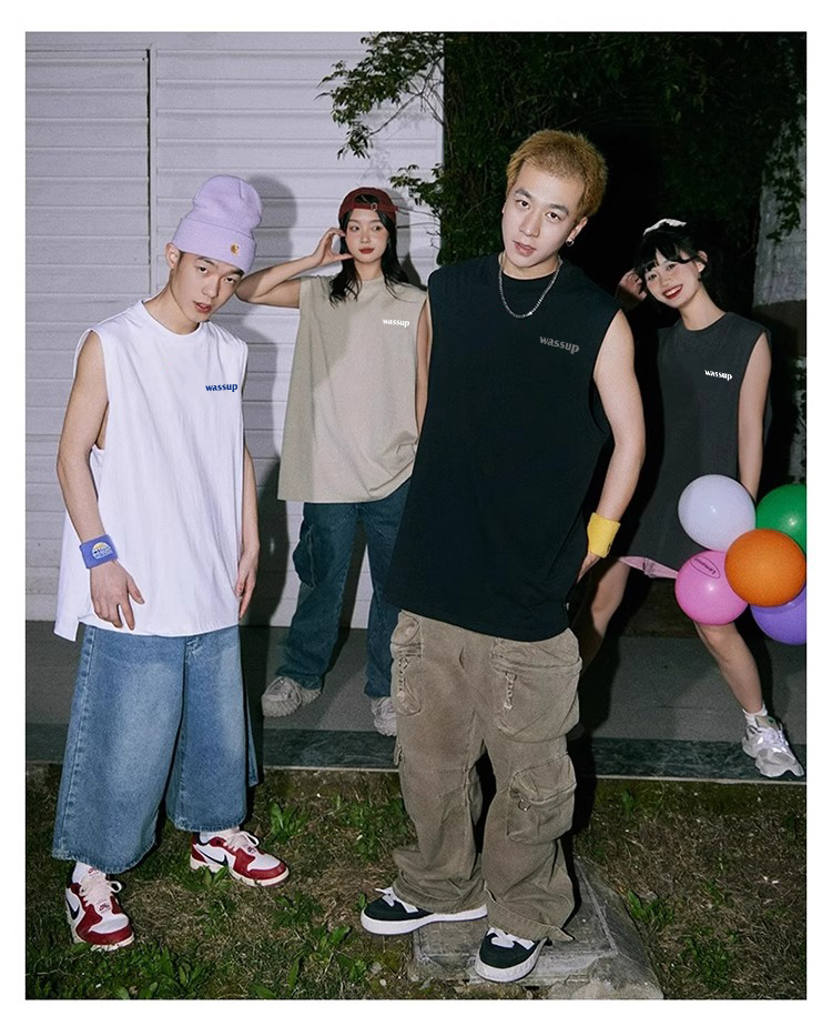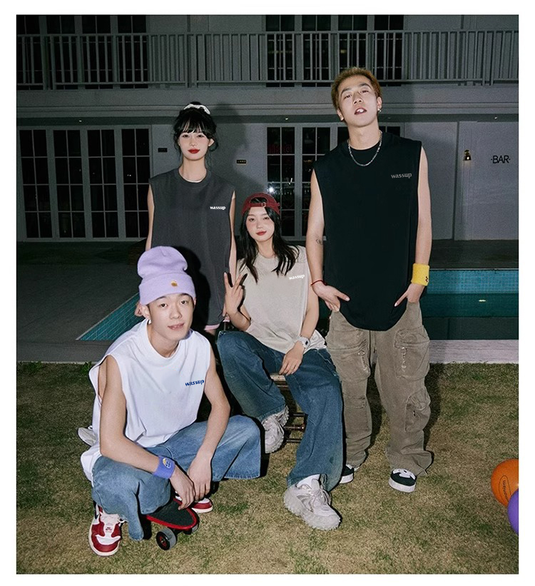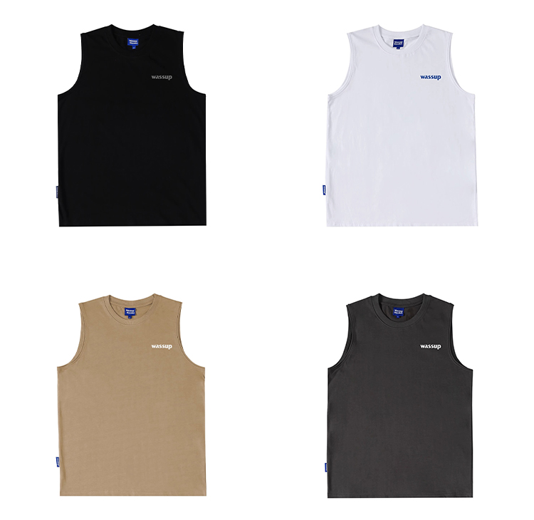 WASSUP小字母純棉坎肩背心男女夏季潮牌運動健身情侶無袖T恤