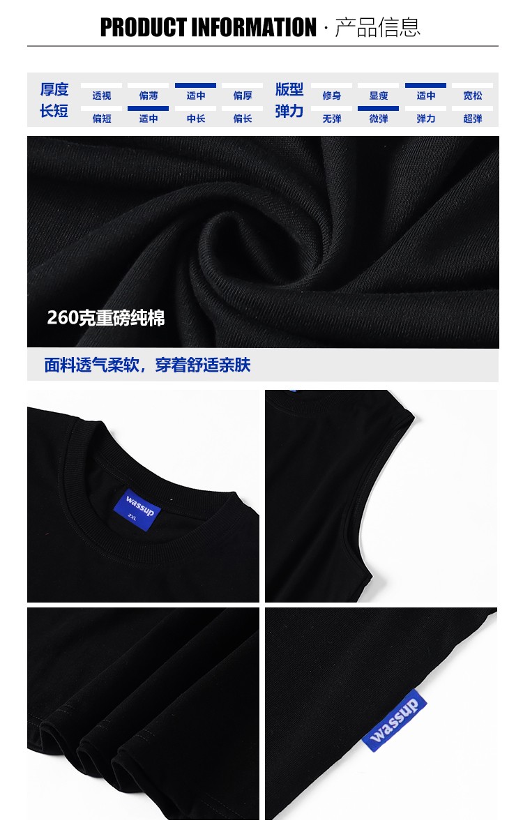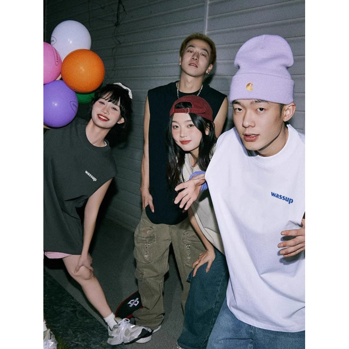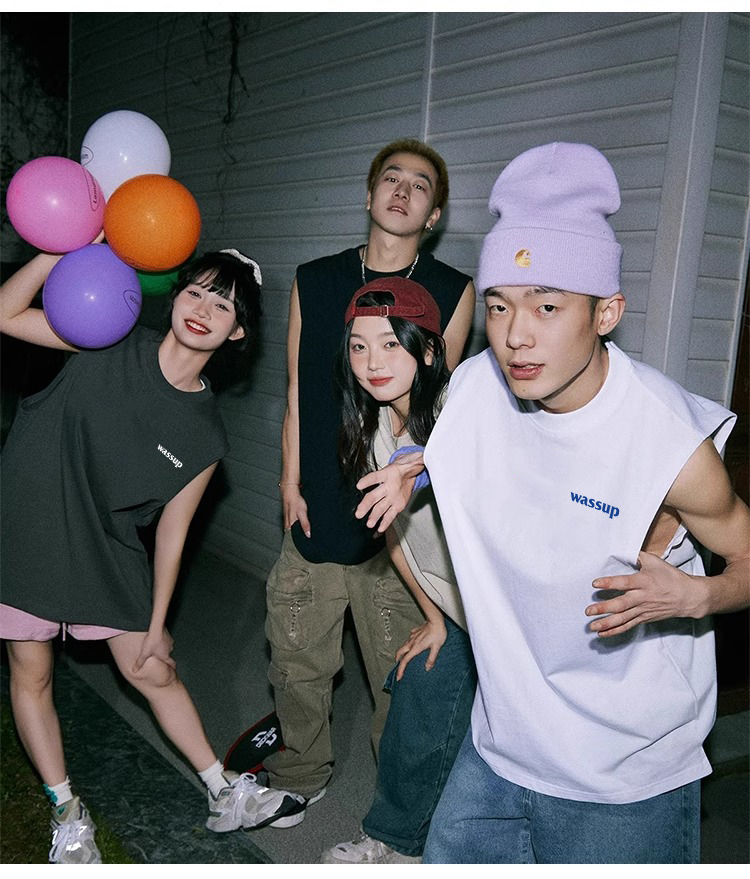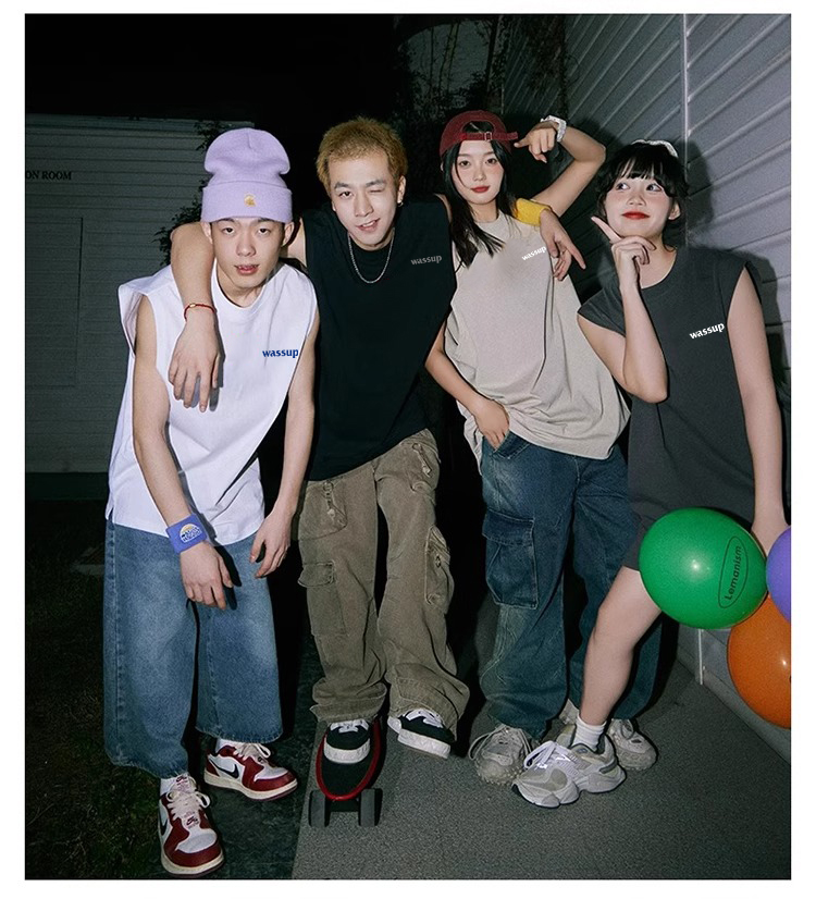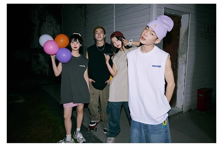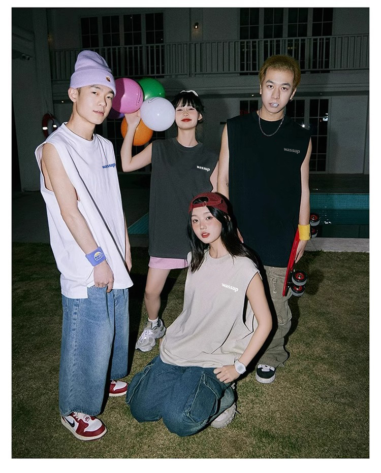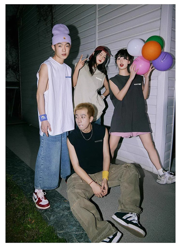 WASSUP小字母純棉坎肩背心男女夏季潮牌運動健身情侶無袖T恤