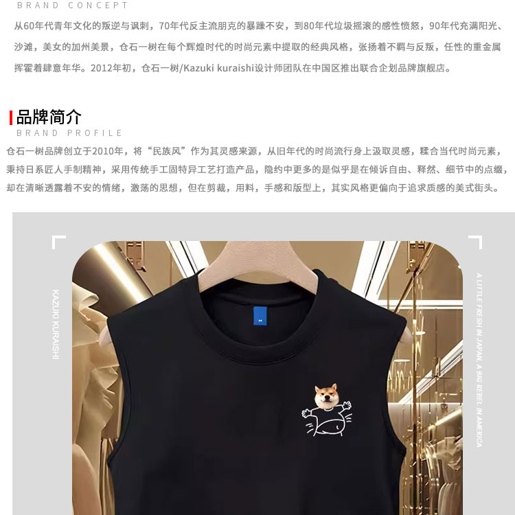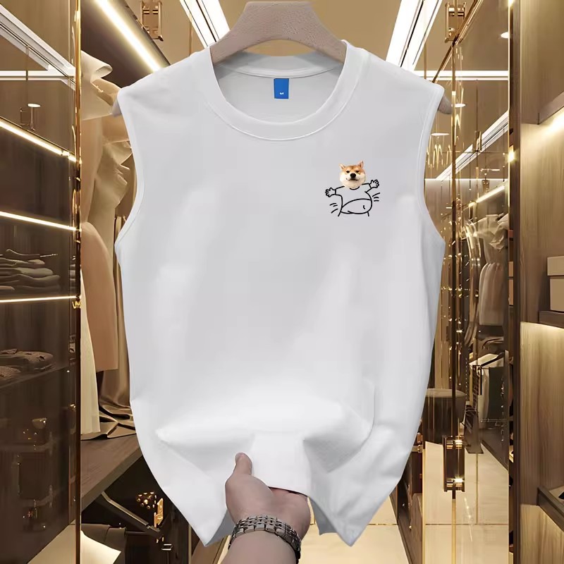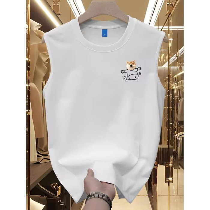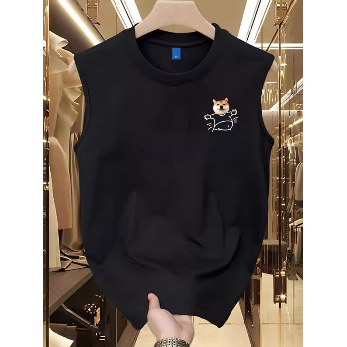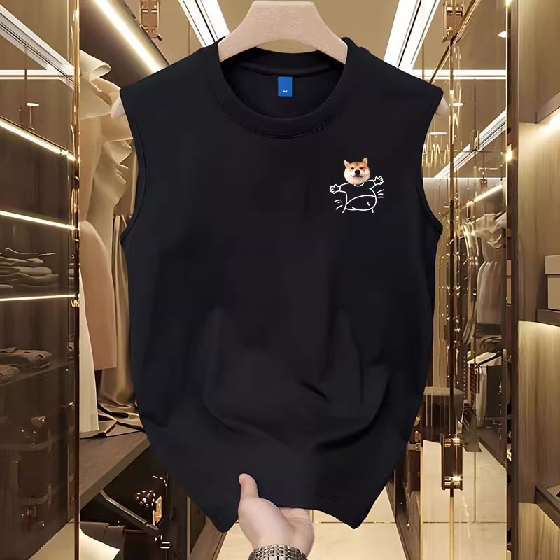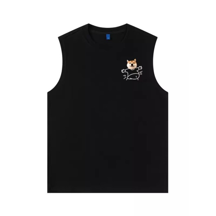 倉石一樹潮牌小柴犬印花休閒背心男士夏季款寬松純棉健身無袖T恤