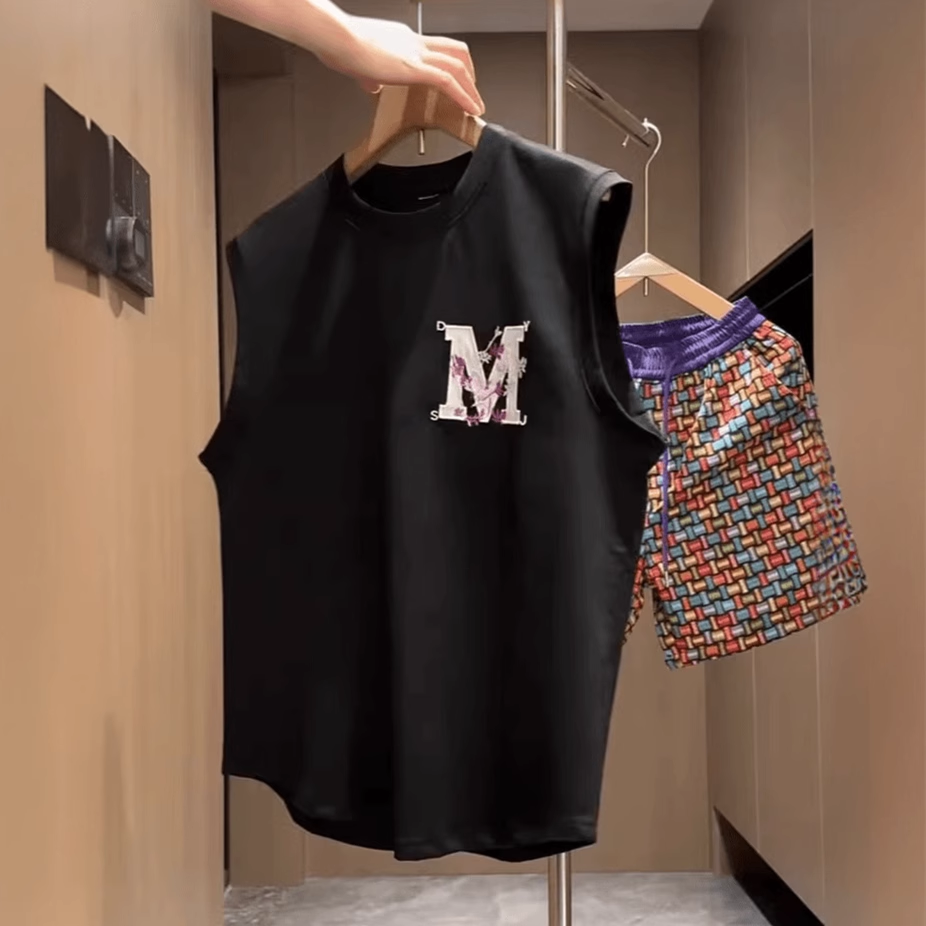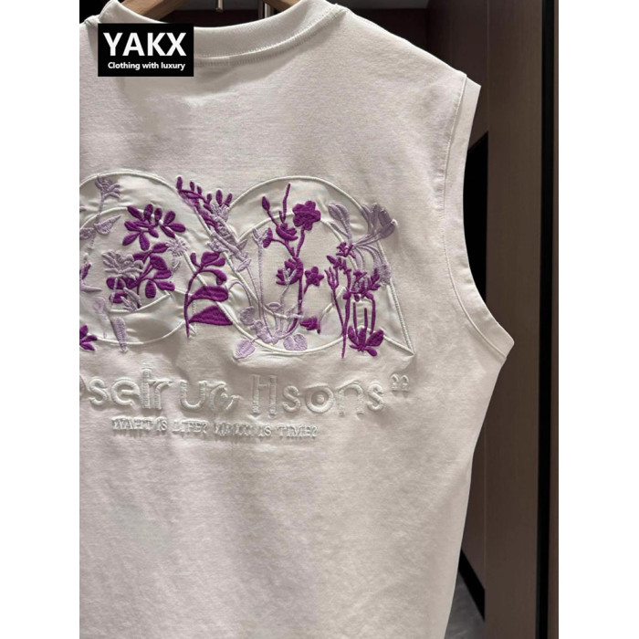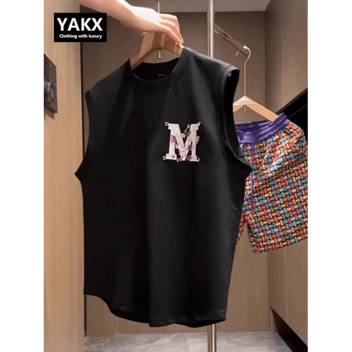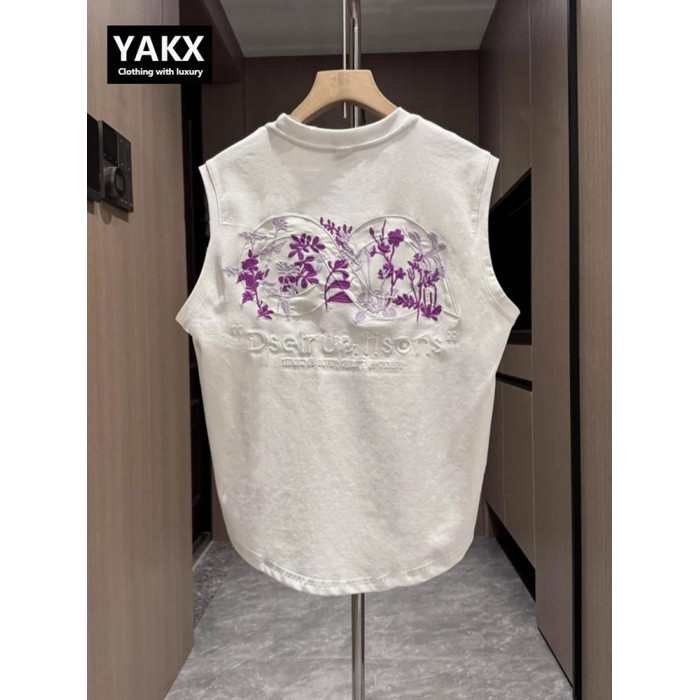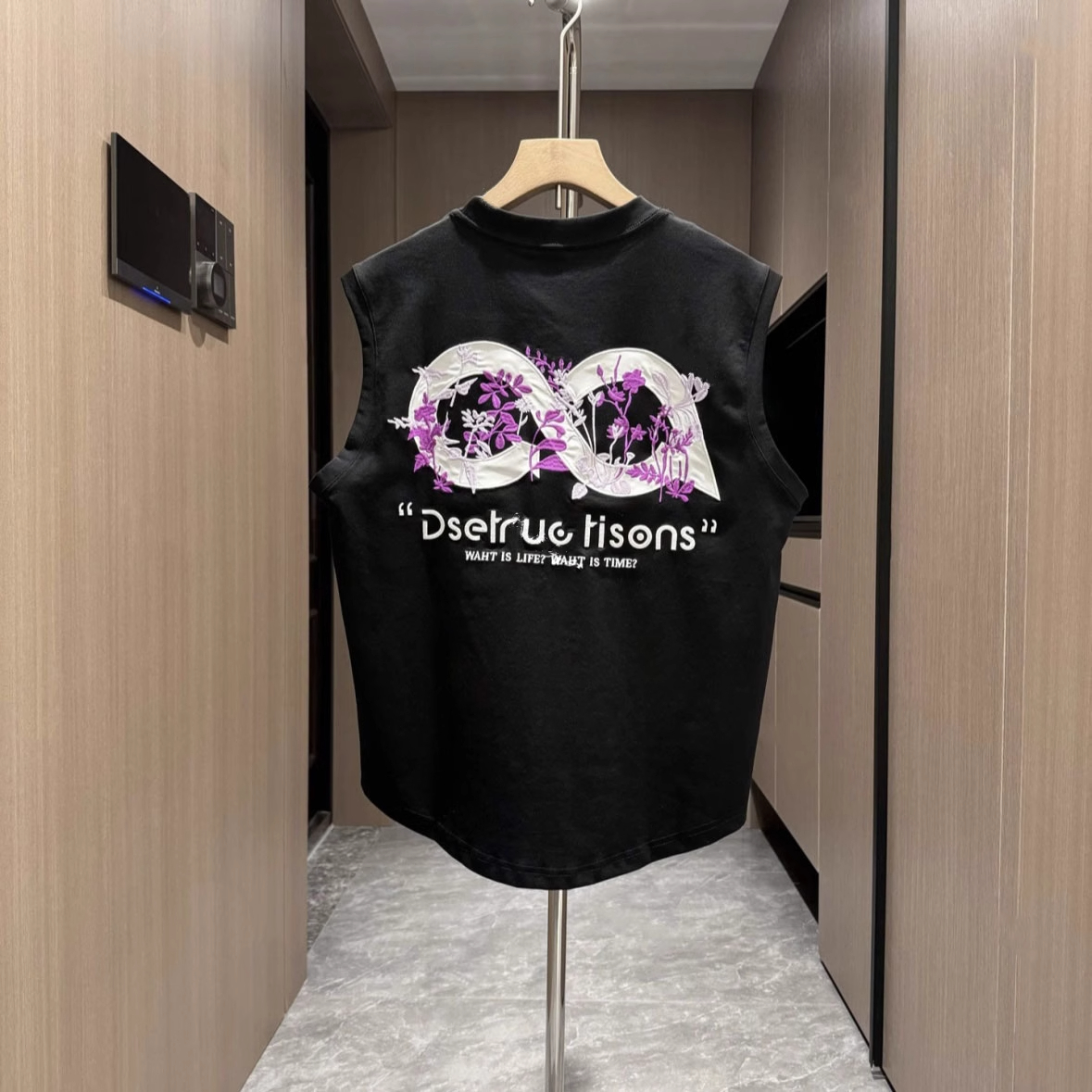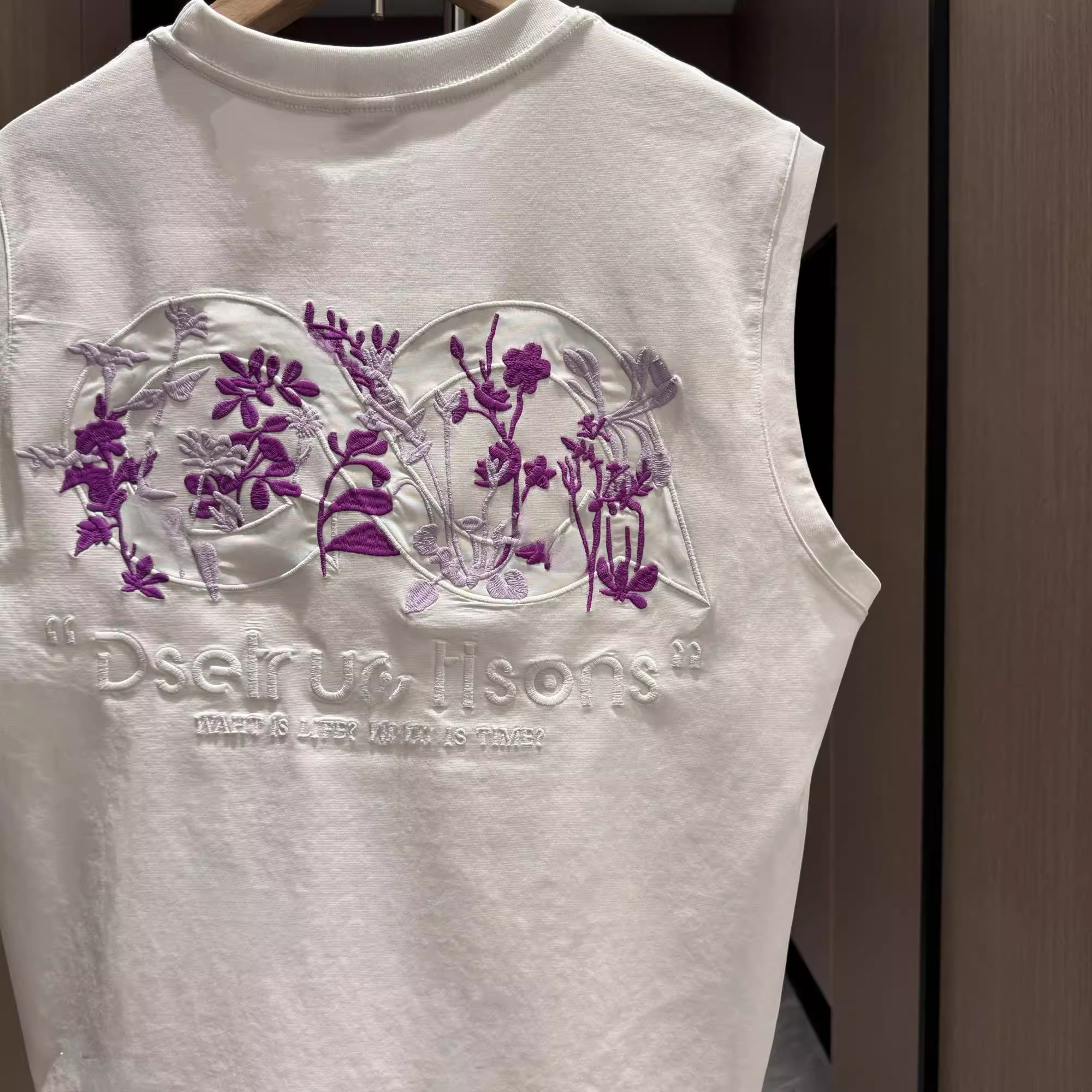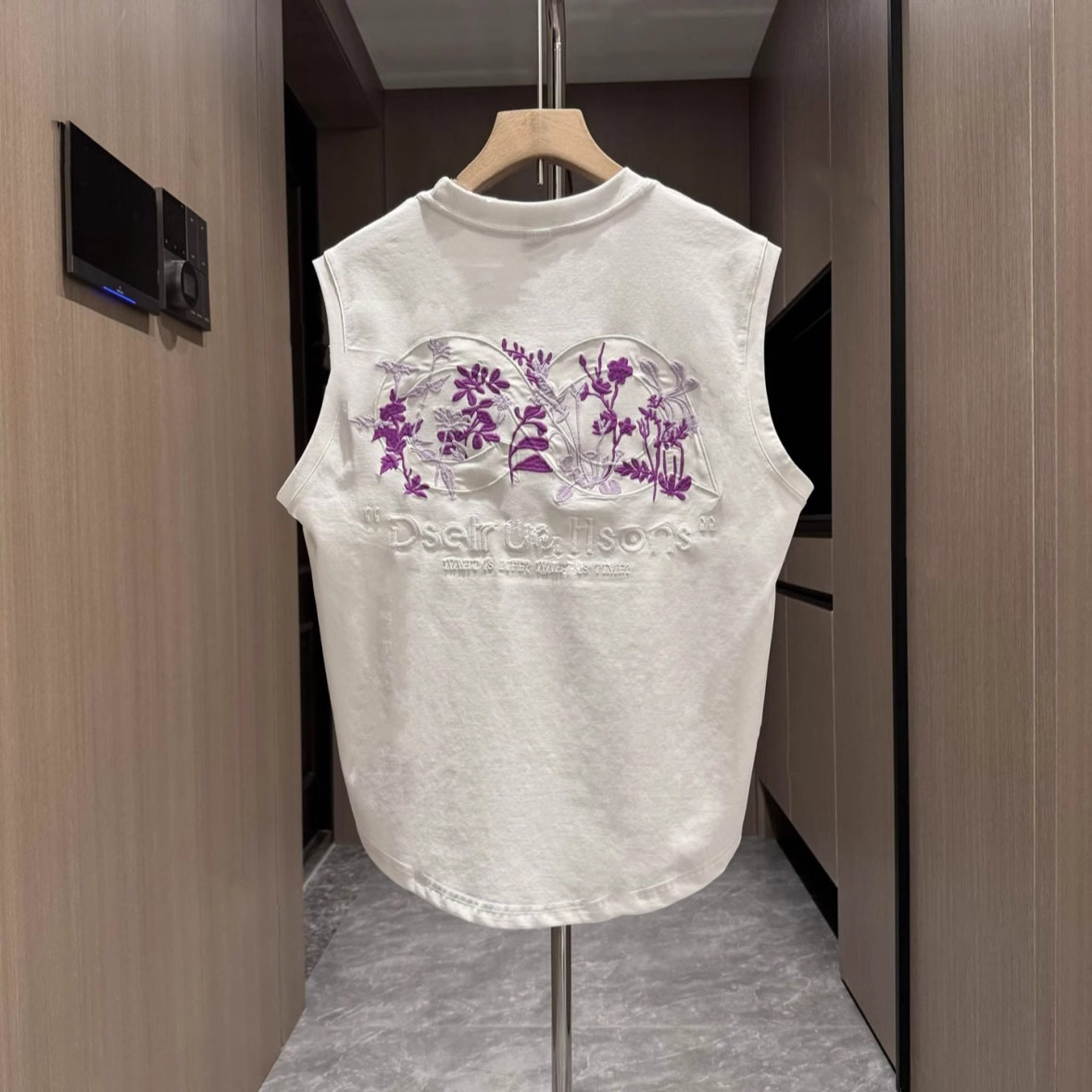 高級彩繪花卉刺綉背心男士夏季2025新款潮牌寬松坎肩無袖T恤男款