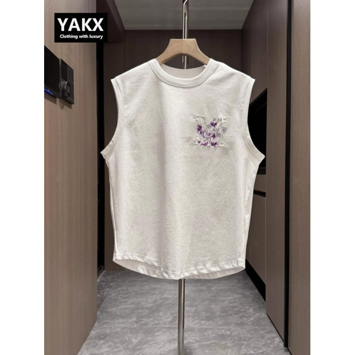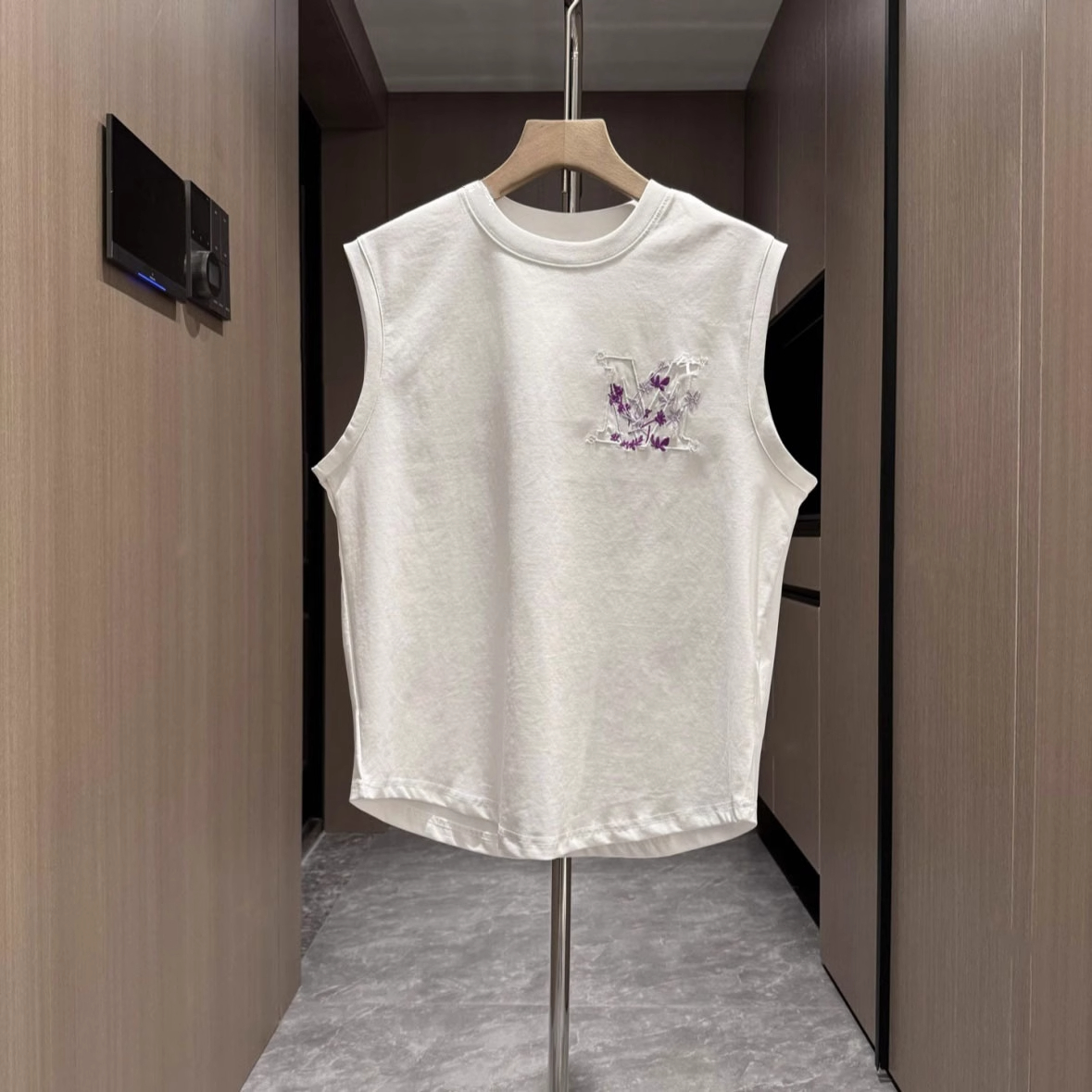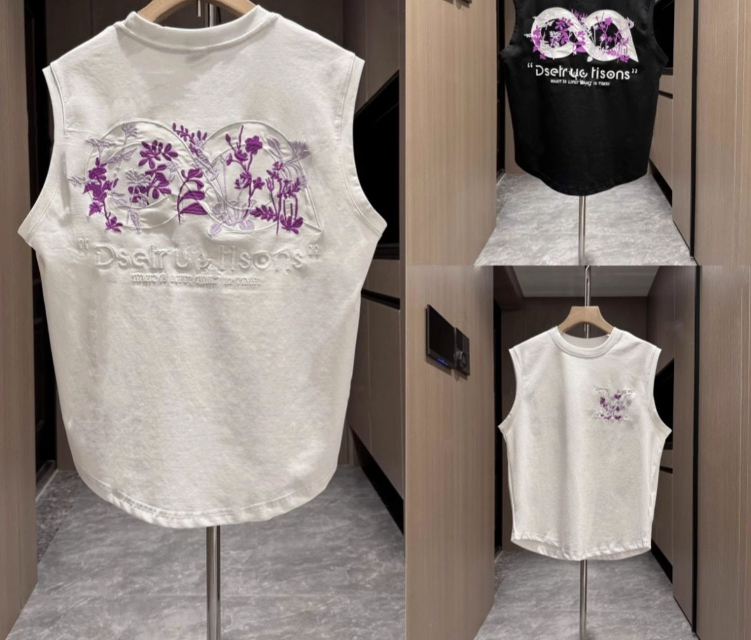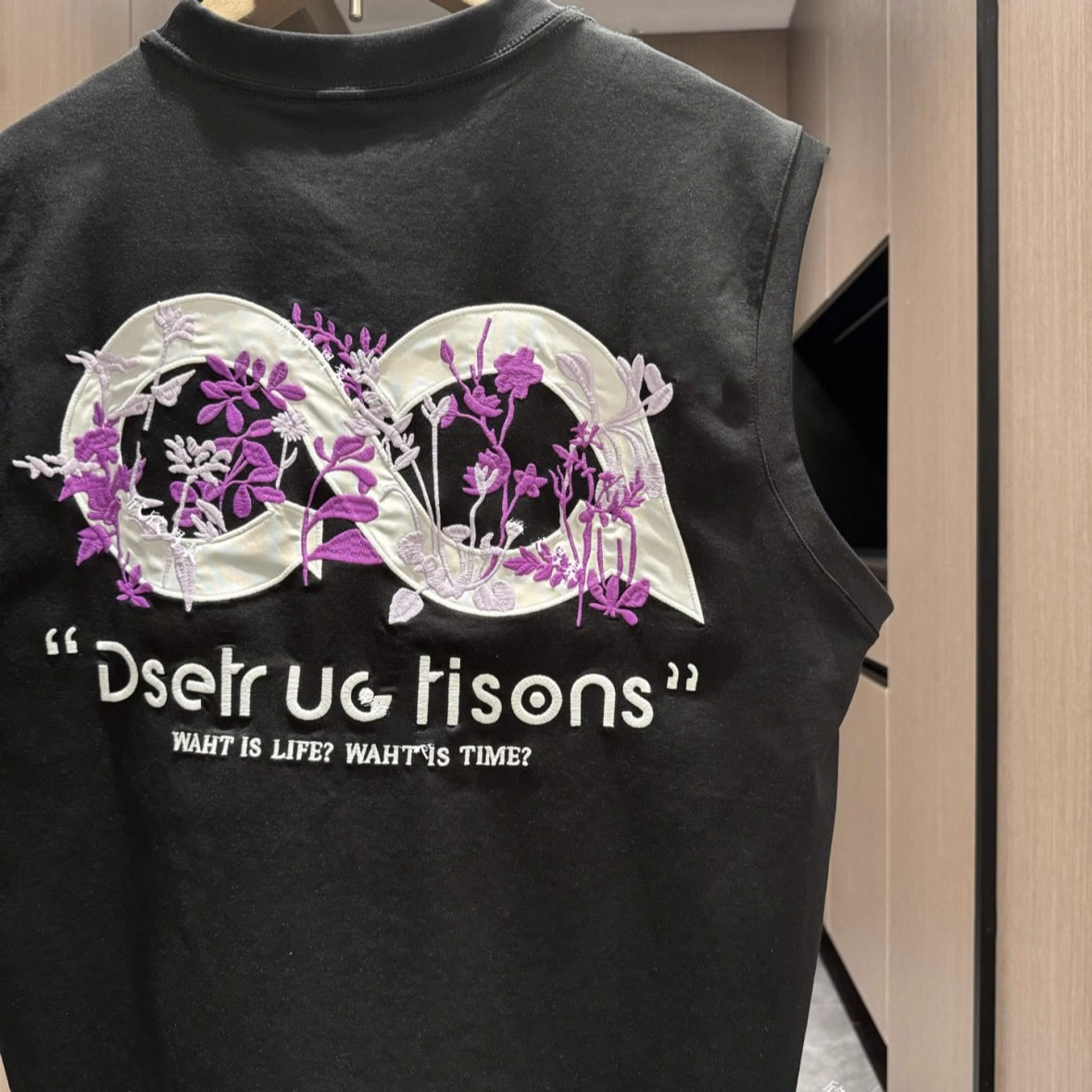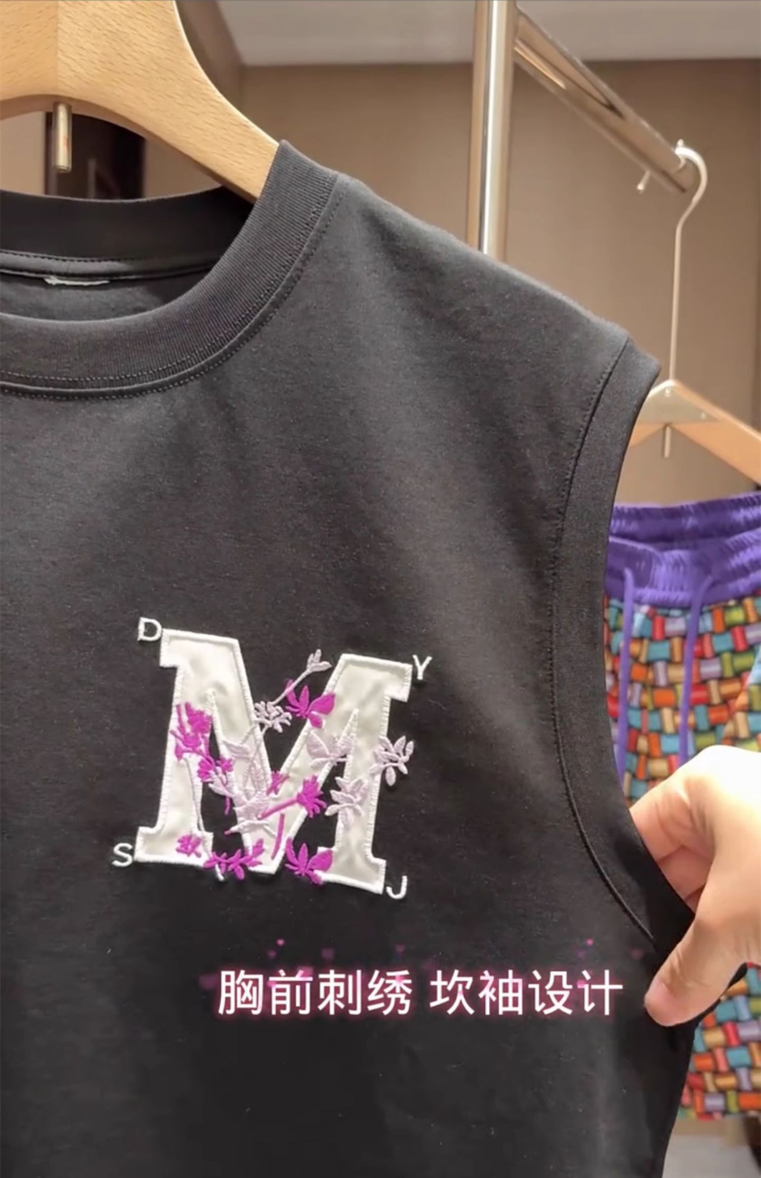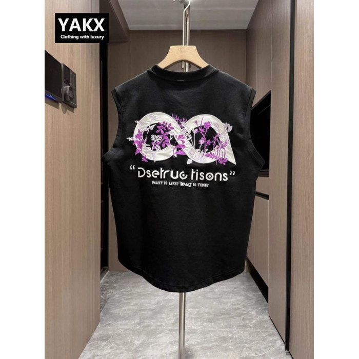 高級彩繪花卉刺綉背心男士夏季2025新款潮牌寬松坎肩無袖T恤男款