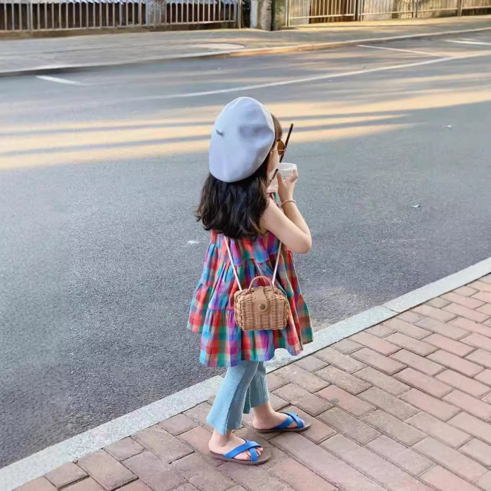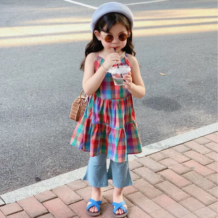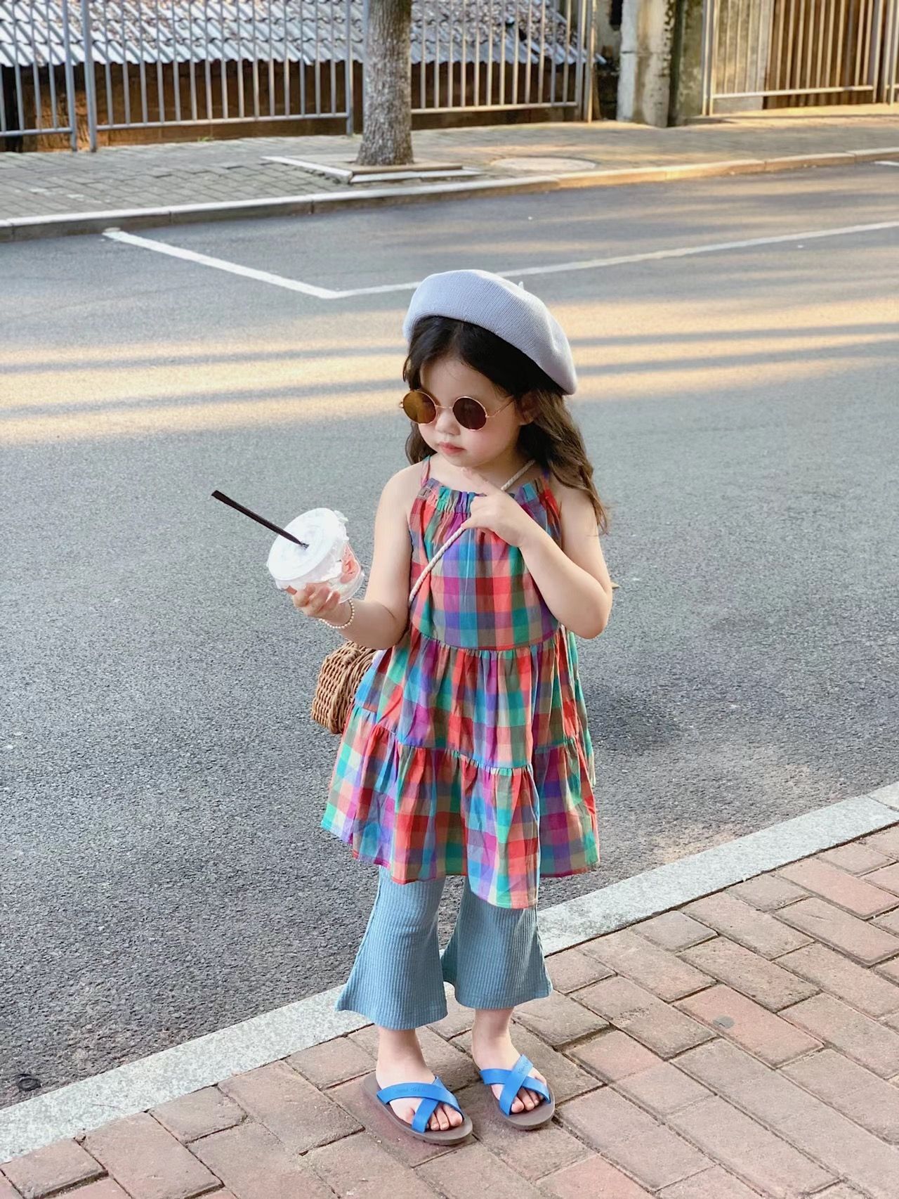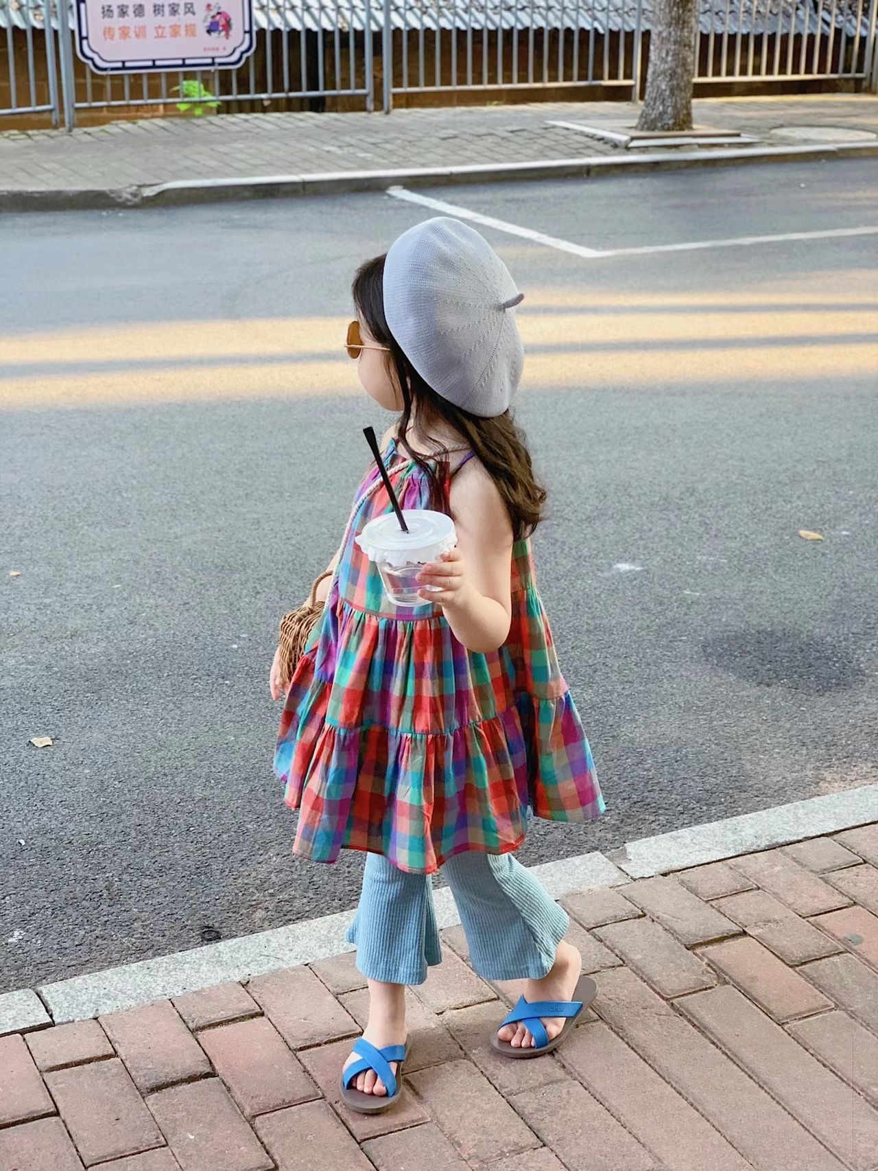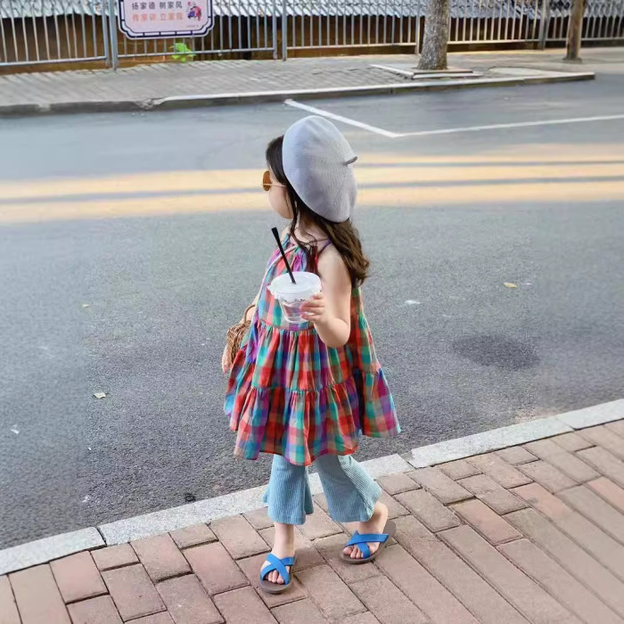 兒童沙灘裙2025夏款韓版女童格子吊帶裙彩色格子背心裙子洋氣