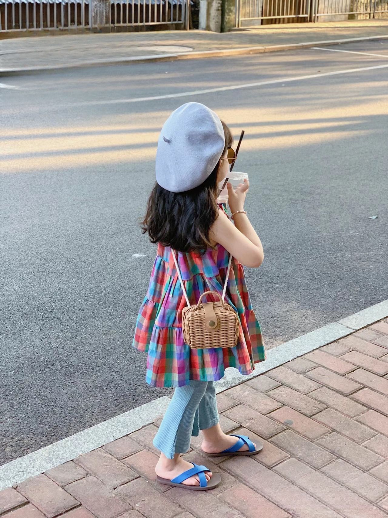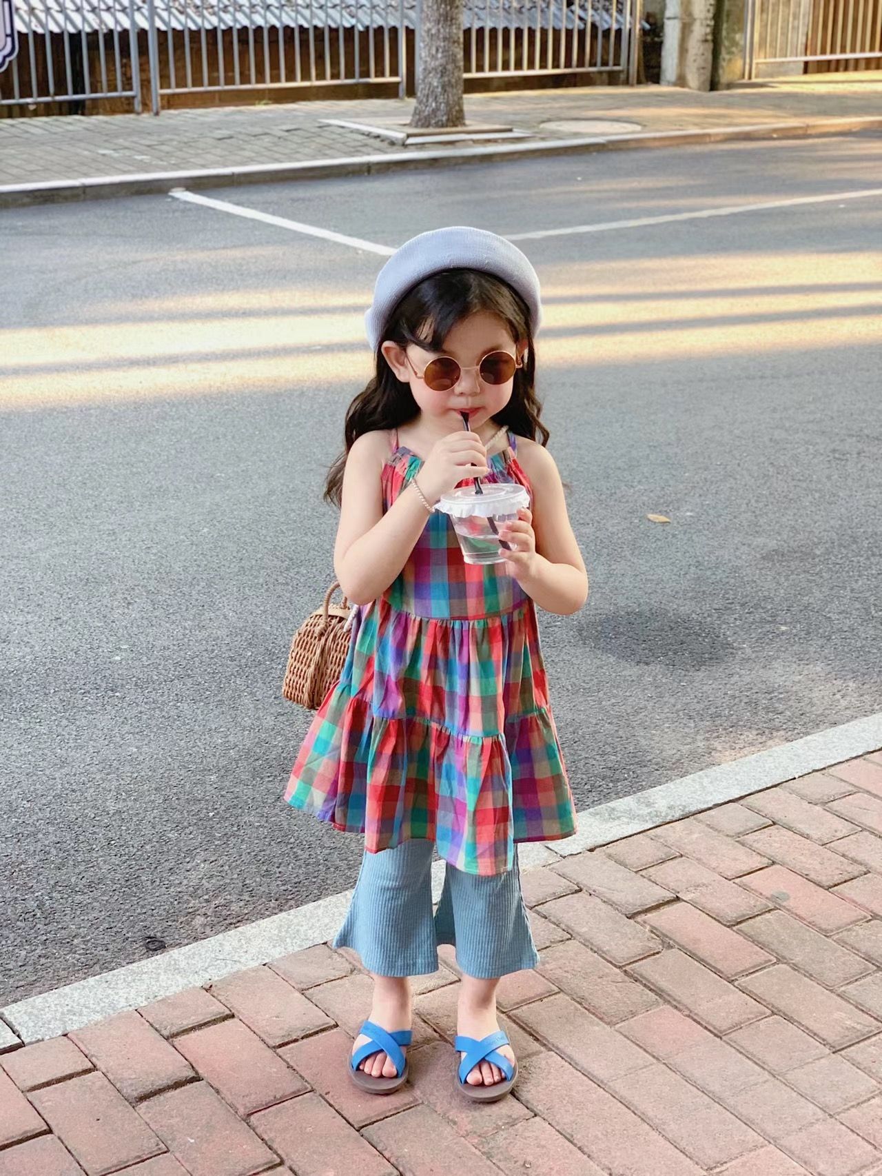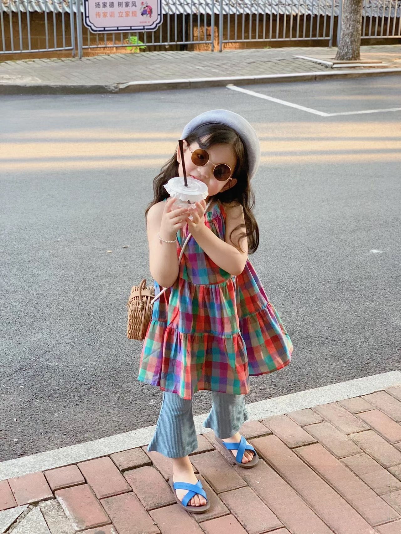 兒童沙灘裙2025夏款韓版女童格子吊帶裙彩色格子背心裙子洋氣
