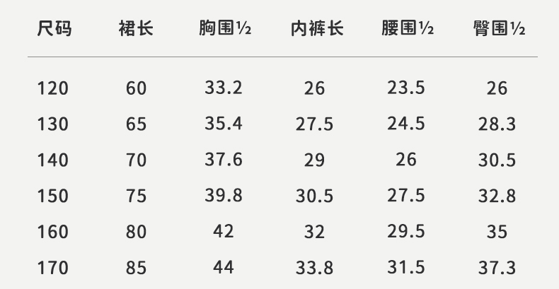 尺碼 | 120-170 |