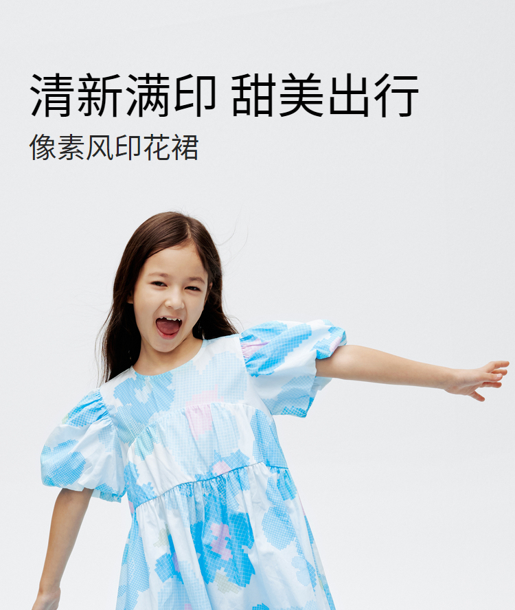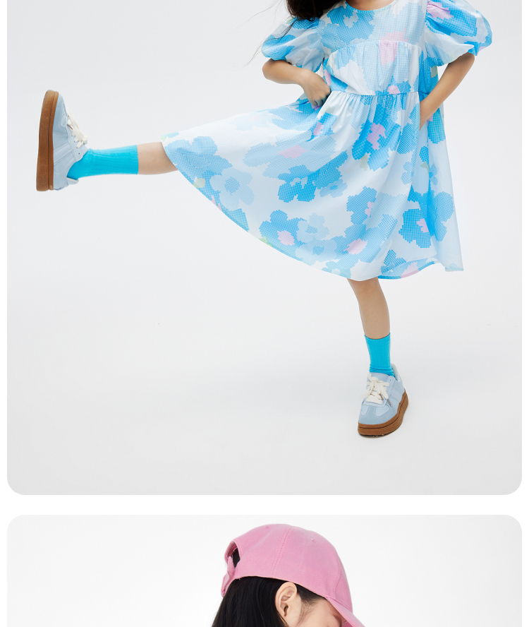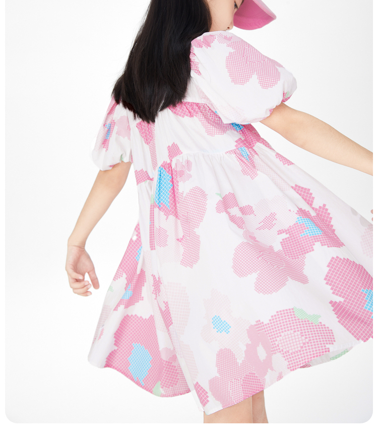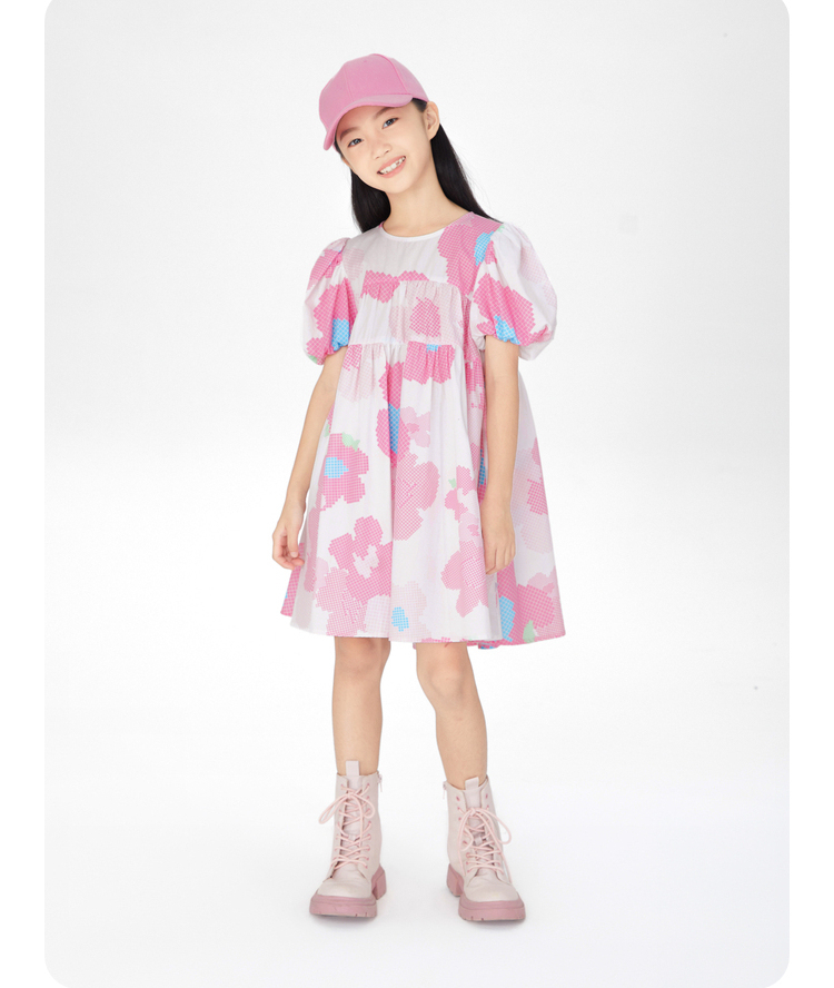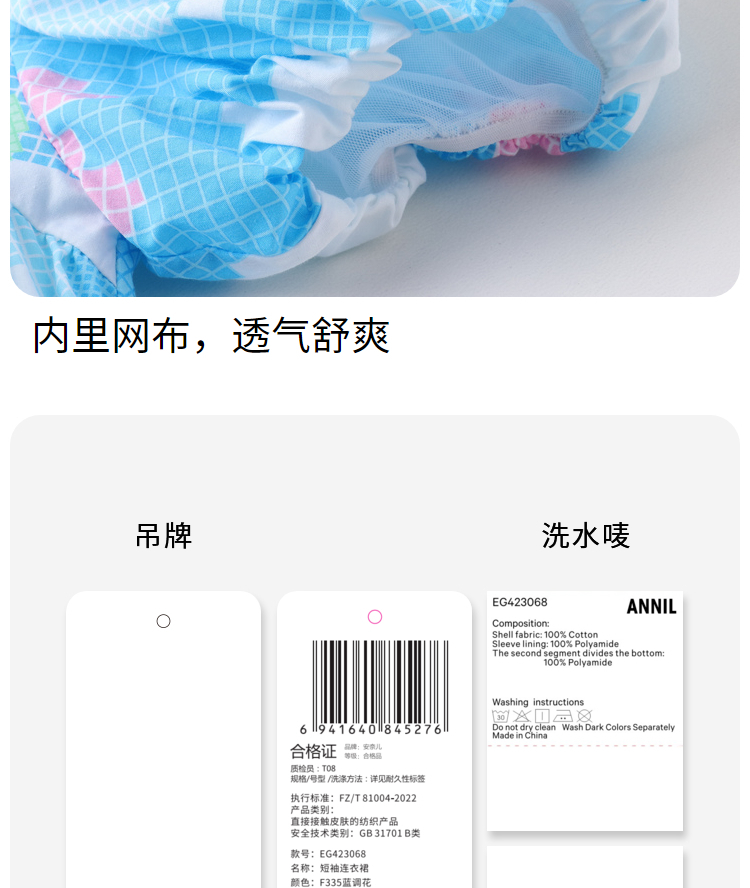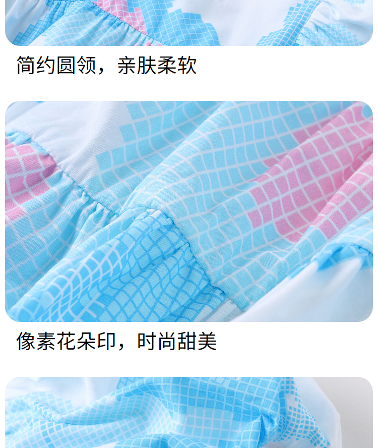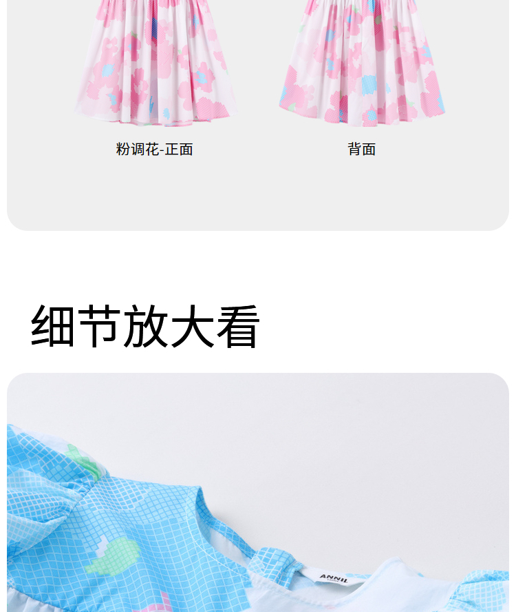 安奈兒童裝女童短袖連衣裙夏純棉彈力甜美A字裙子印花裙
