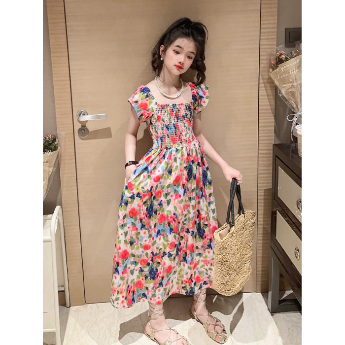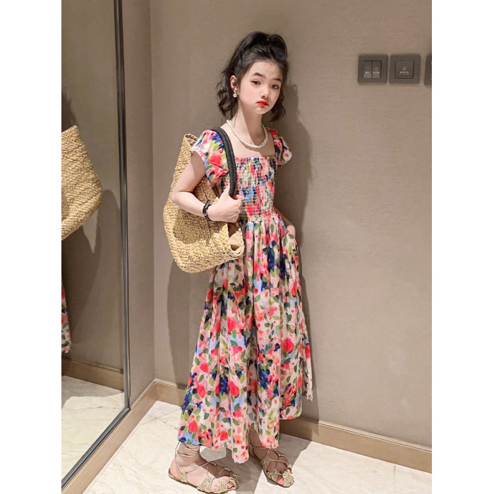 女童碎花連衣裙夏裝2025新款兒童夏季薄款修身公主裙大童女孩裙子