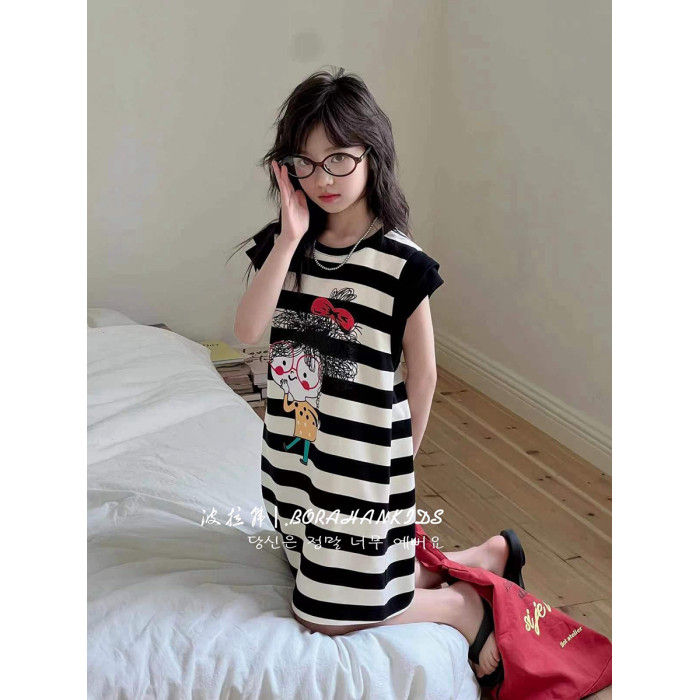 波拉韓童裝女童連衣裙2025夏小女孩T裙兒童背心裙中大童休閒裙子