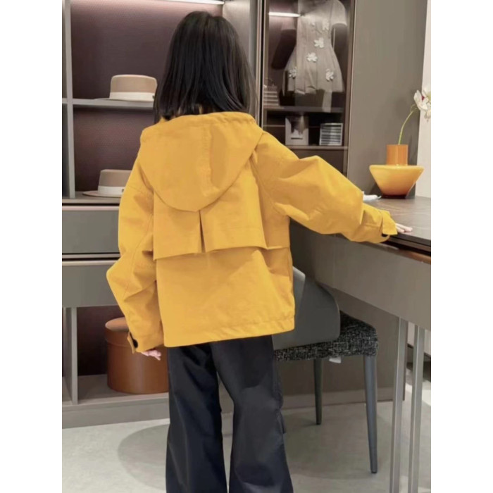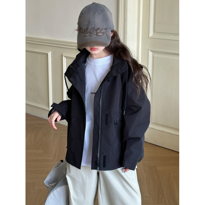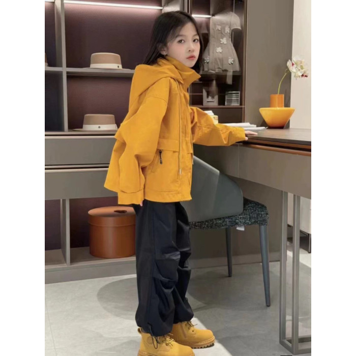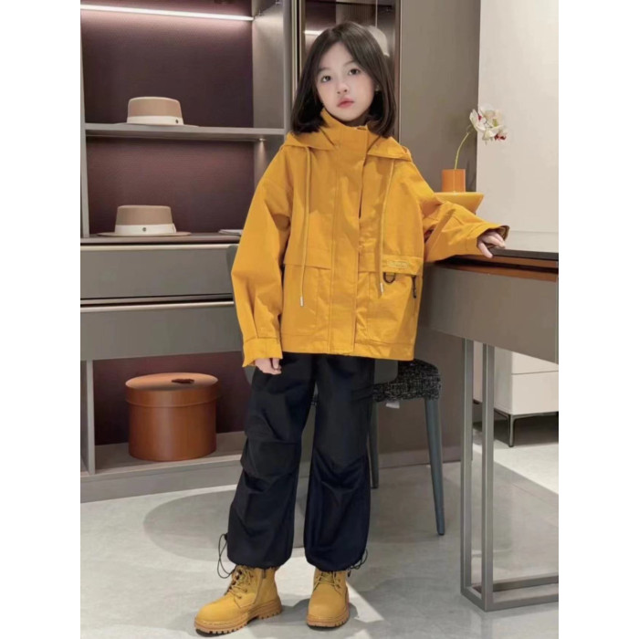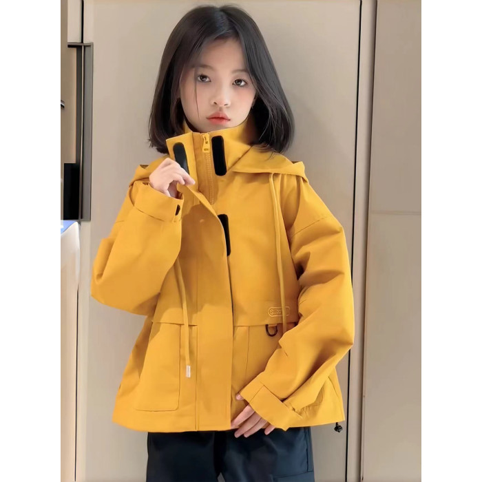 玫瑰劉亦菲抗風防水沖鋒衣加絨加厚外套女童高級感戶外黃色登山服