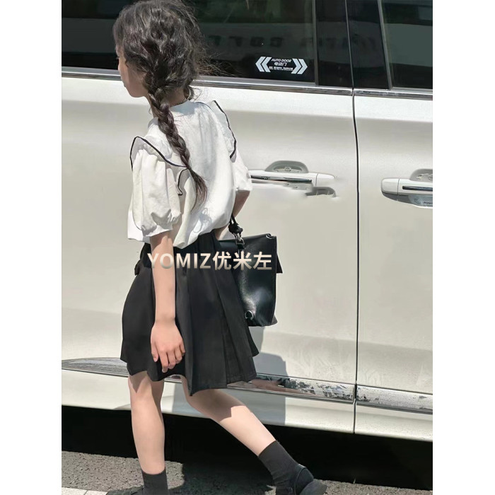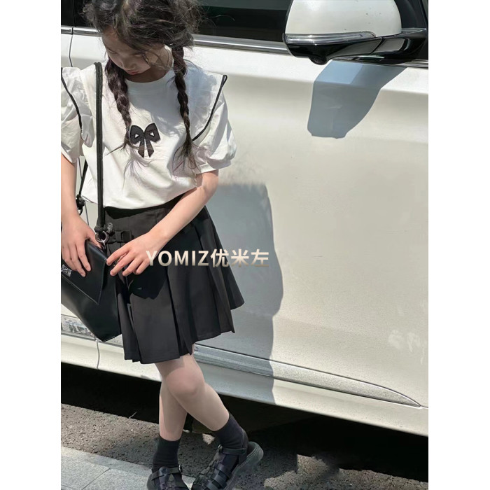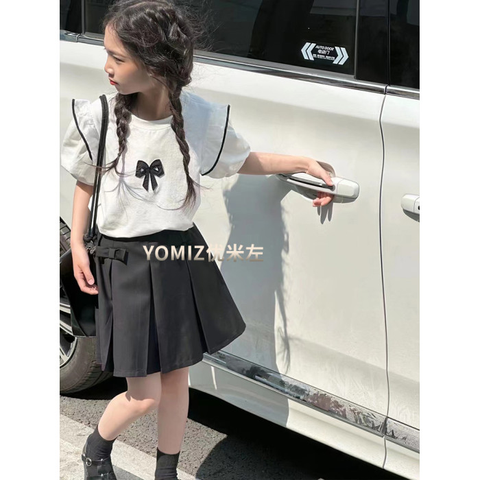 波拉bora韓國童裝氣質甜美女童短袖T恤2025春夏女孩飛袖上衣洋氣