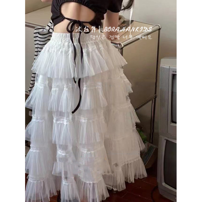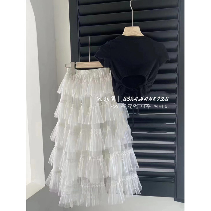 女童純色半身裙蛋糕裙2025夏款女孩超仙公主裙子蓬蓬裙兒童紗裙