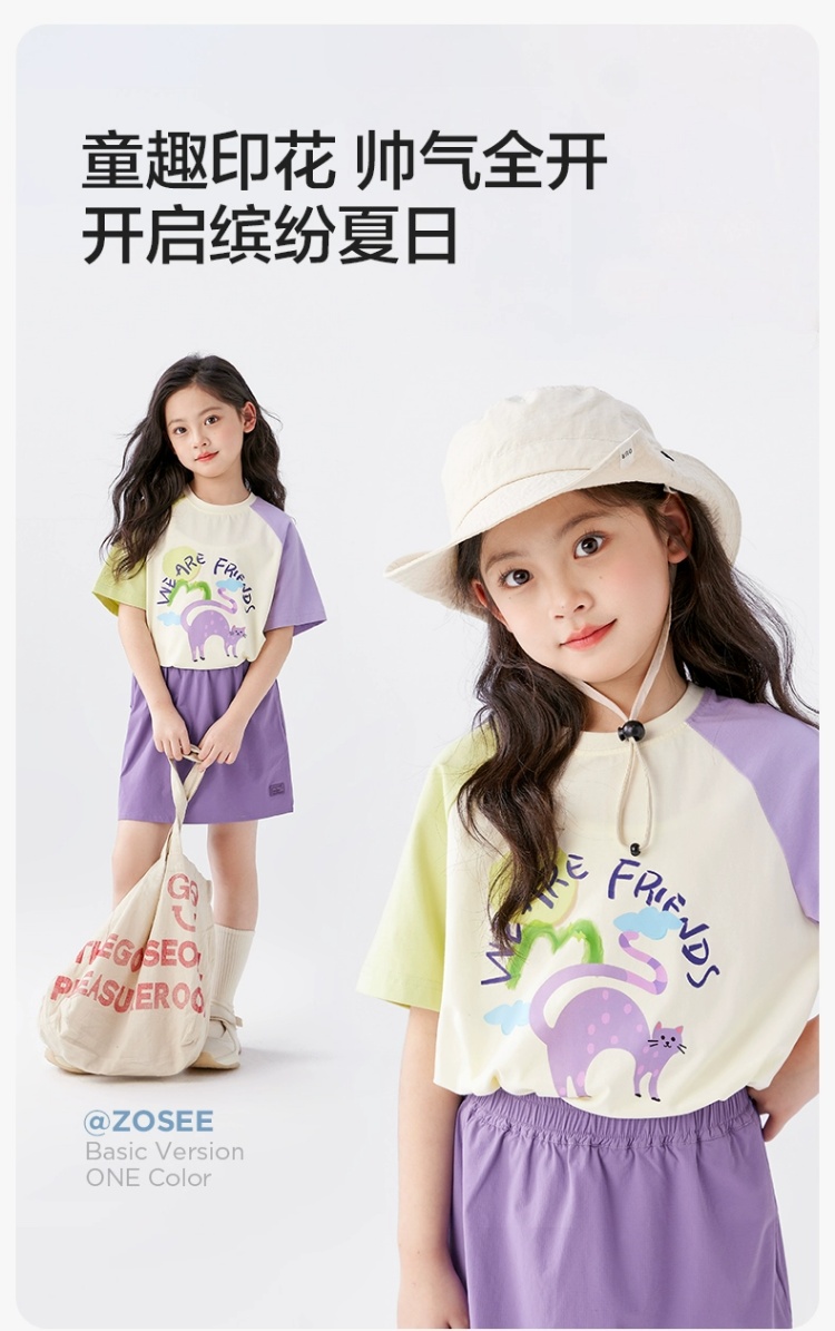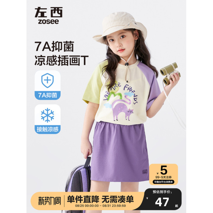 左西童裝女童T恤短袖夏季兒童夏裝套裝2025新款女孩大童半袖短裙