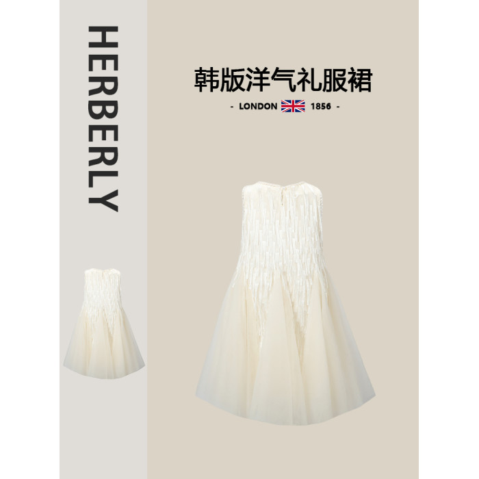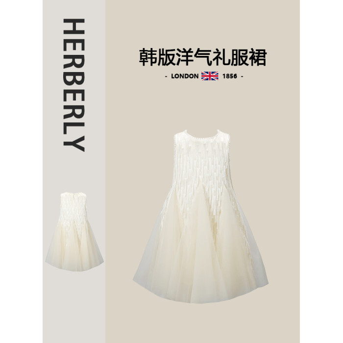 英國Herberly女童背心裙夏裝網紗連衣裙女孩高級感生日禮服公主裙