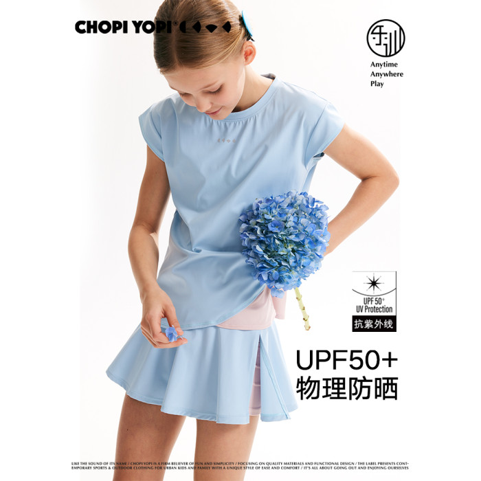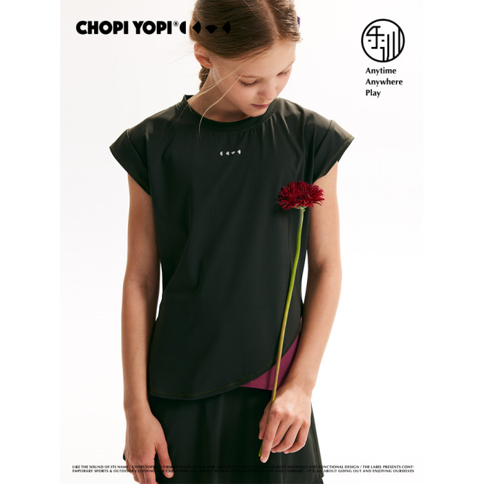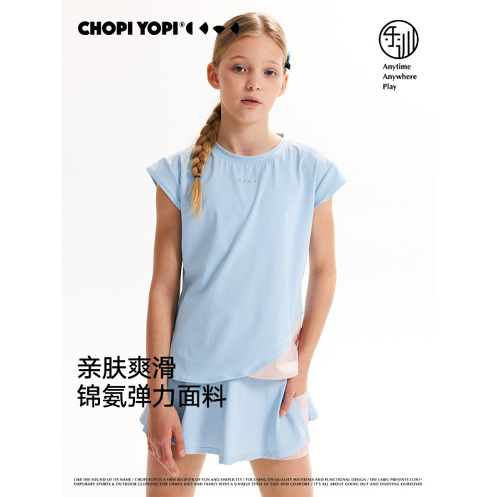 chopiyopi童裝 兒童撞色飛袖T恤25年夏季新款女童短袖訓練運動T恤