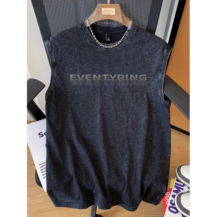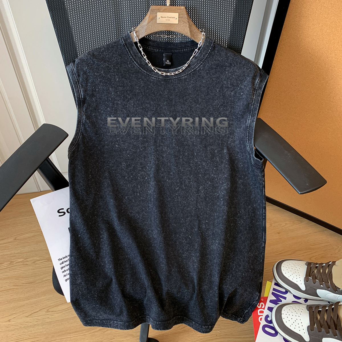JIAF男生水洗做舊無袖背心夏季寬松純棉T恤重磅潮牌復古百搭上衣