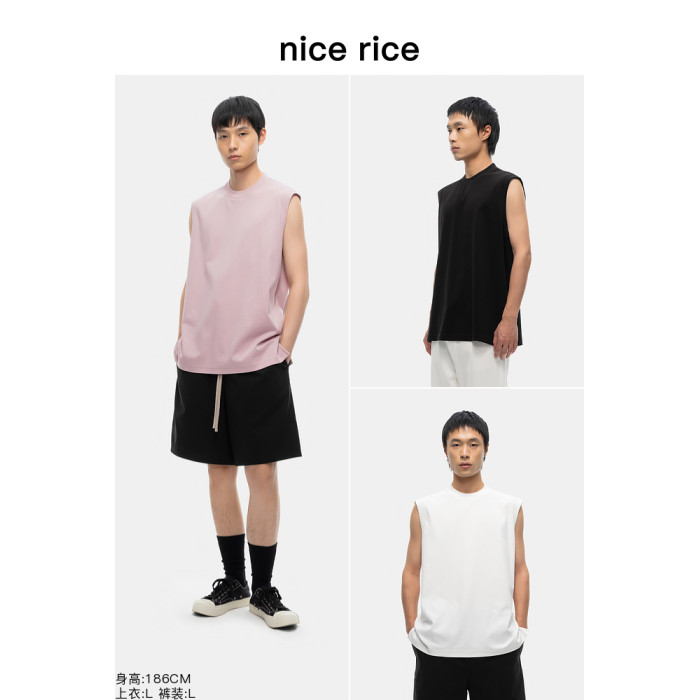 nice rice好飯 舒棉彈200G圓領寬肩下擺側開衩寬松背心NGX01045