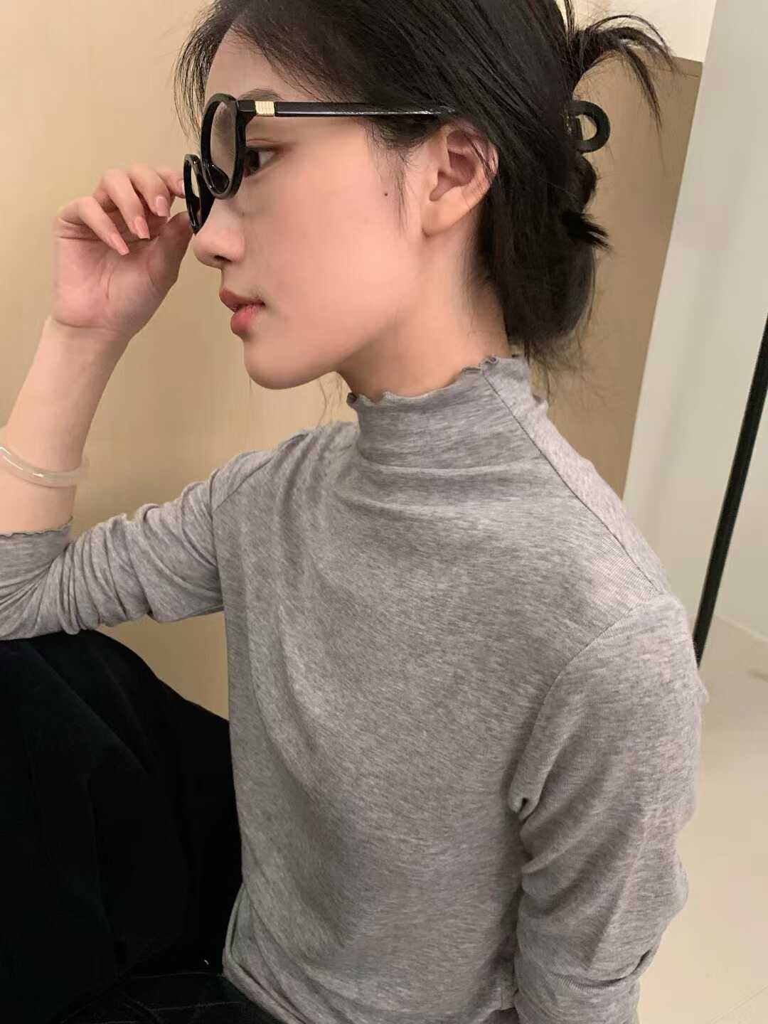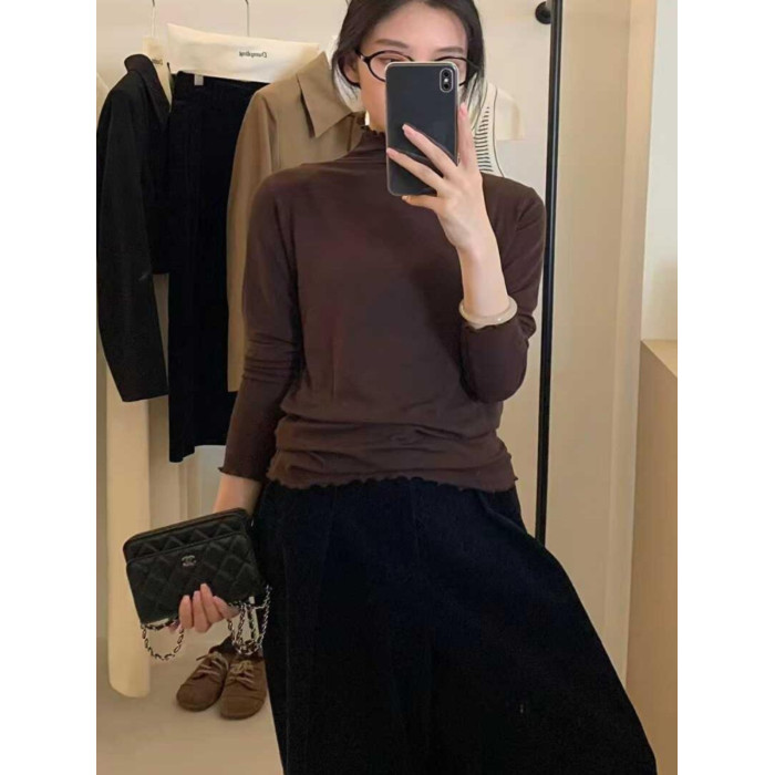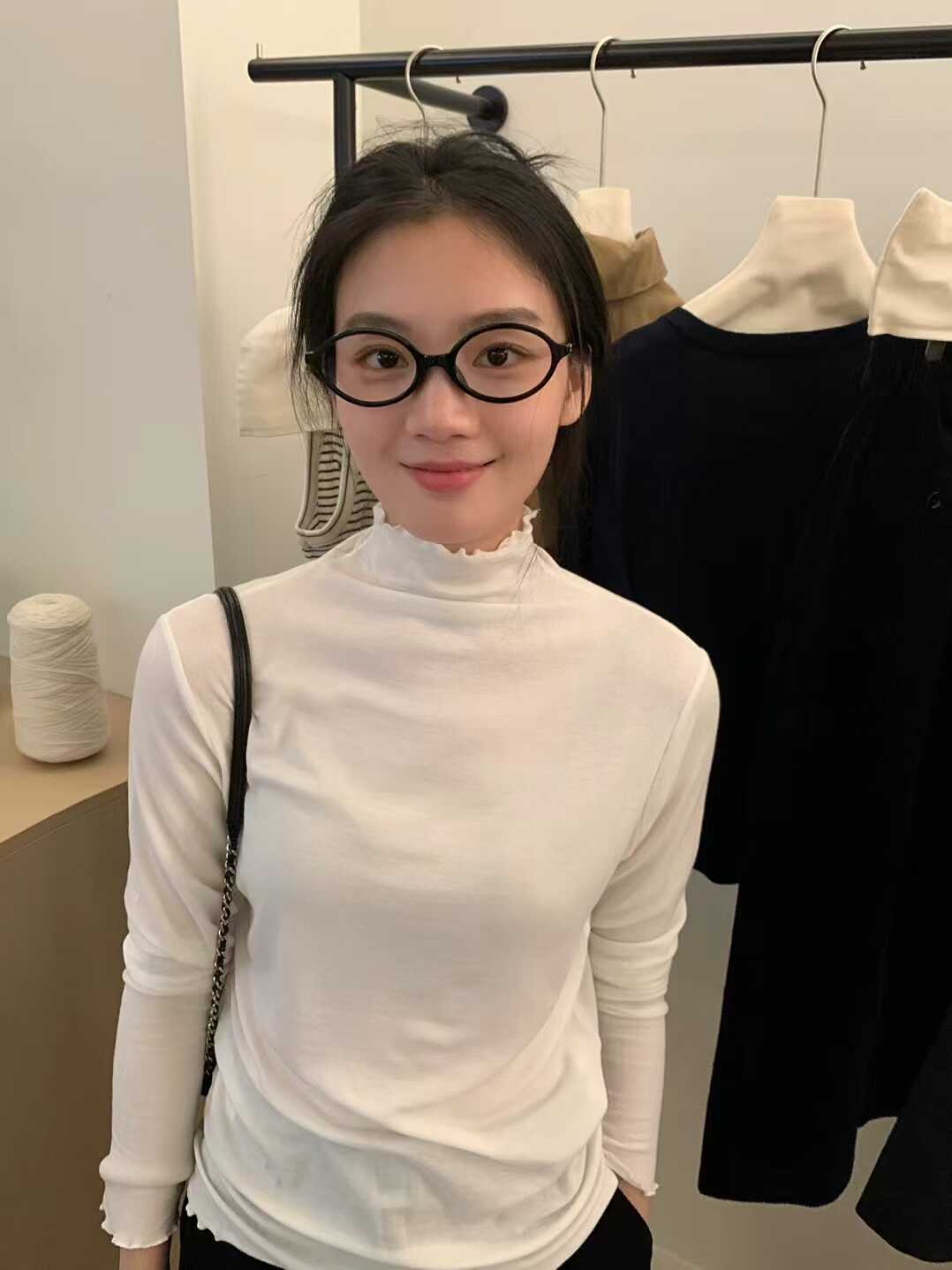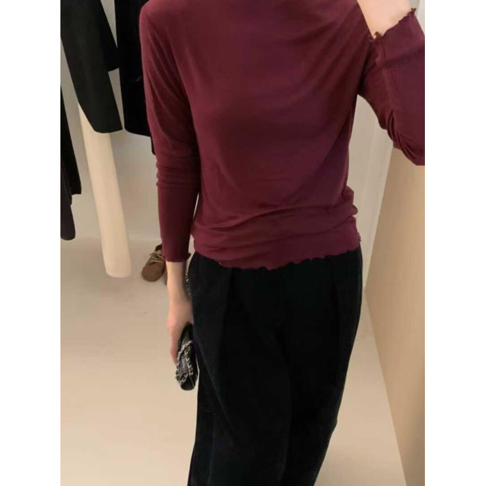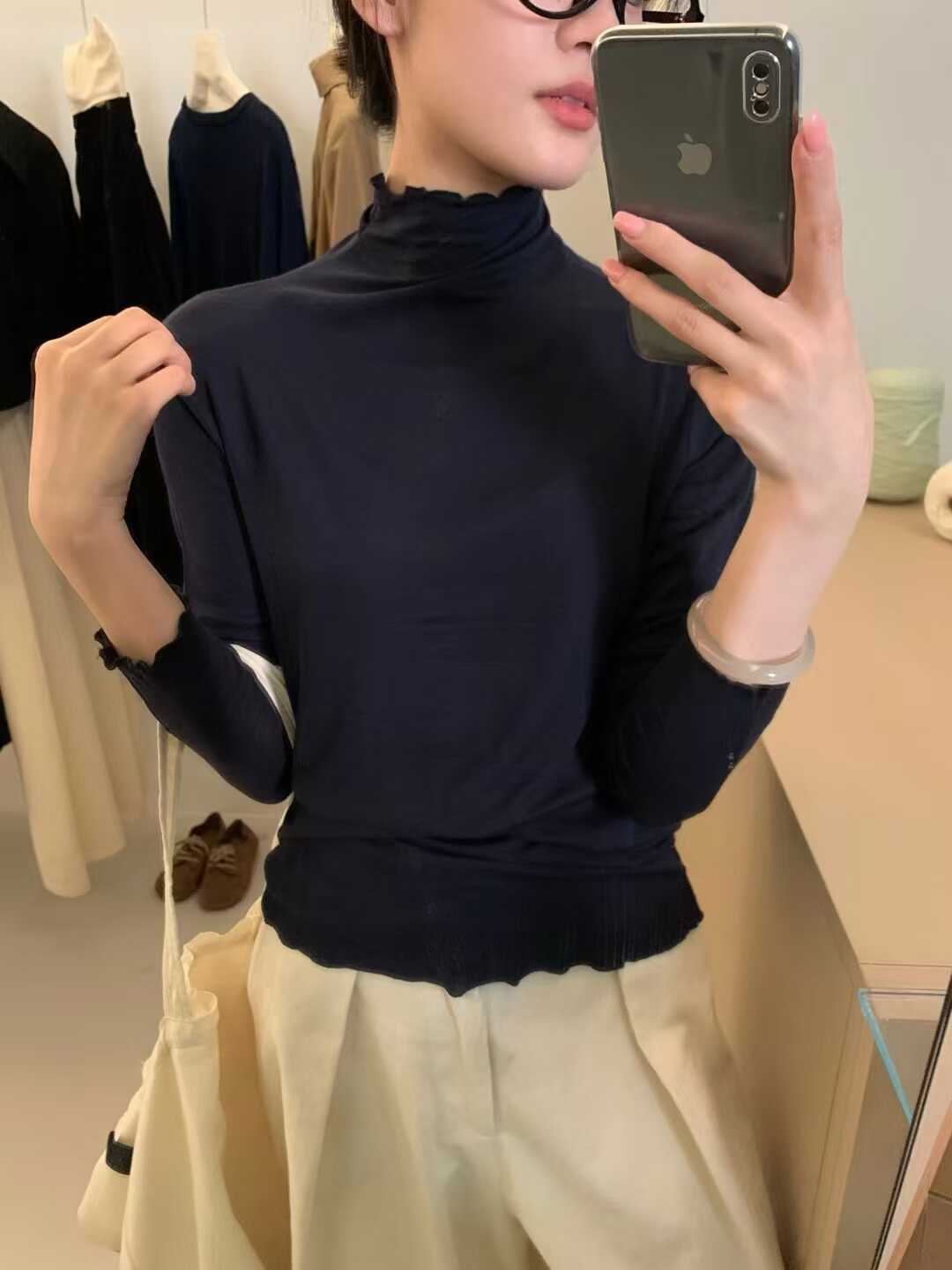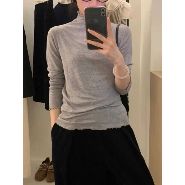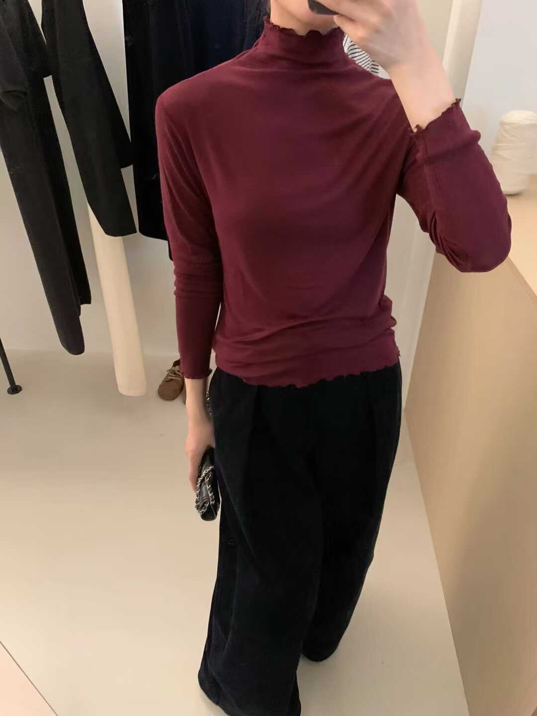 韓系木耳邊打底衫2025秋冬半高領薄款曡穿內搭天絲羊毛針織衫上衣