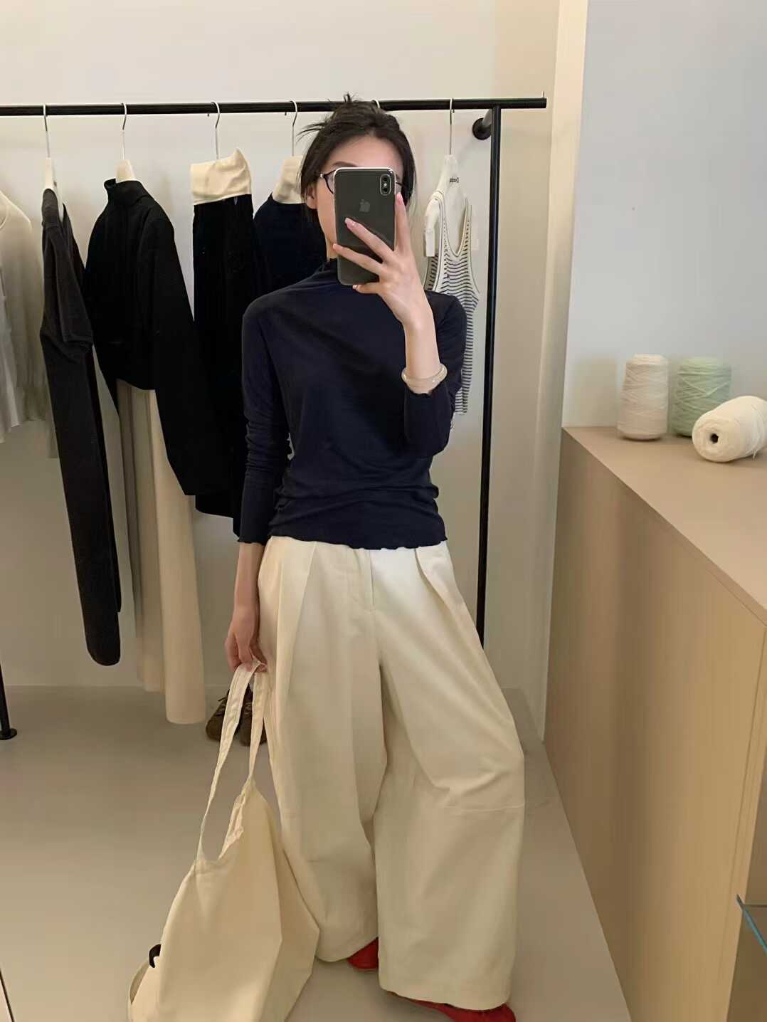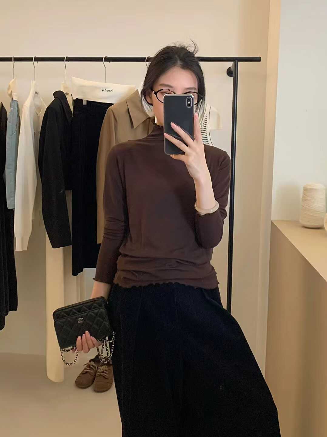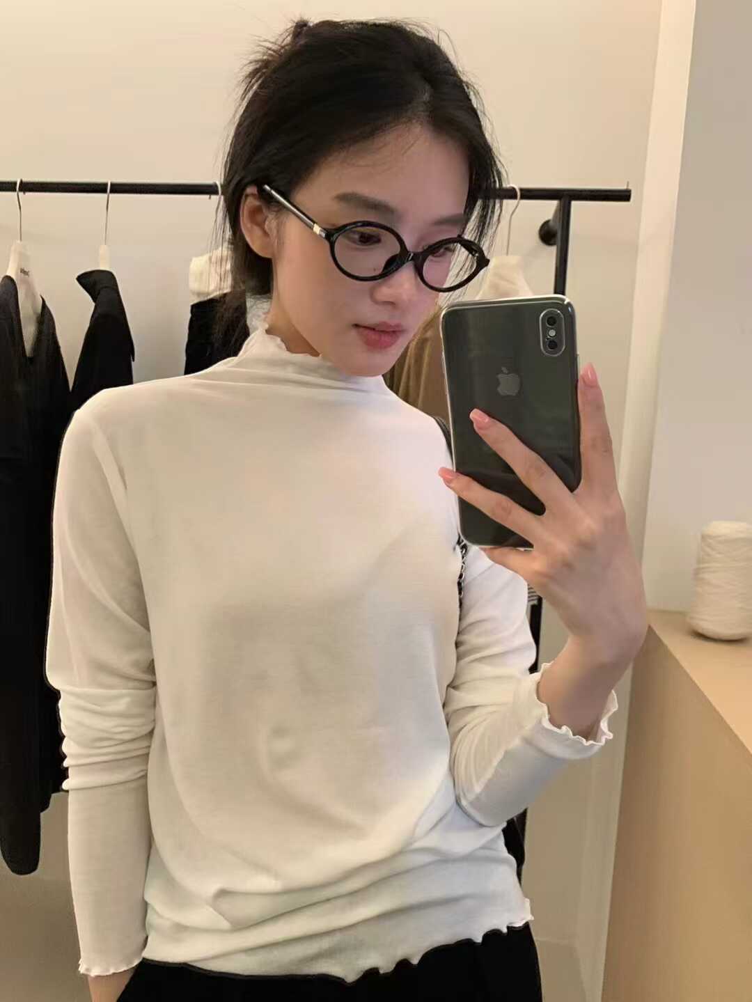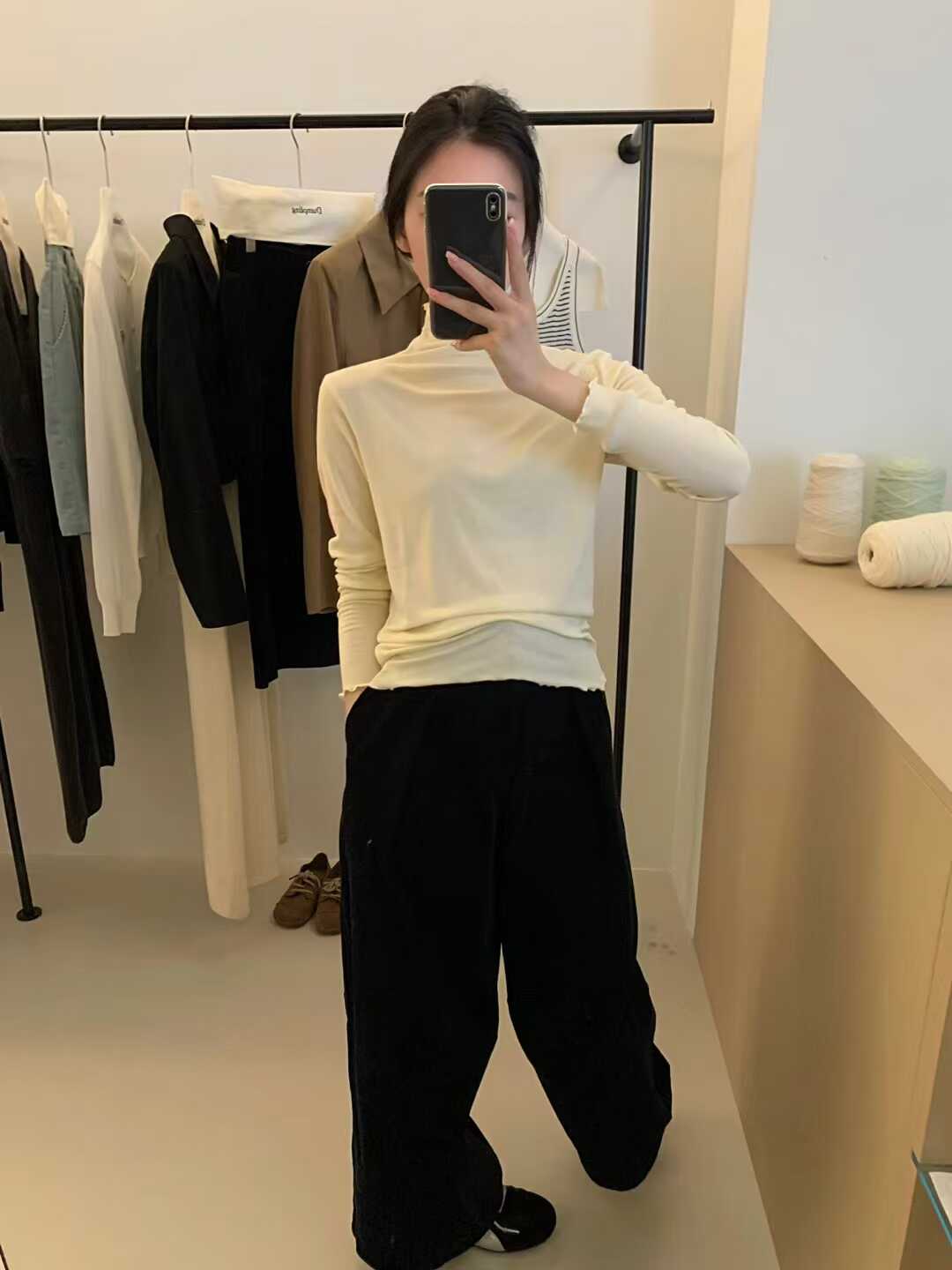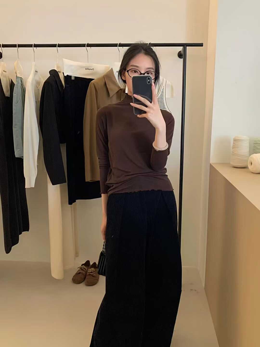韓系木耳邊打底衫2025秋冬半高領薄款曡穿內搭天絲羊毛針織衫上衣