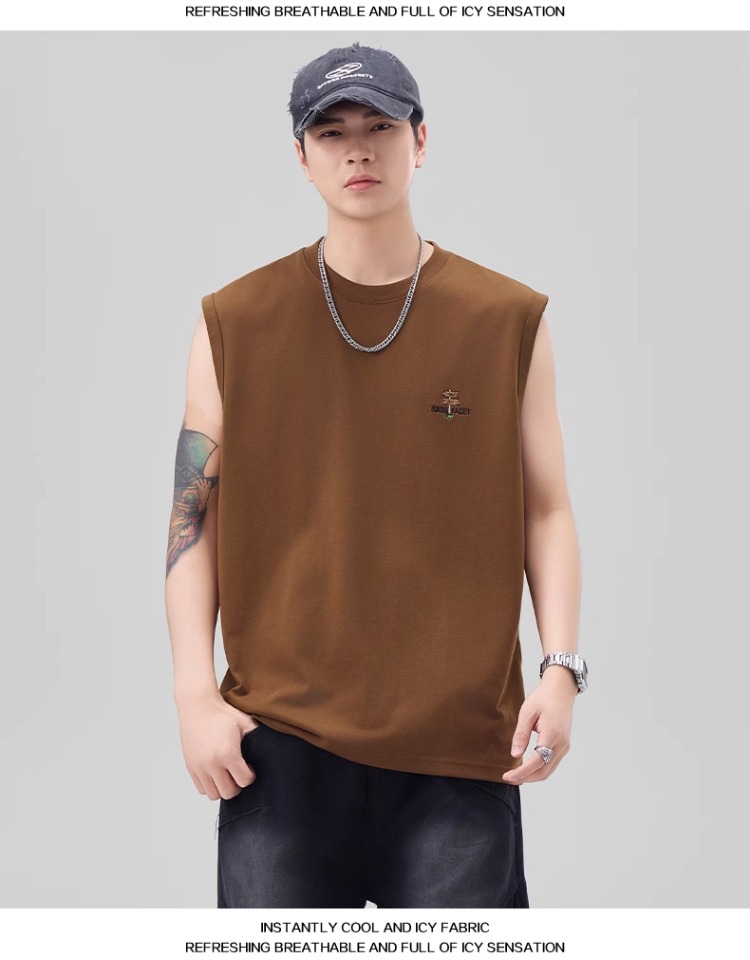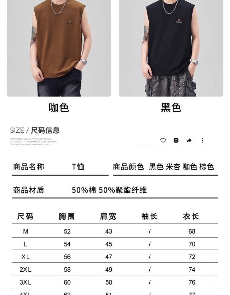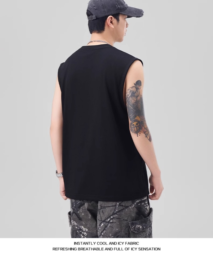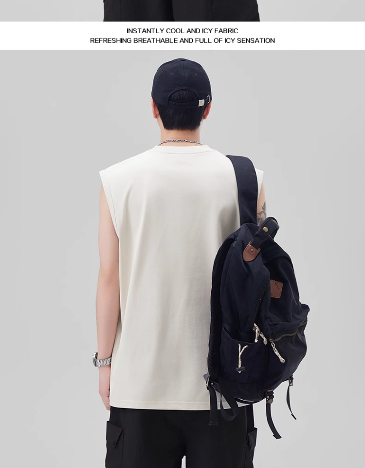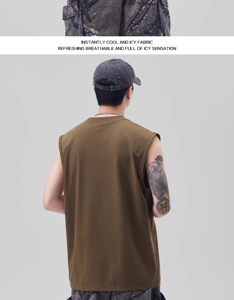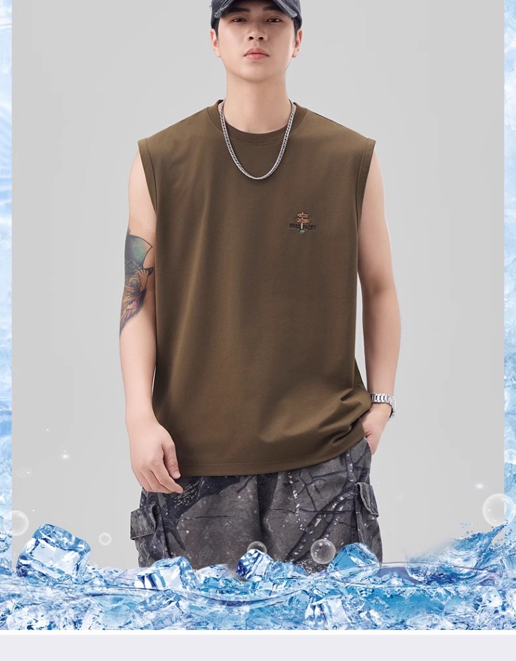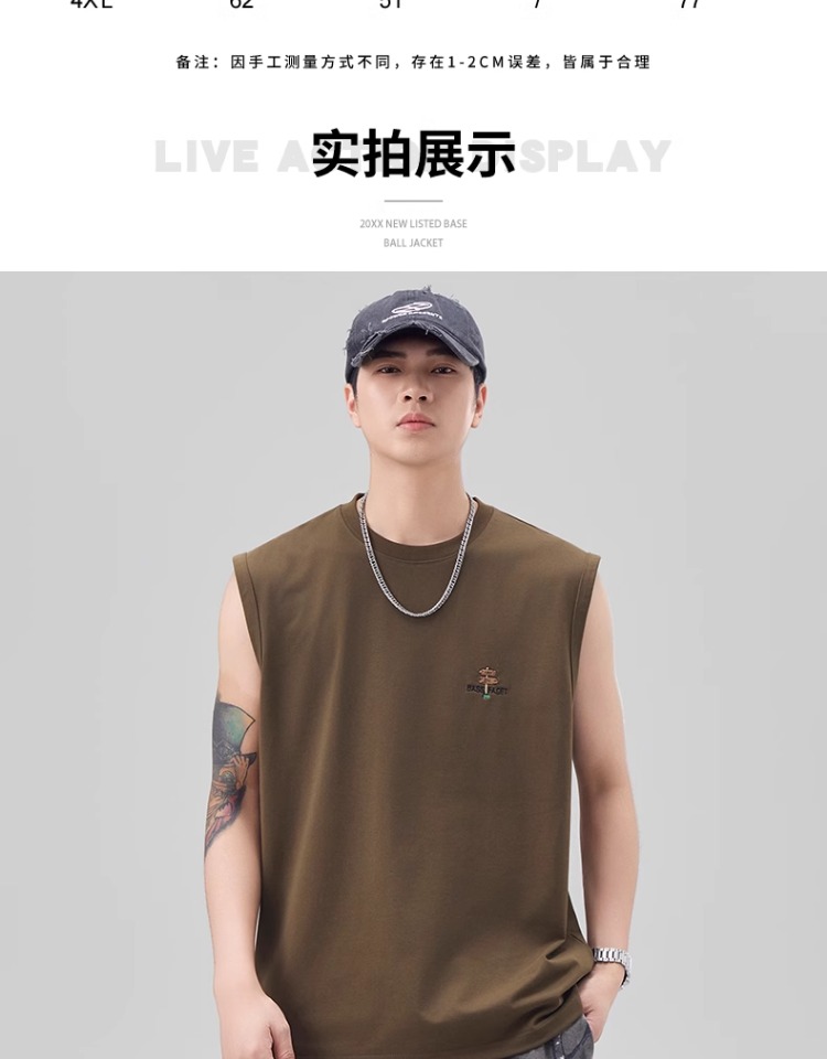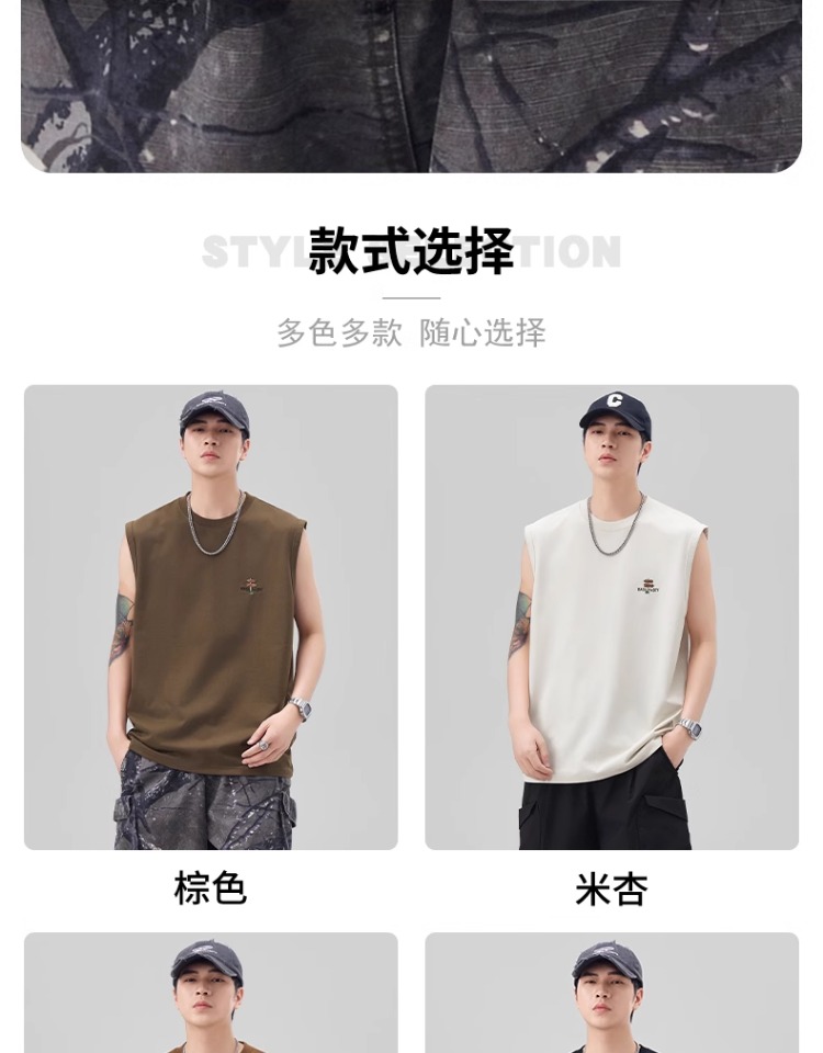 貓人美式潮牌坎肩背心男2025夏季寬松無袖打底衫運動健身短袖T恤