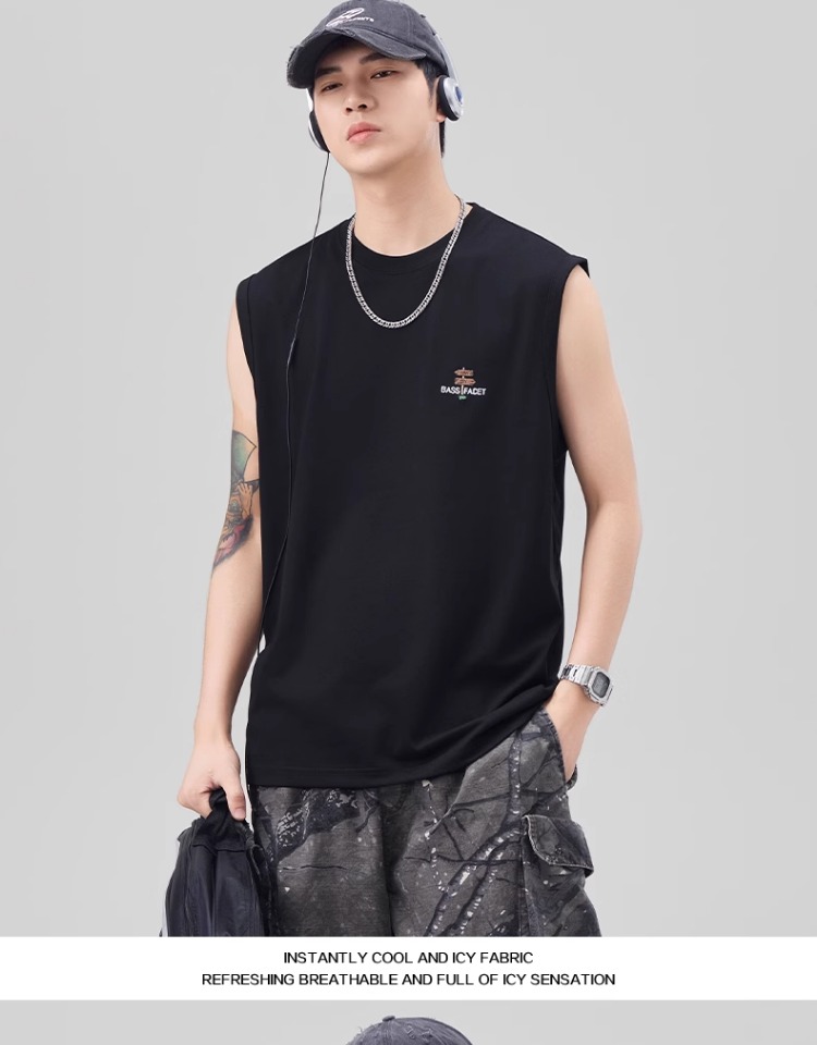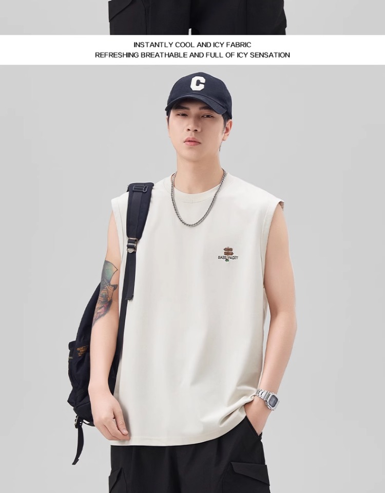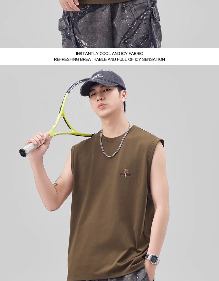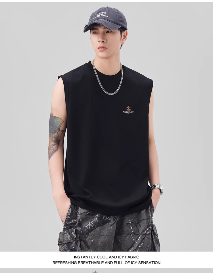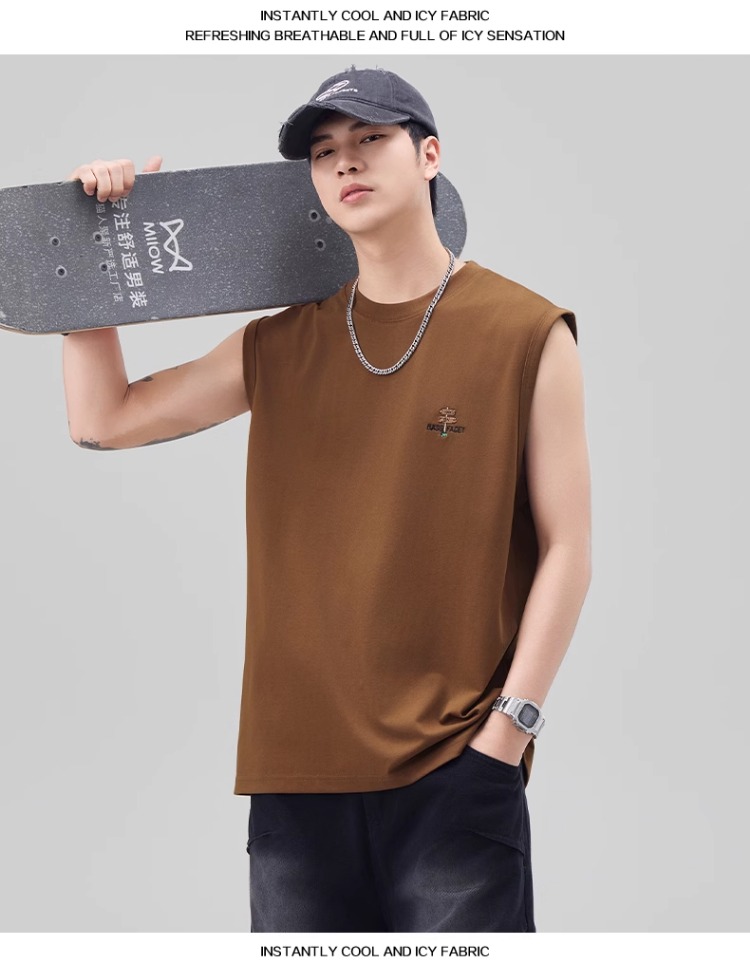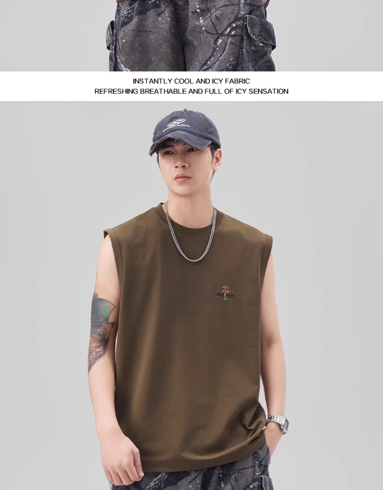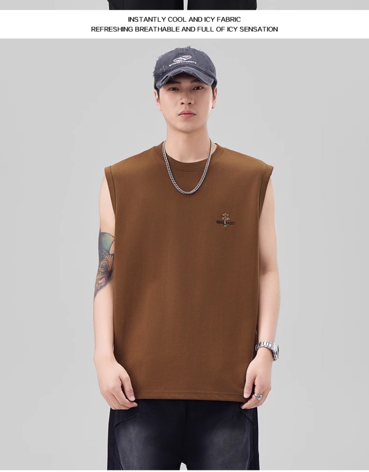 貓人美式潮牌坎肩背心男2025夏季寬松無袖打底衫運動健身短袖T恤