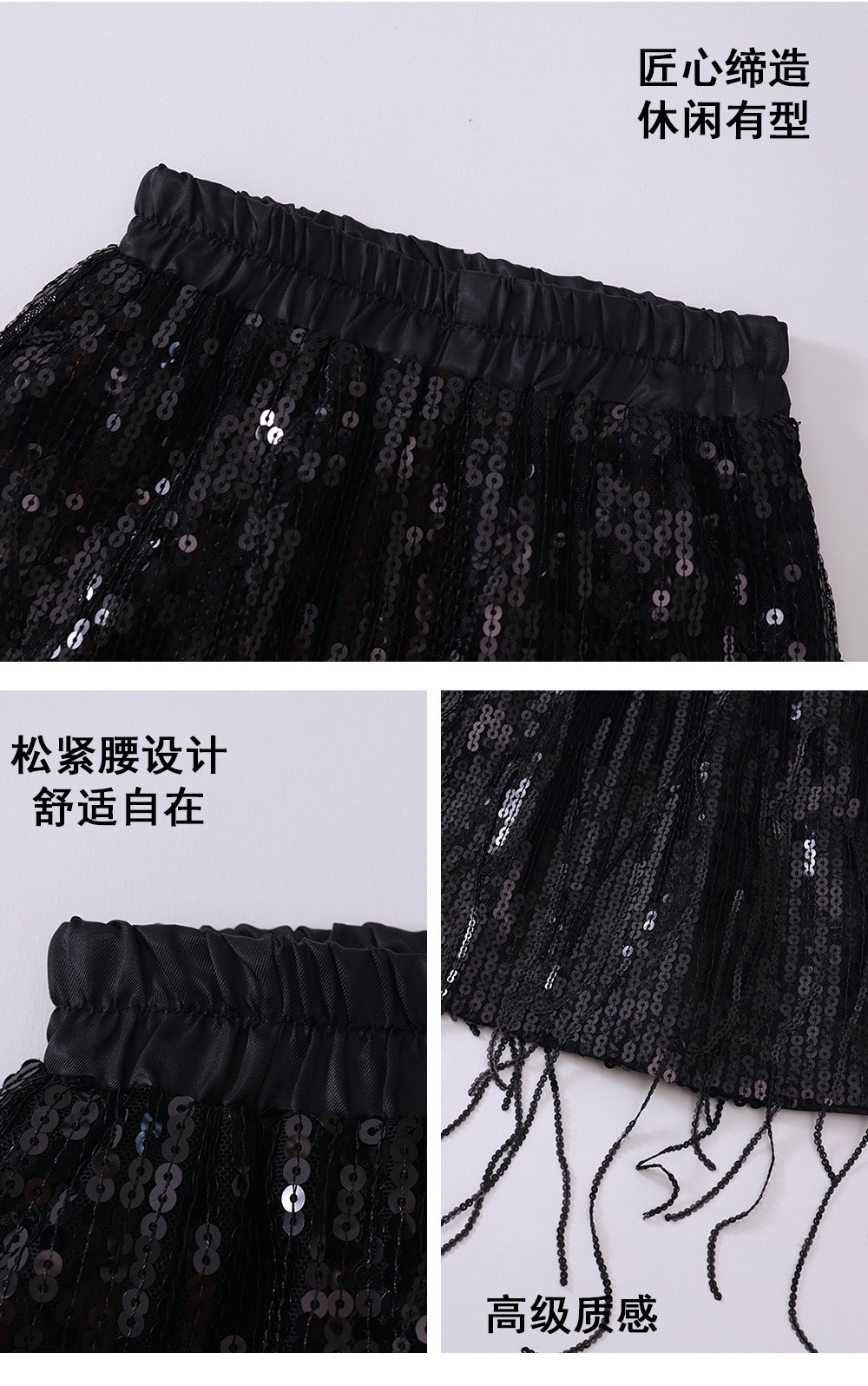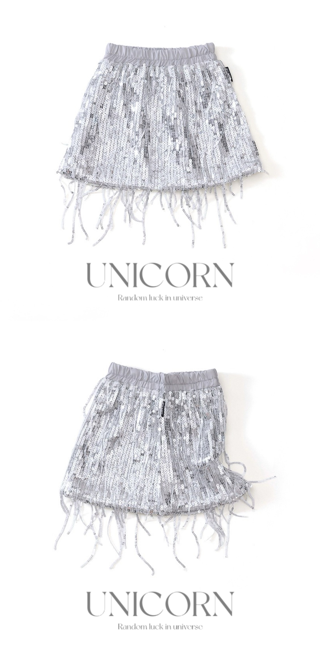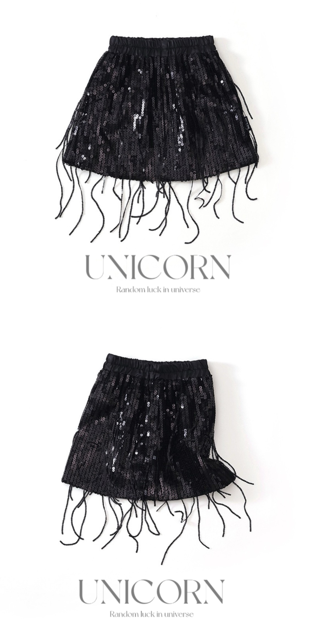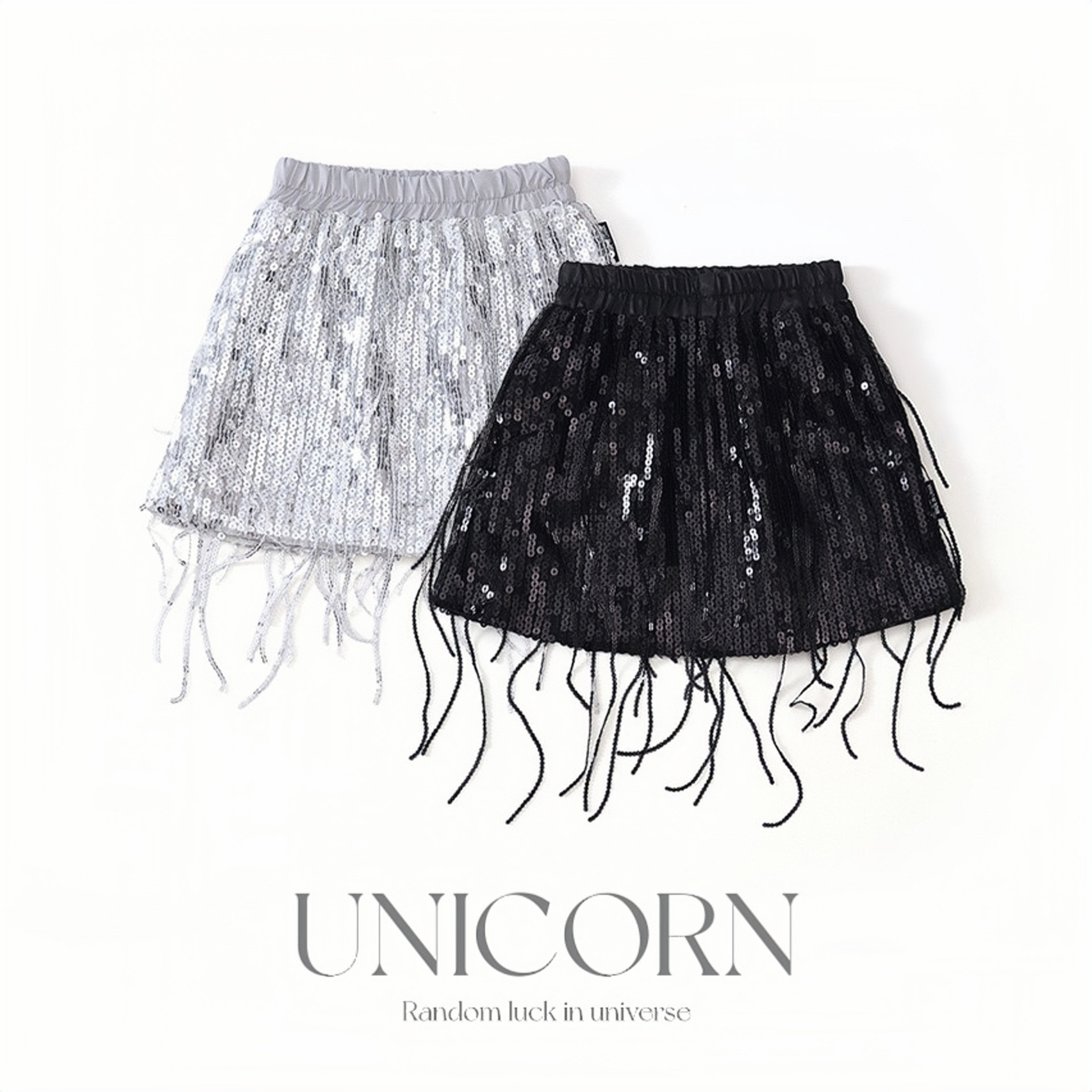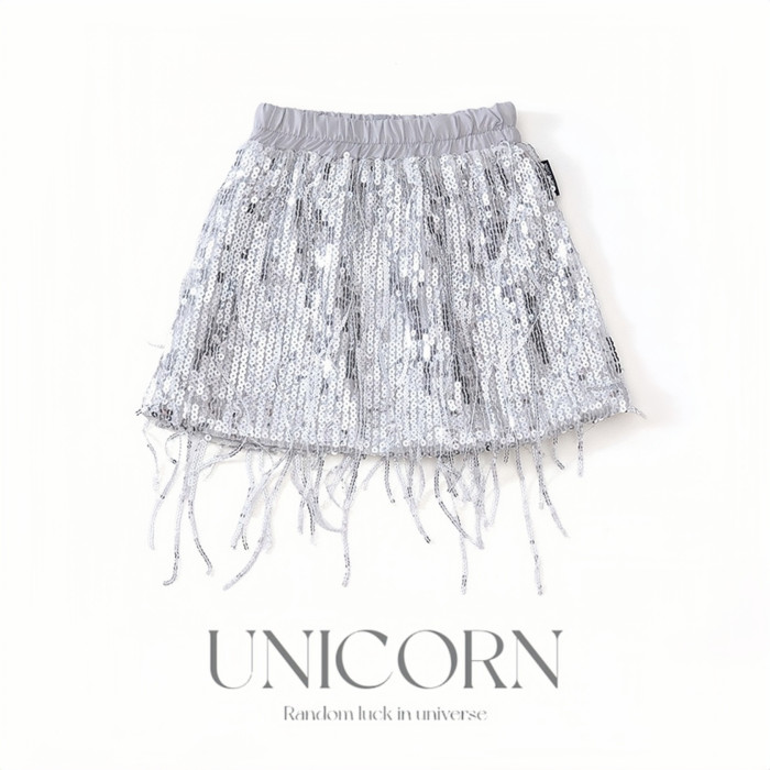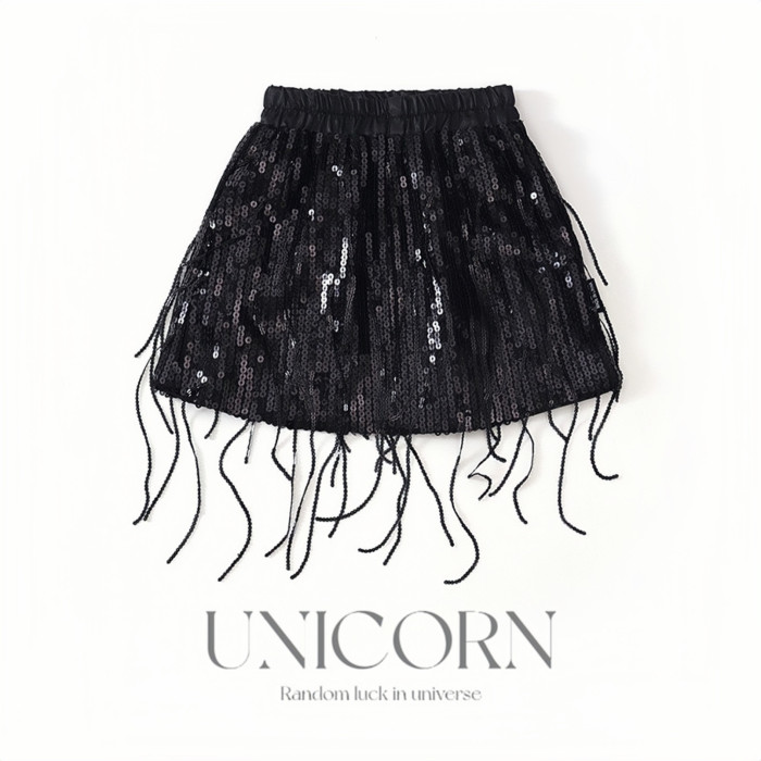 UNICORN女童25年夏季設計新款亮片流蘇半身裙時尚短裙演出百搭裙