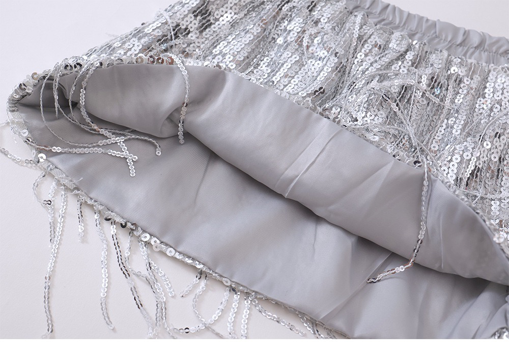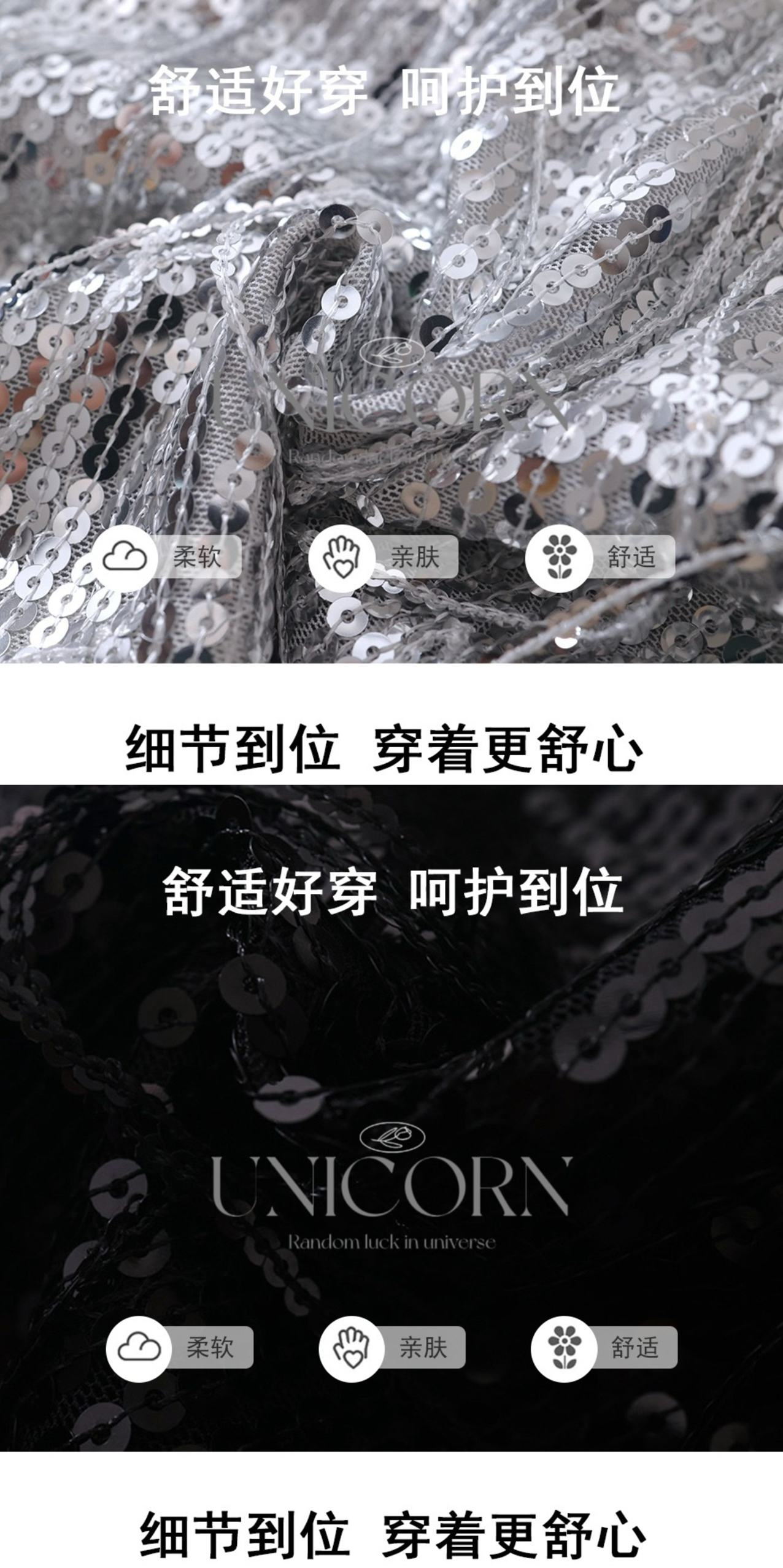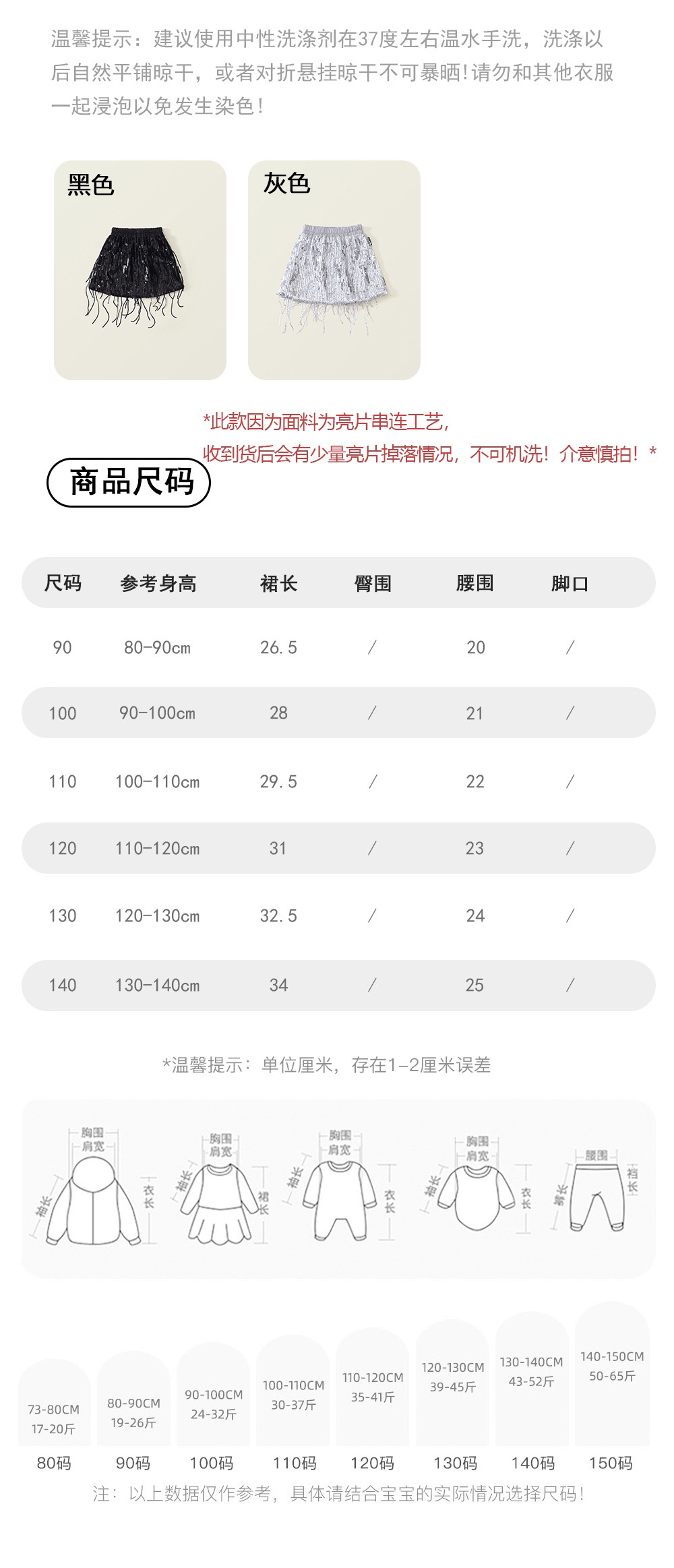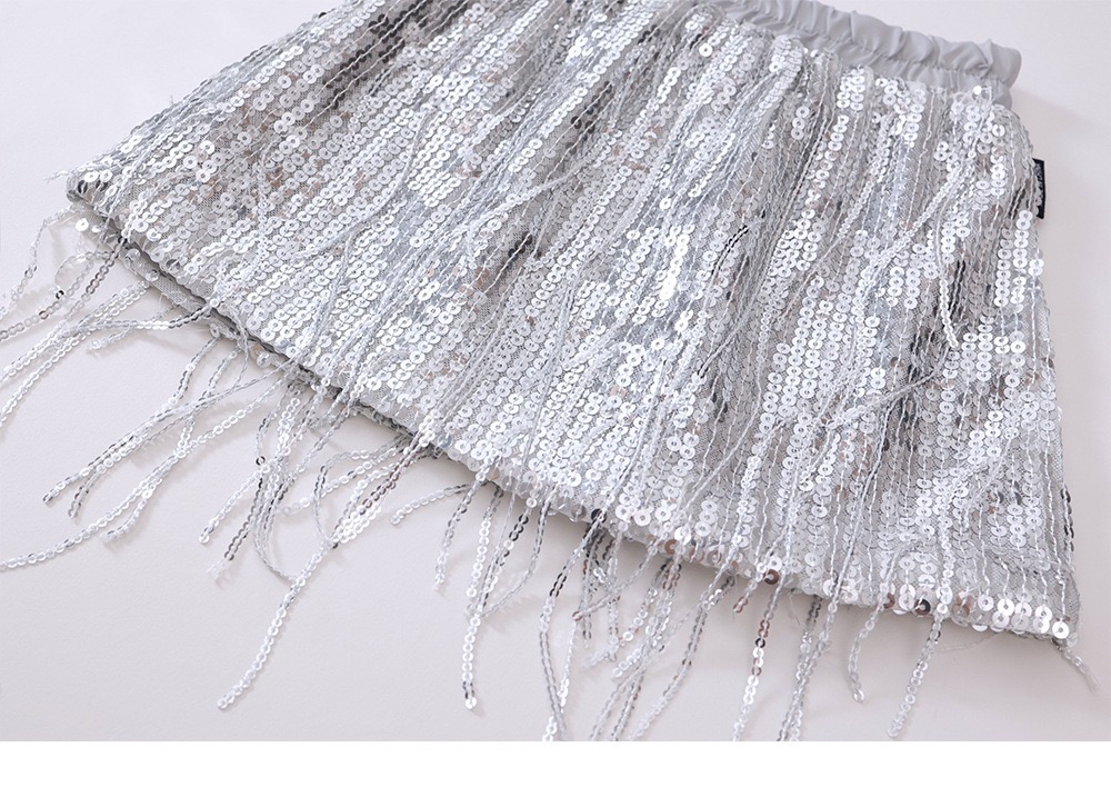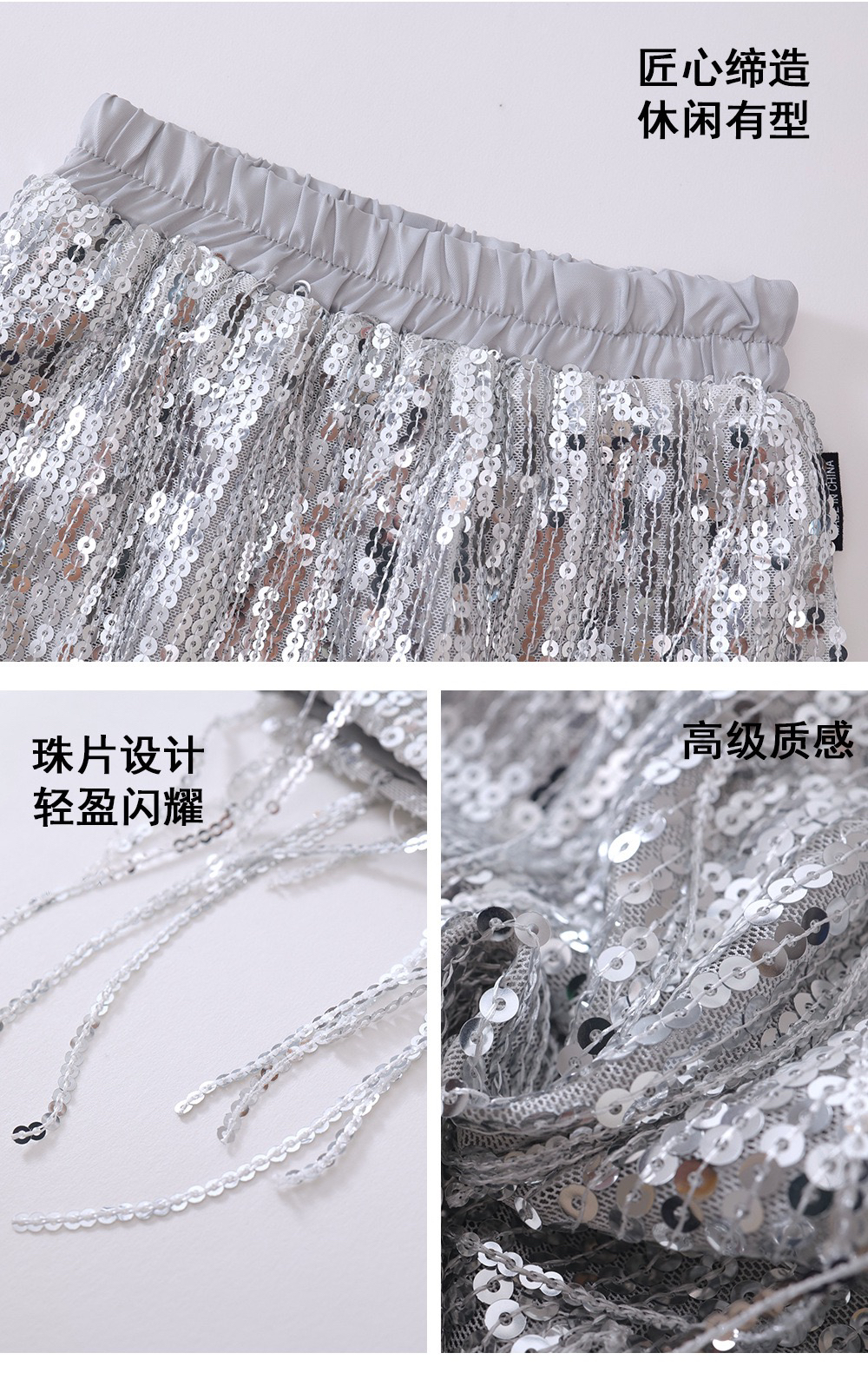 UNICORN女童25年夏季設計新款亮片流蘇半身裙時尚短裙演出百搭裙