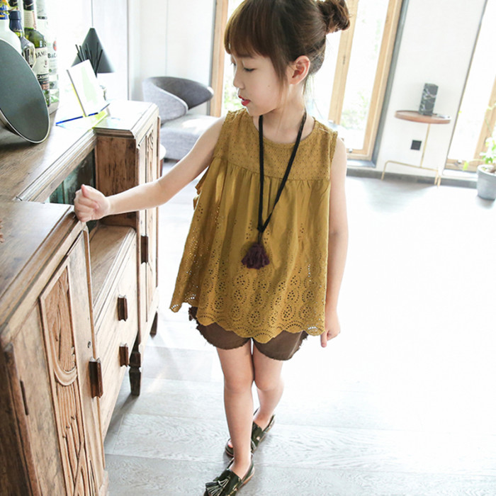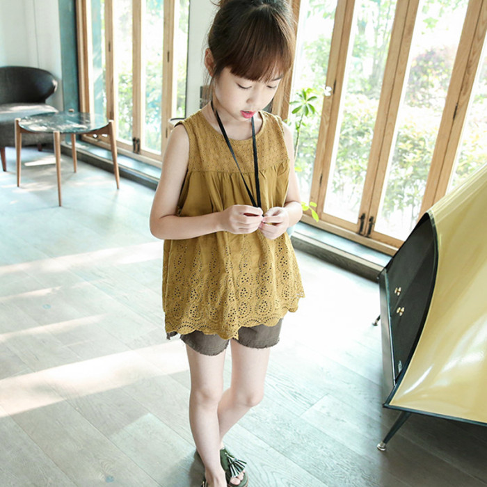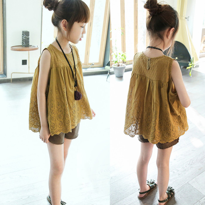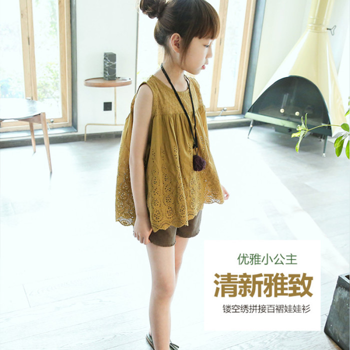 女童無袖背心裙夏裝2025新款女大童洋氣棉麻綉花百褶上衣連衣裙潮