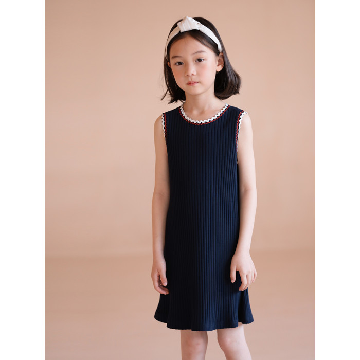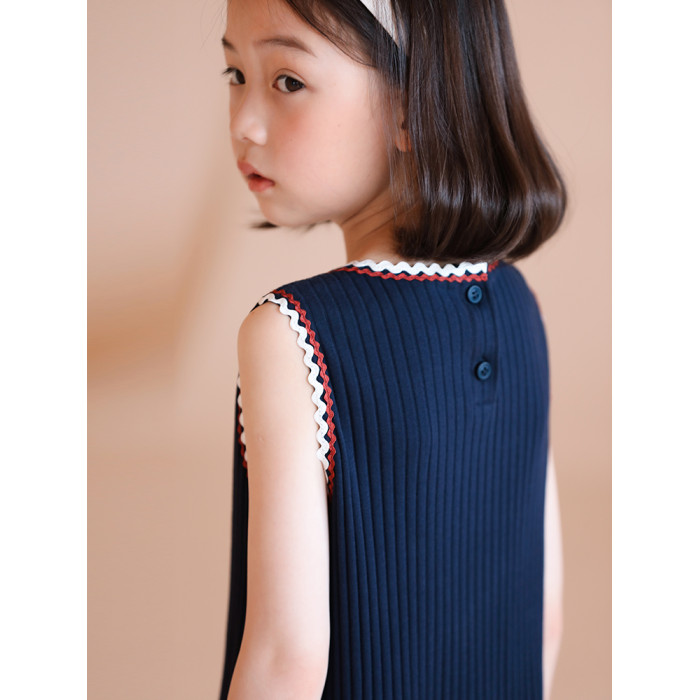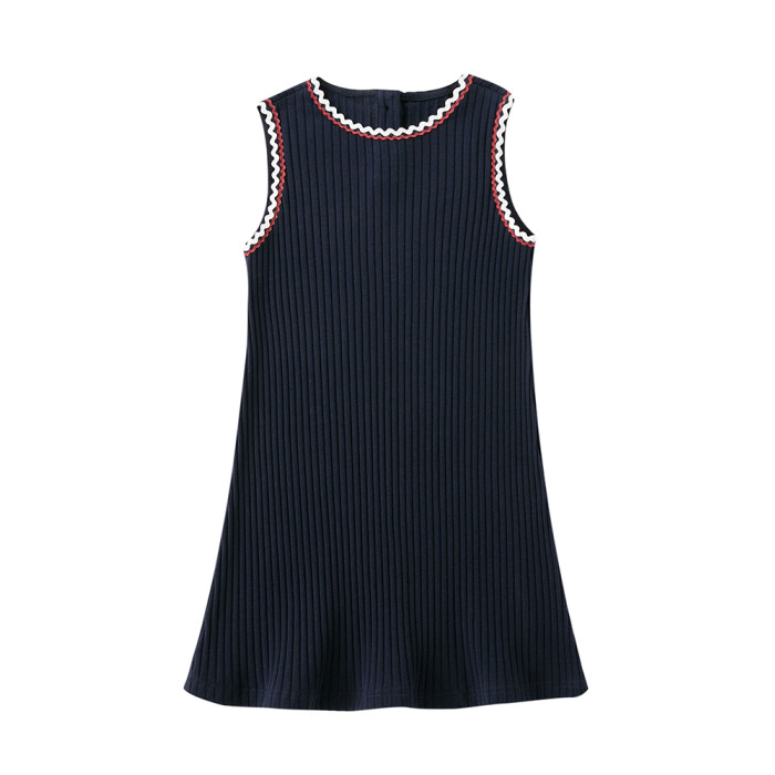 哈齒童裝春夏新品女童親子款無袖撞色針織裙子氣質直筒背心連衣裙