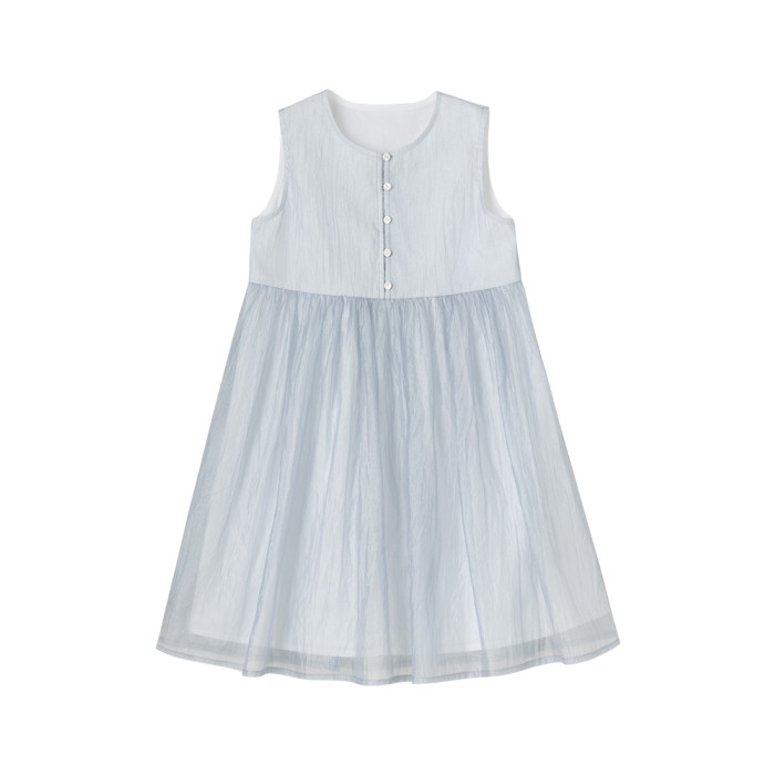 哈齒童裝天空藍香雲皺珠光流沙仙女裙親子兒童公主裙連衣裙女童夏