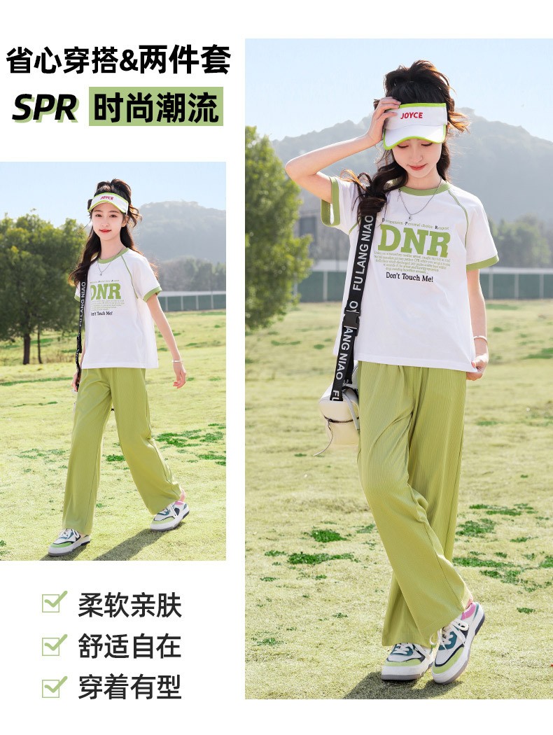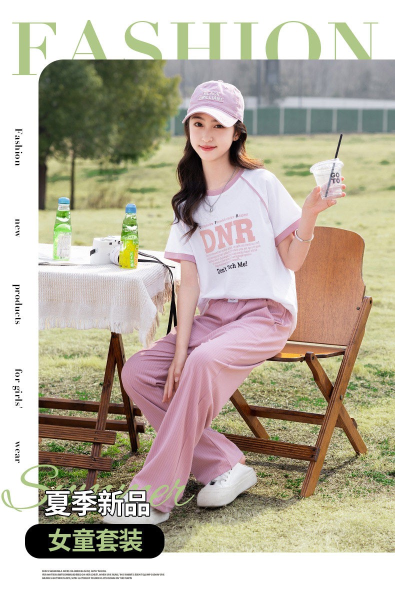 女童夏裝短袖t恤純棉2025新款兒童女孩洋氣衣服9大童女裝夏季套裝
