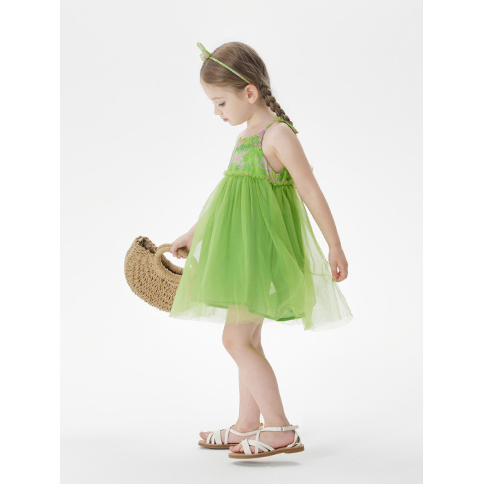 馬克珍妮法式優雅 女童夏裝透氣網紗棉真絲吊帶背心公主裙250011
