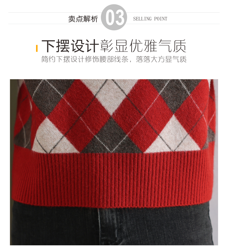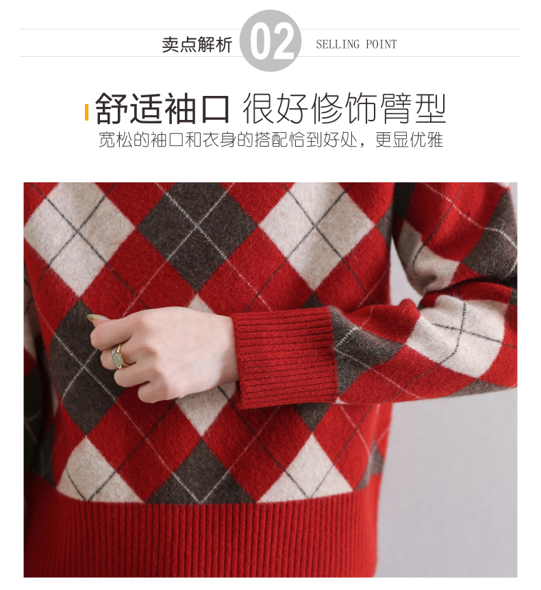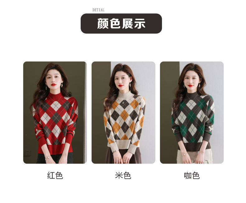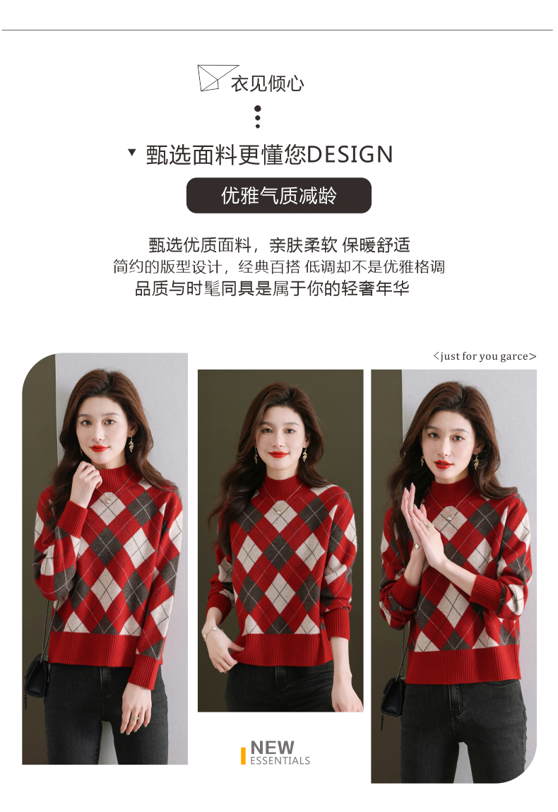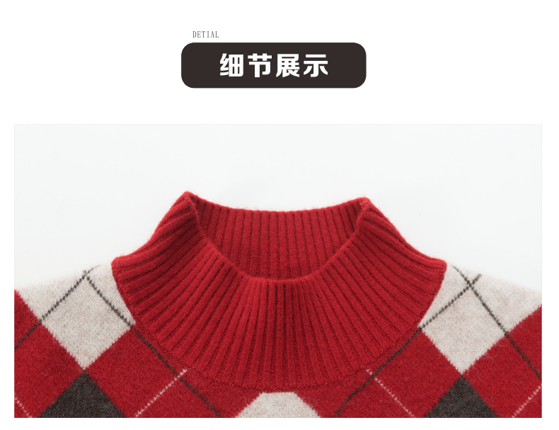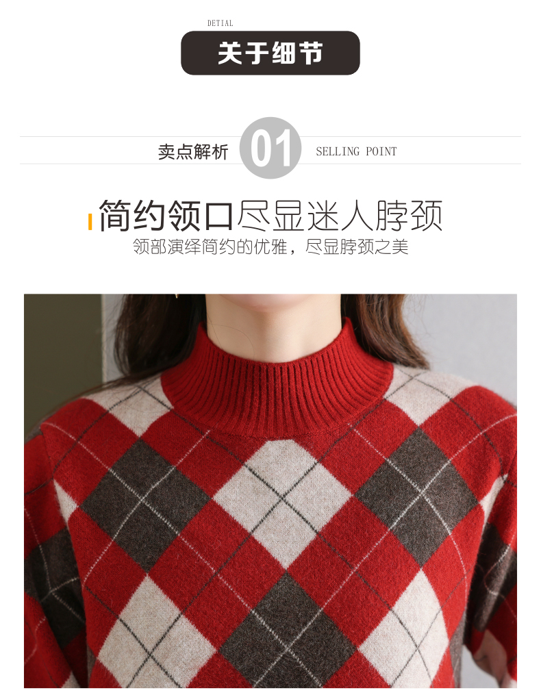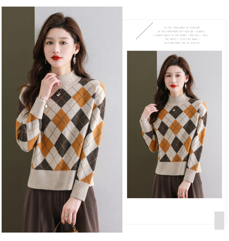半高領女士毛衣100純羊毛衫秋冬打底衫菱形格子上衣內搭針織衫厚