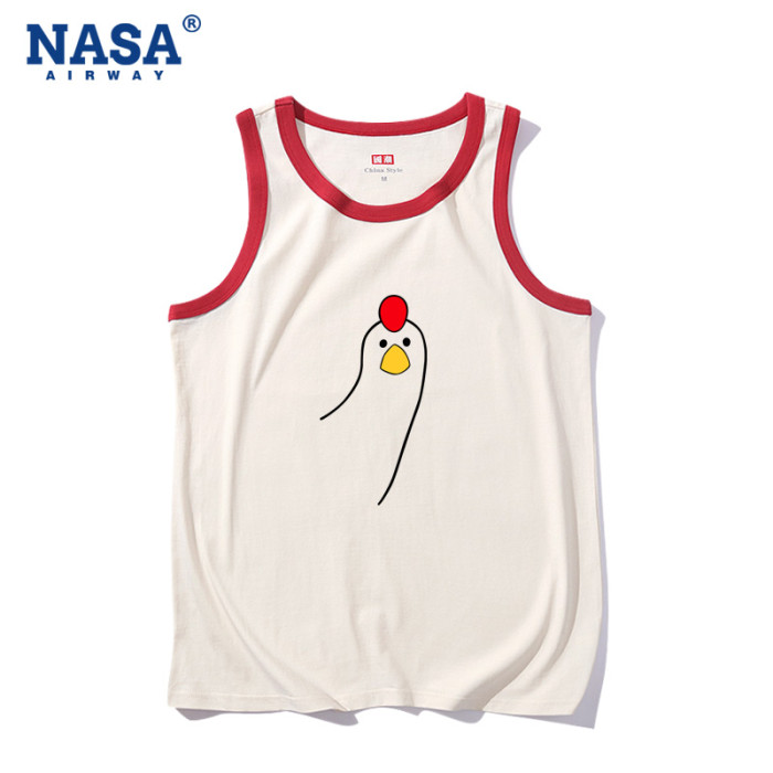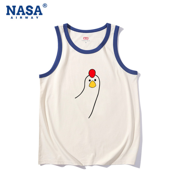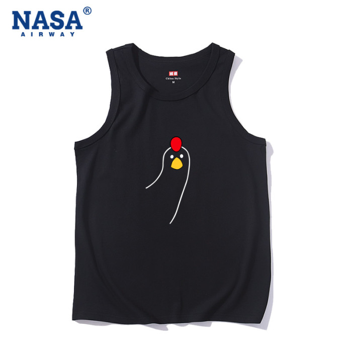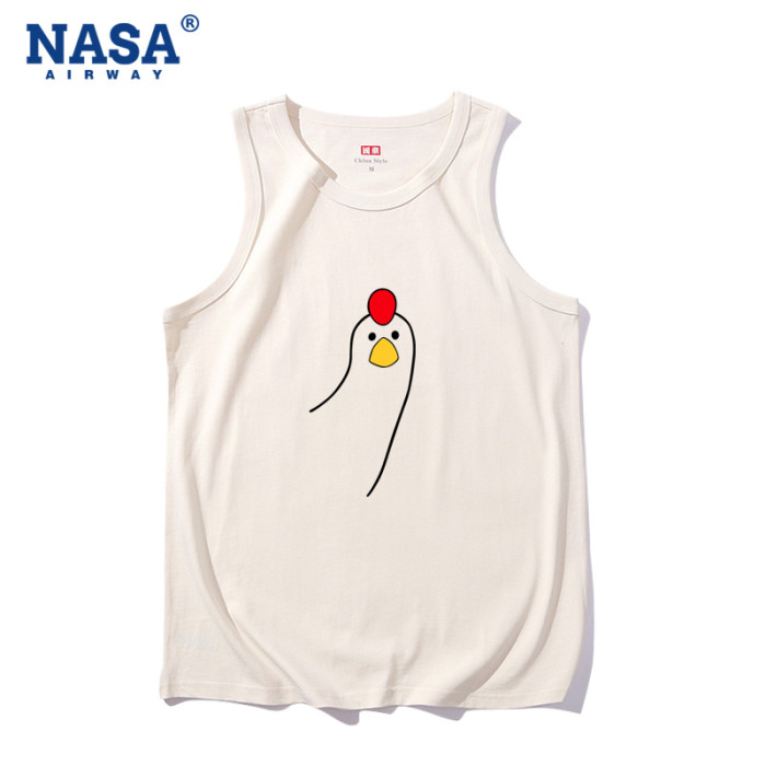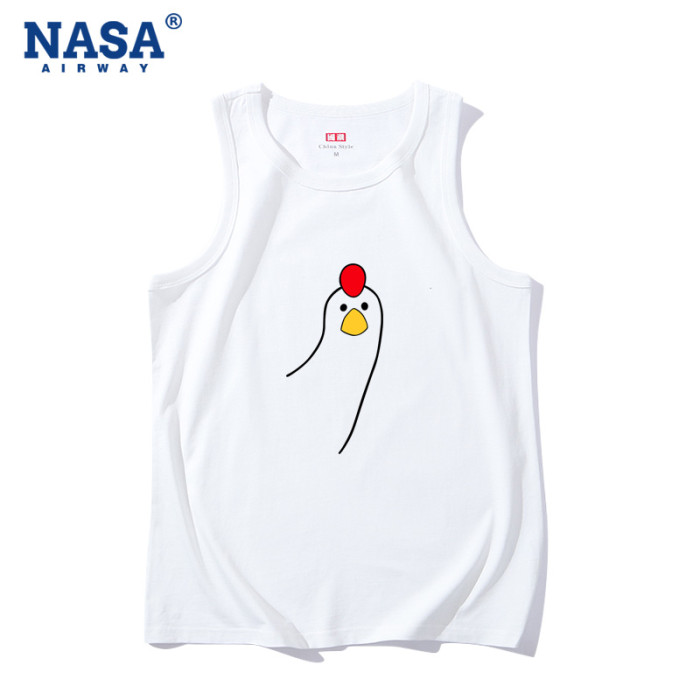 NASA潮牌叮咚雞搞笑趣味純棉無袖背心t恤男女夏季寬松坎肩上衣潮