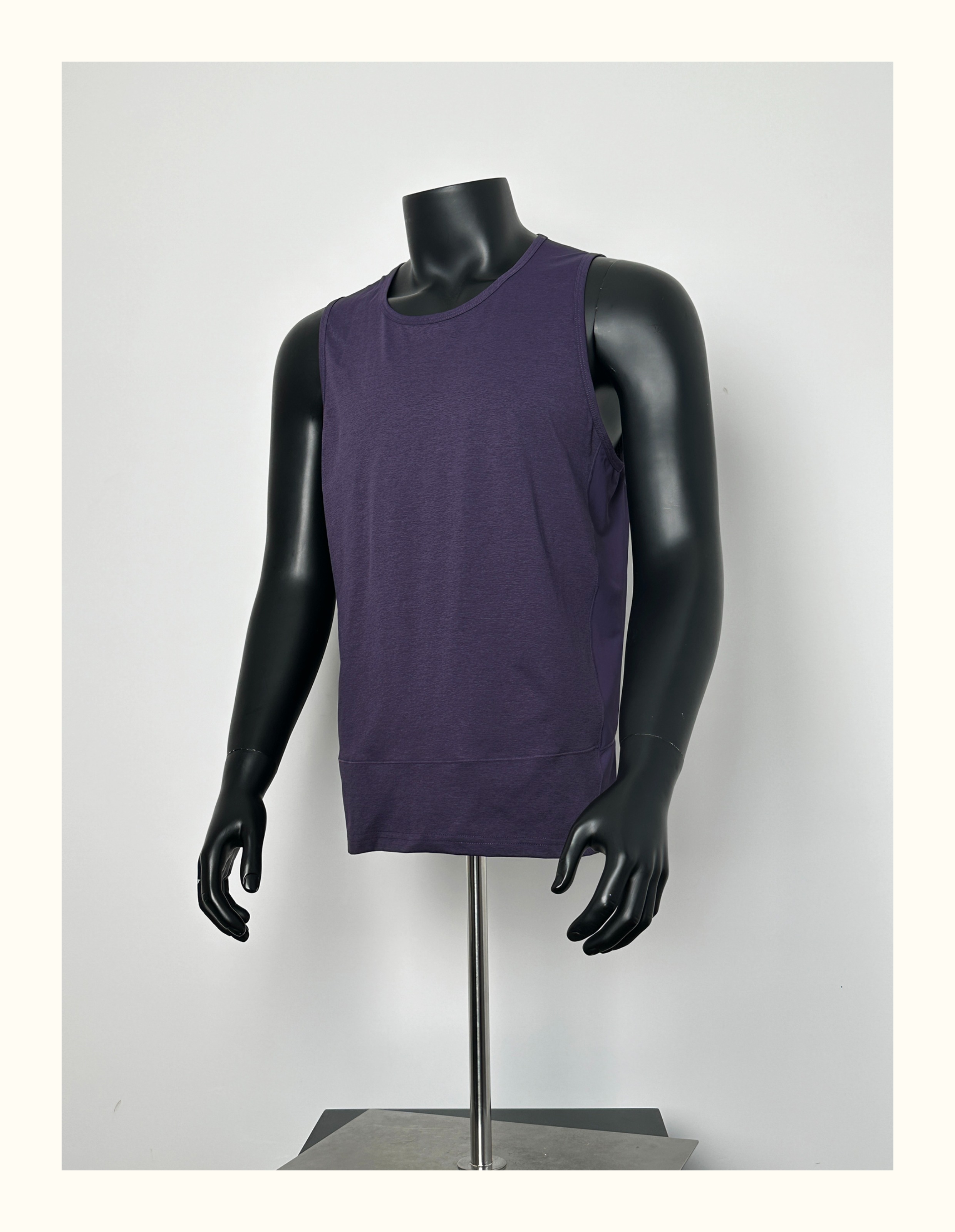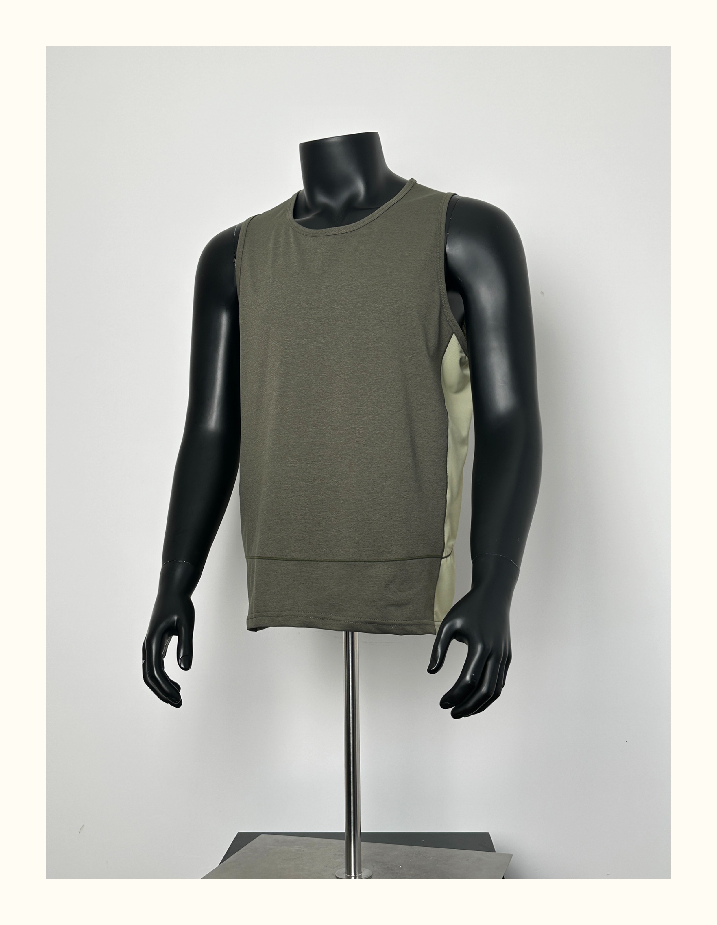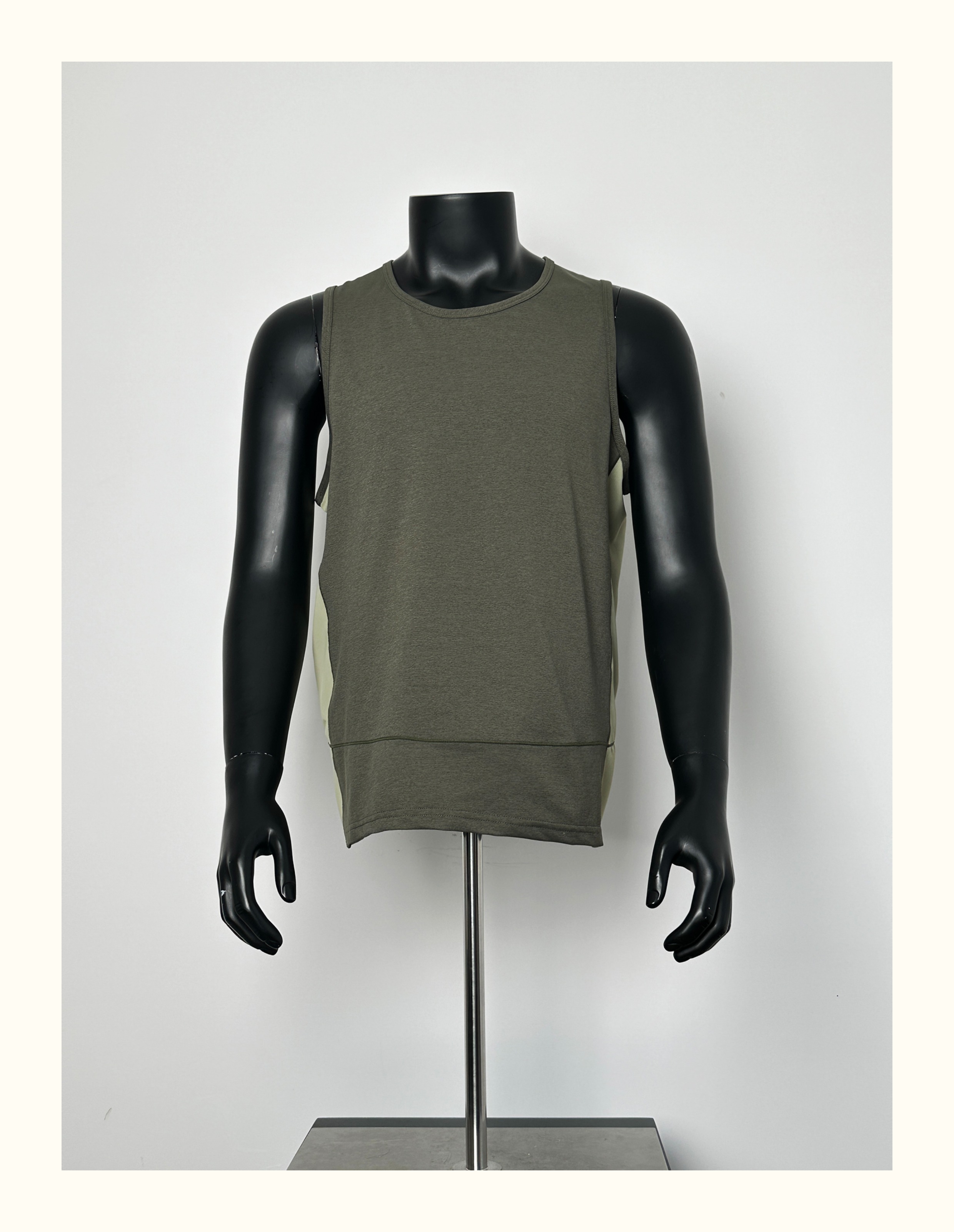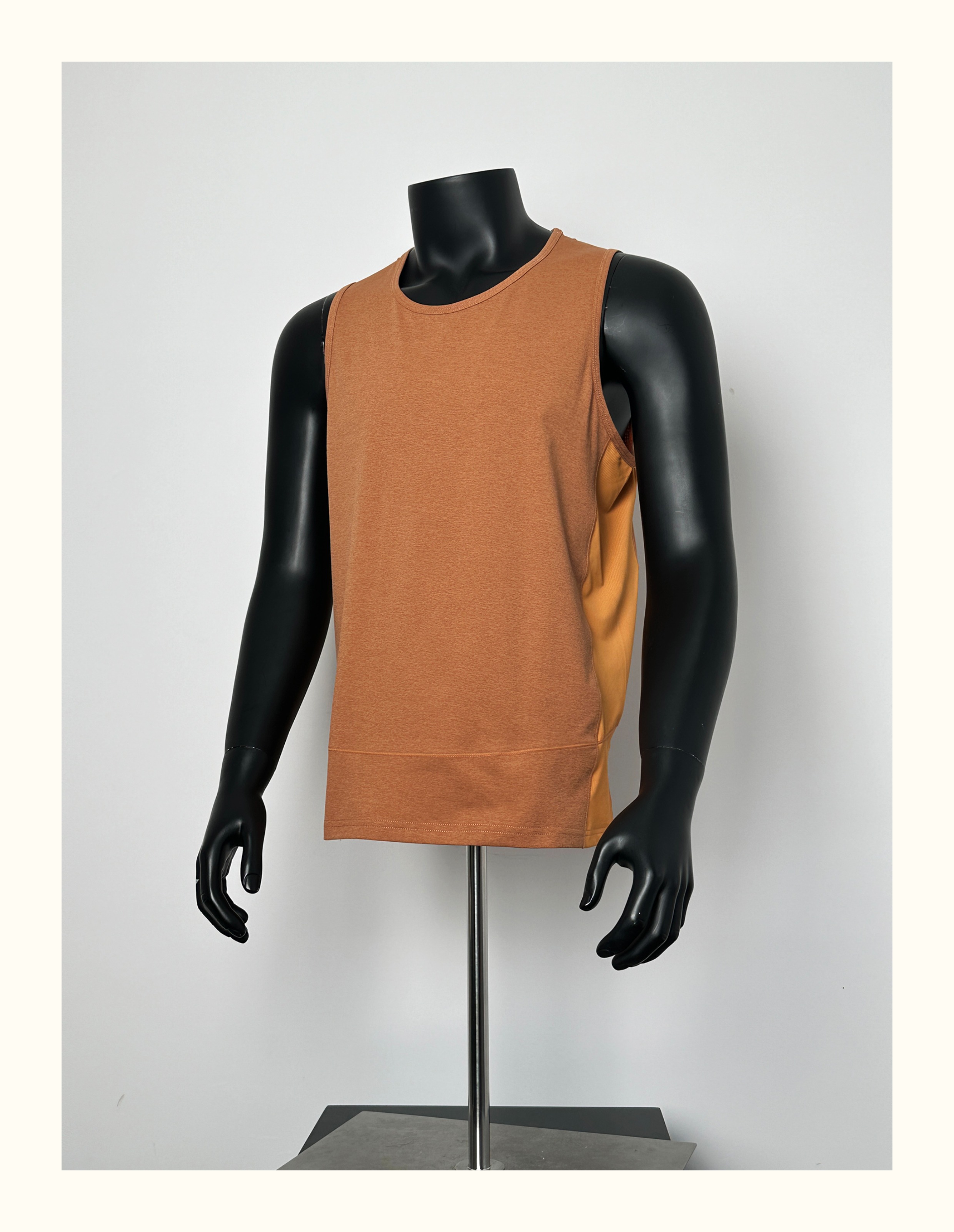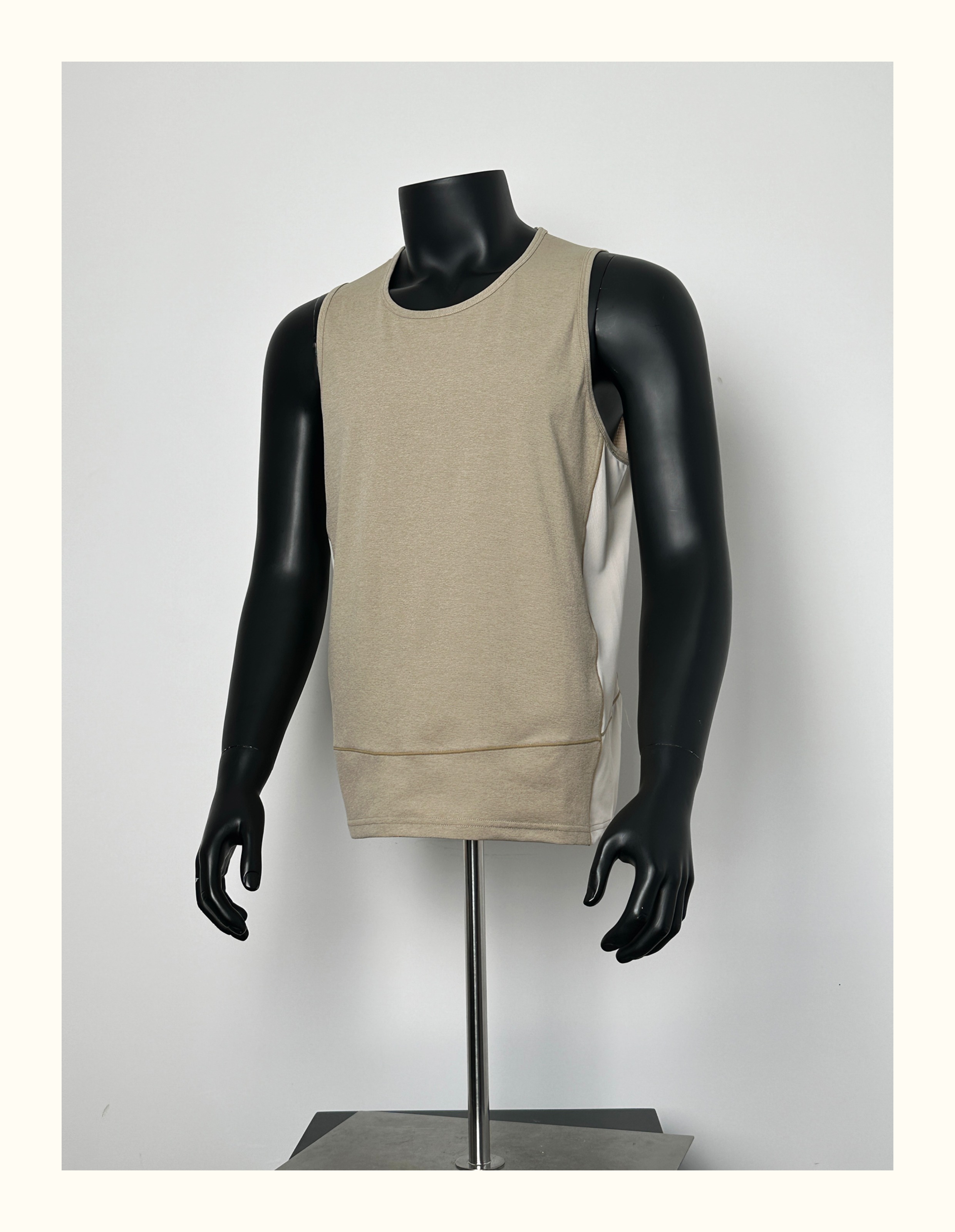 NATCODE 美式潮牌輕量化160g拼接無袖運動背心男女寬松休閒T恤