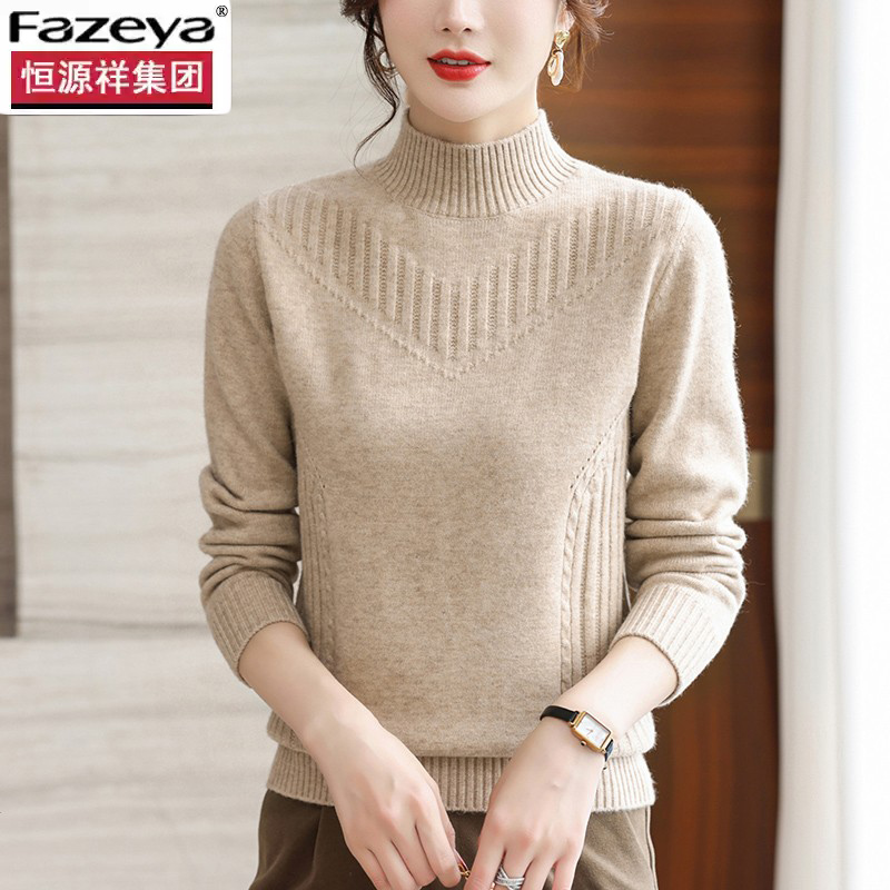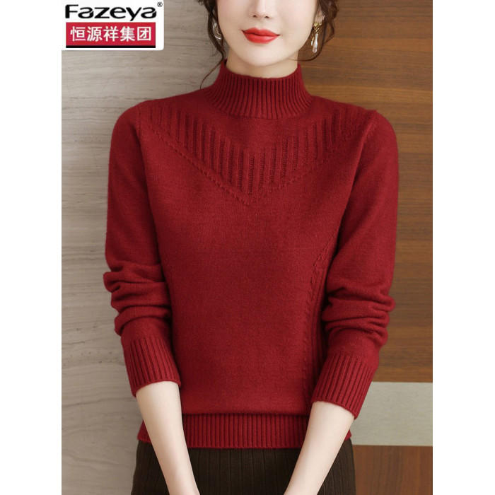恒源祥彩羊羊毛衫女2025新款秋冬季內搭加厚半高領毛衣針織打底衫