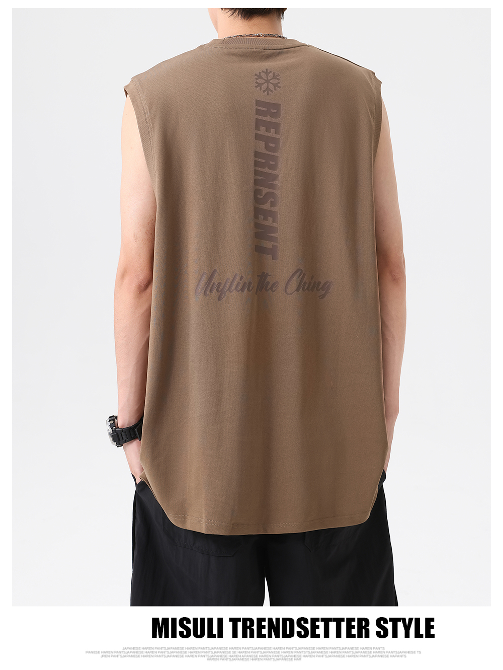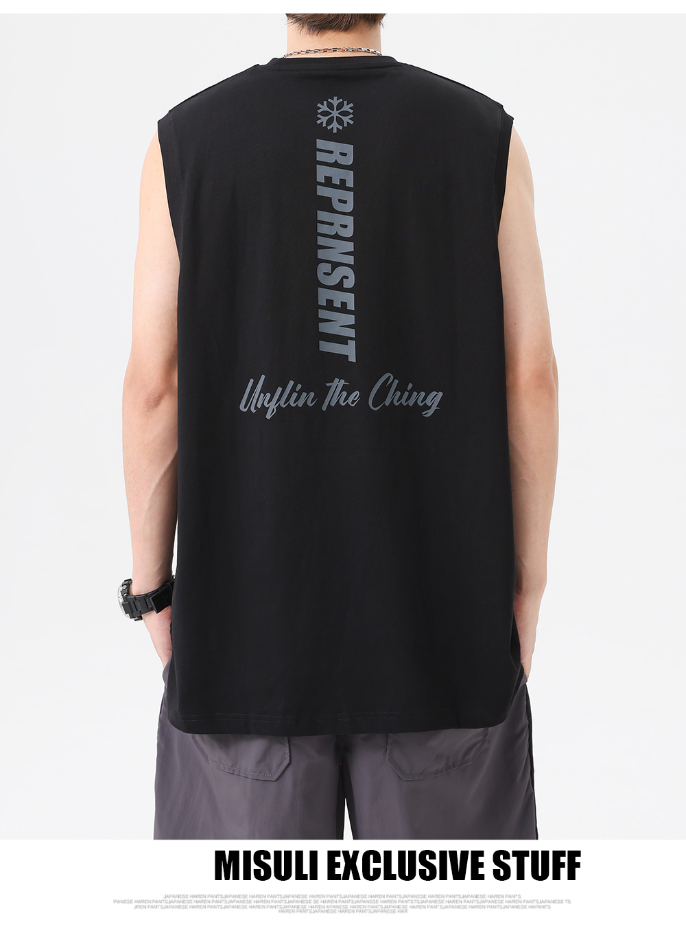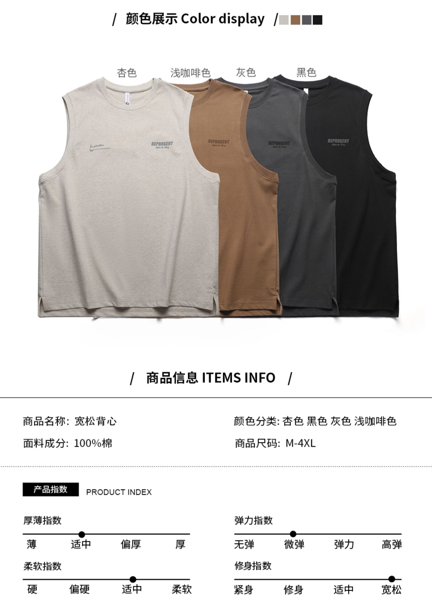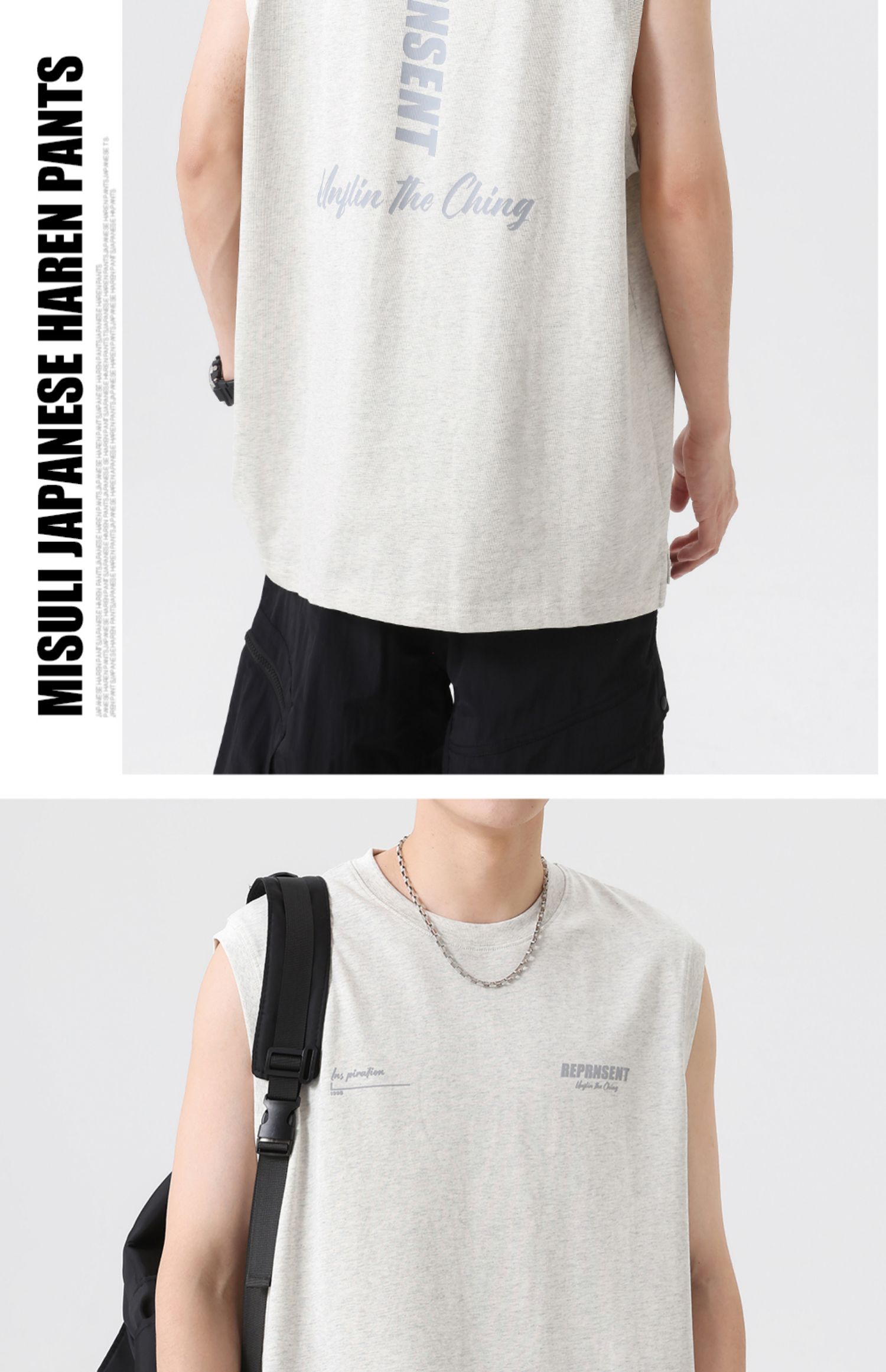 網紅無袖背心男夏季純棉健身訓練砍肩t恤男生青少年美式潮牌汗衫