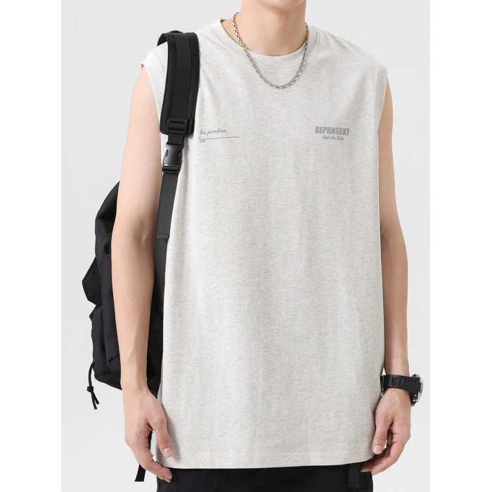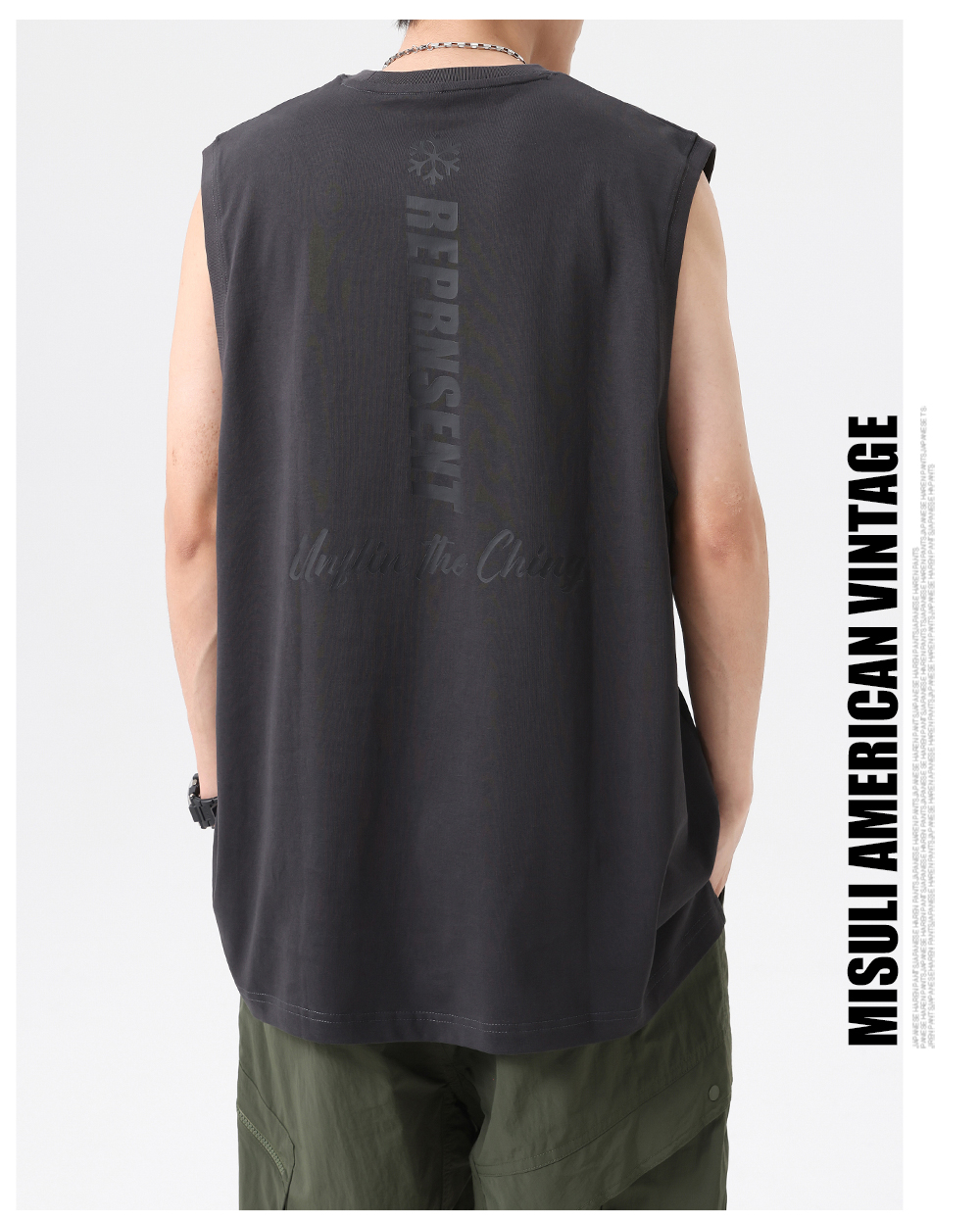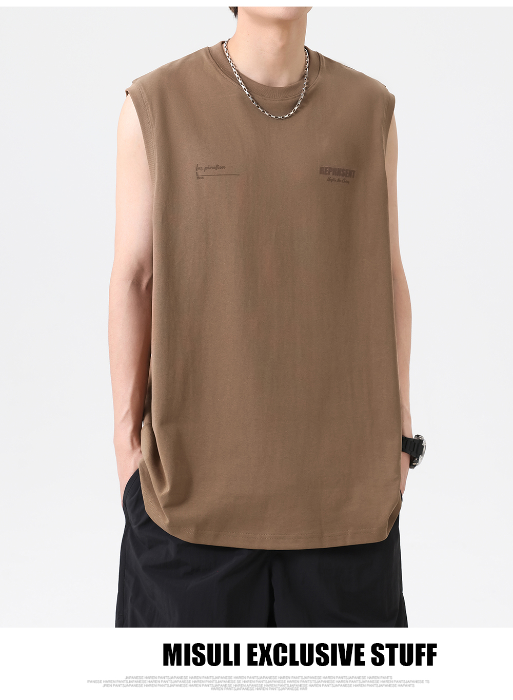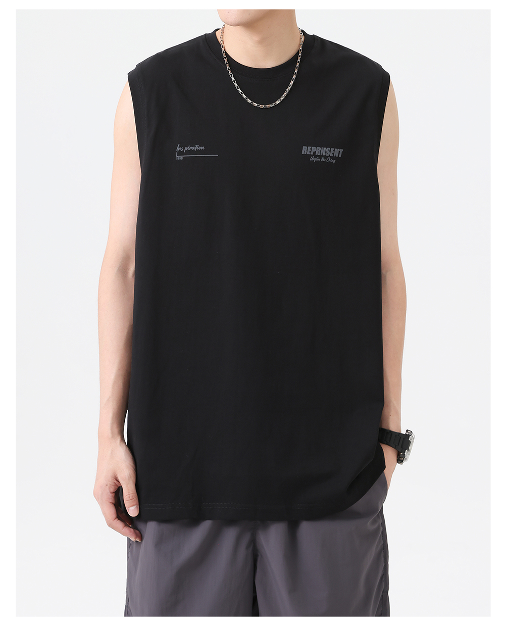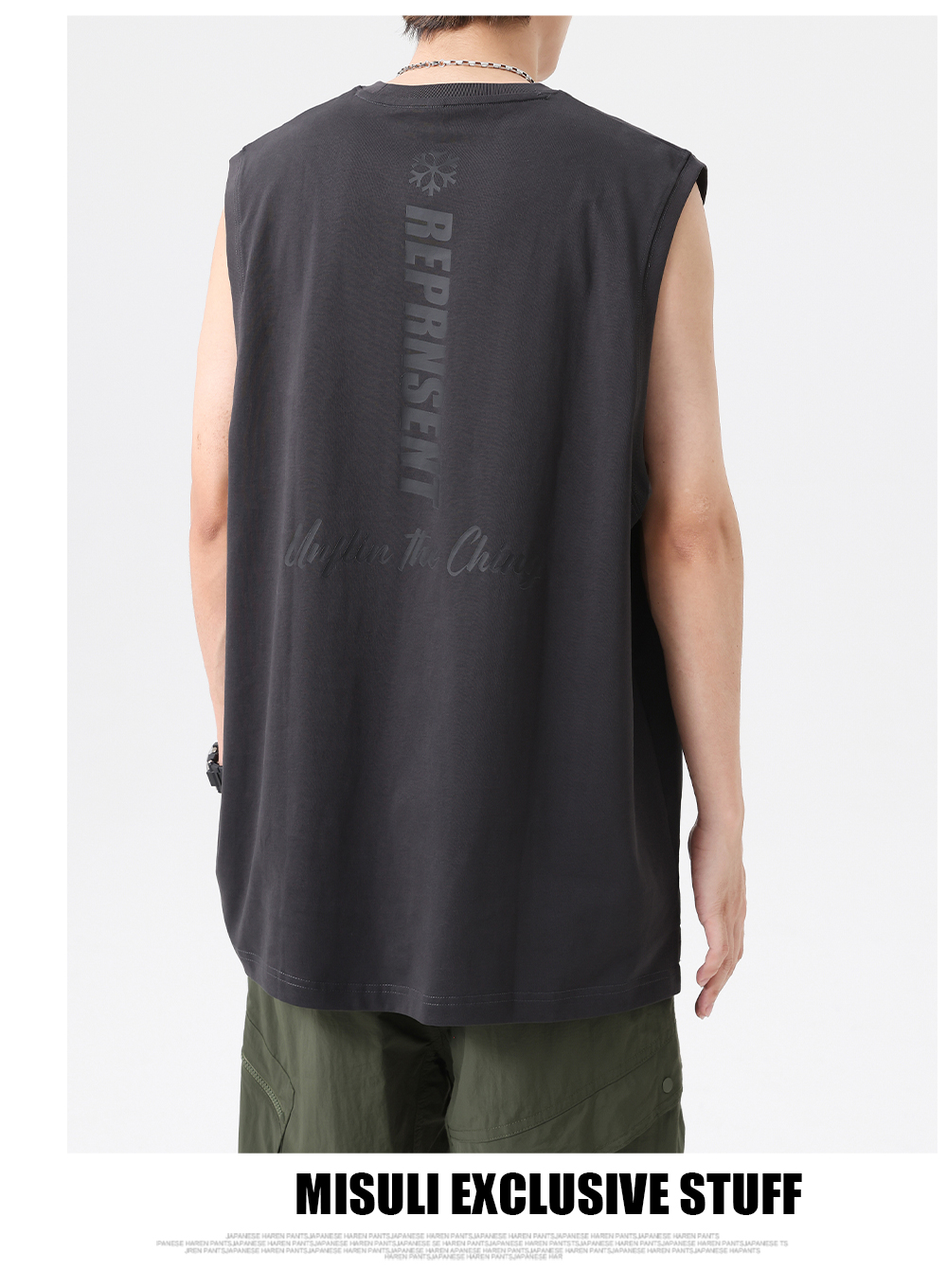 網紅無袖背心男夏季純棉健身訓練砍肩t恤男生青少年美式潮牌汗衫