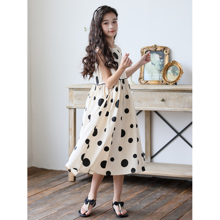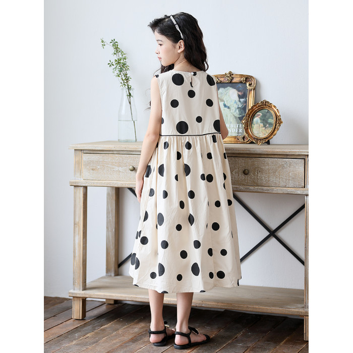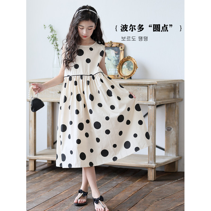 童裝2025新款女童連衣裙夏季韓版大童親子裝過膝長款波點背心裙子