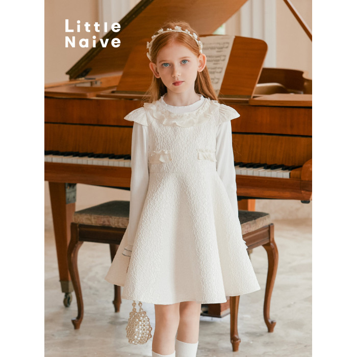 Little Naive夏季新款女童法式連衣裙兒童公主裙生日禮服背心裙